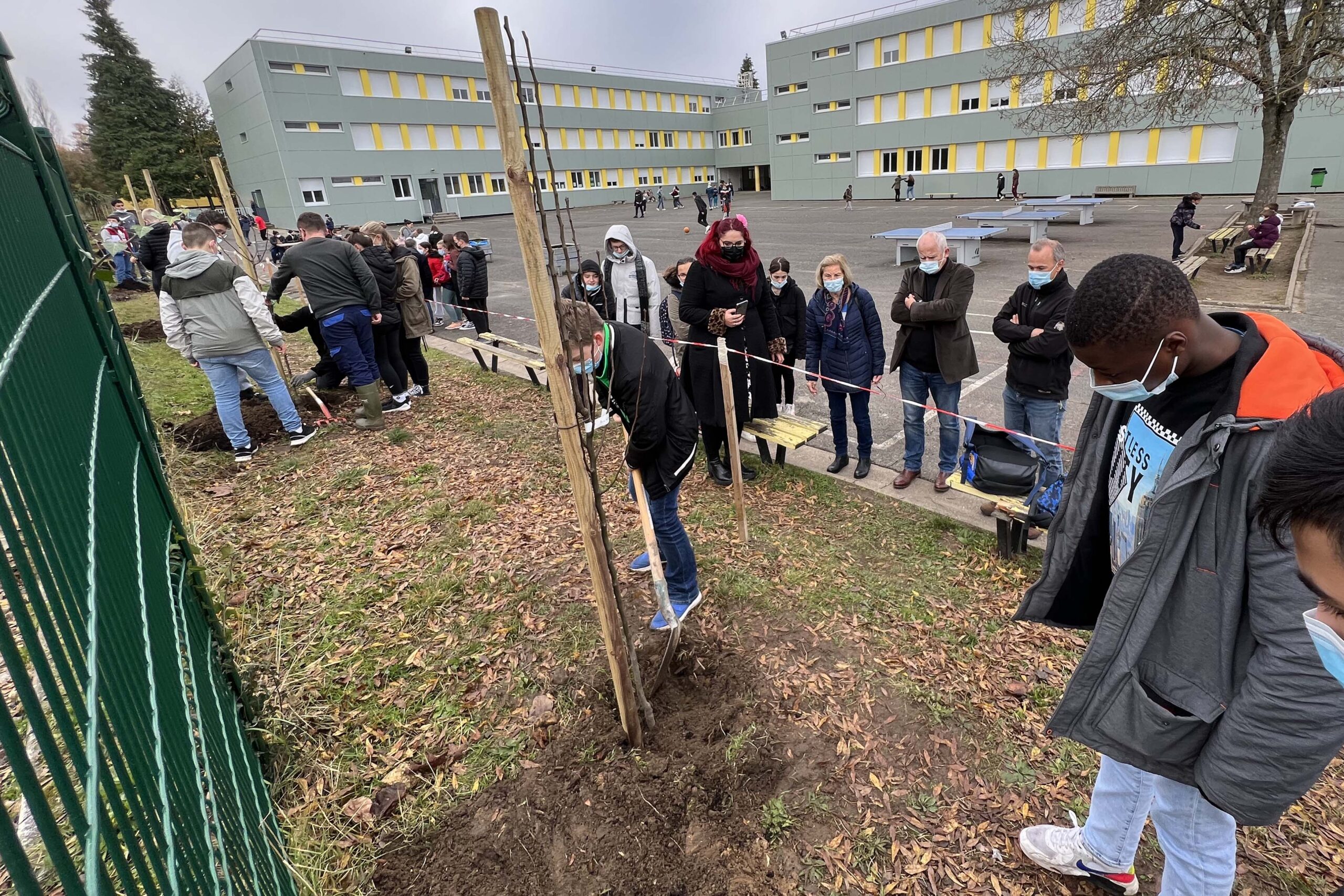 Le 19 novembre, c’est le Collège Adam Billaut qui a pu bénéficier d’un verger conservatoire composé d’arbres fruitiers, en présence de Maryse Augendre, conseillère départementale du canton de Nevers 1. (? 2 dernières photos)