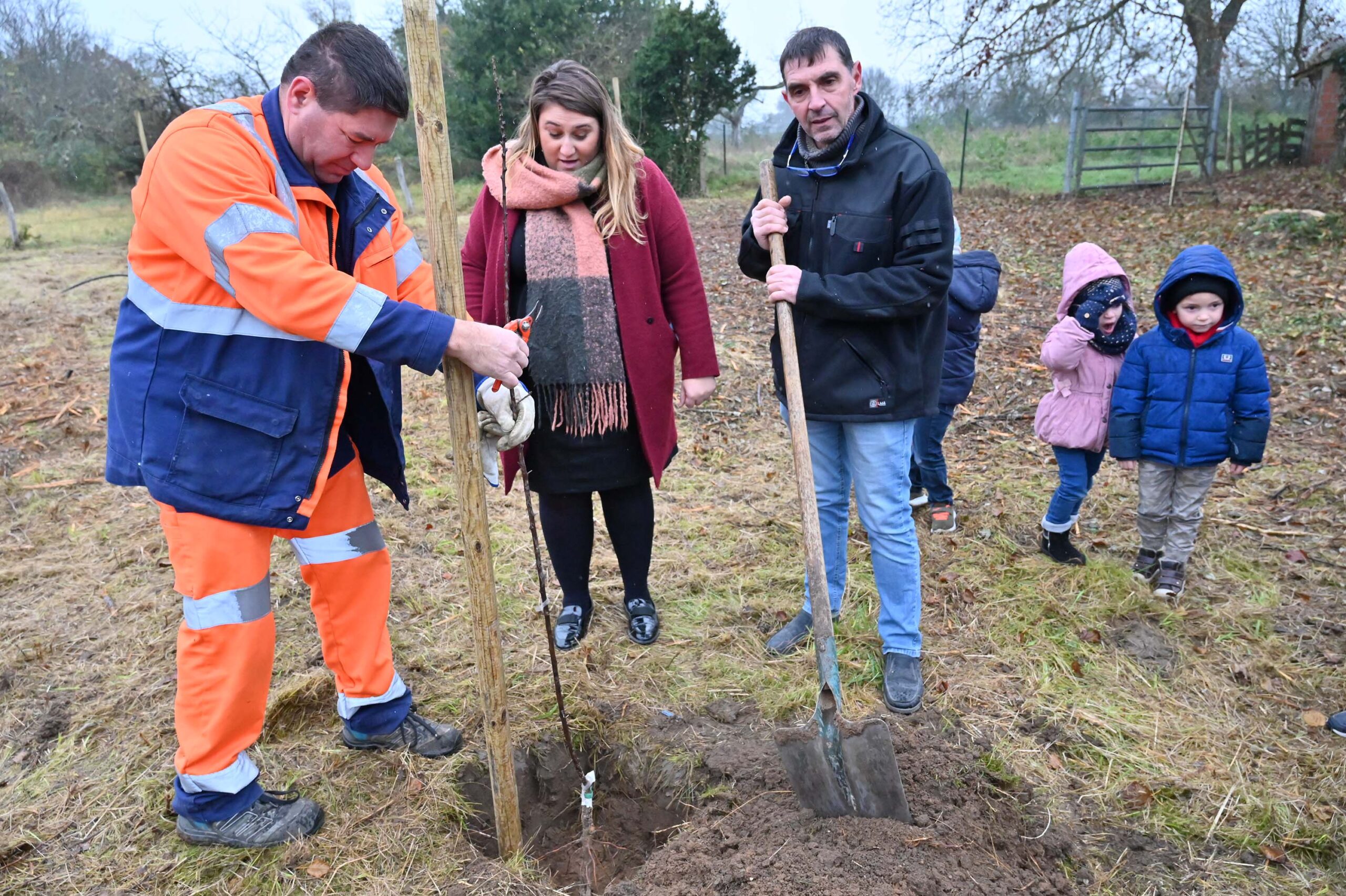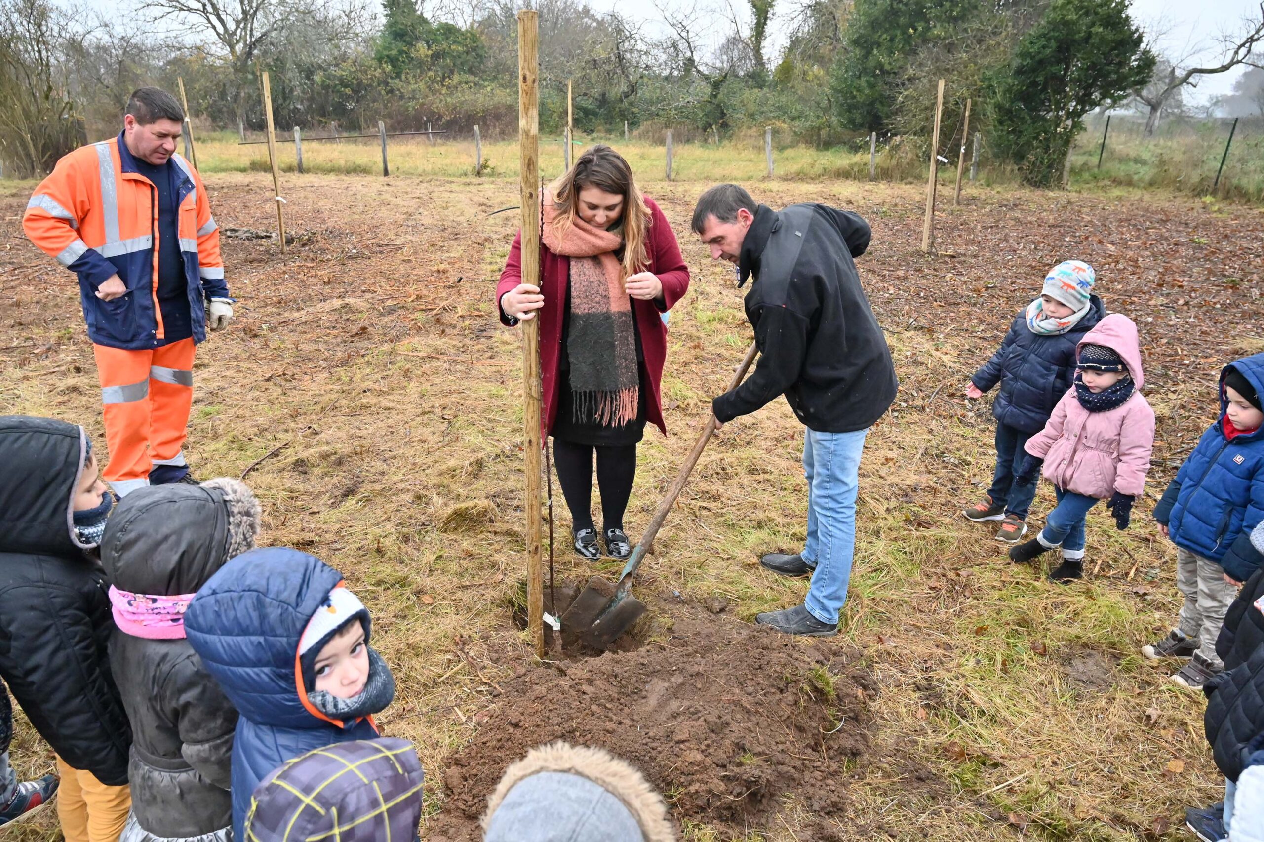 À Cossaye, en ce 25 novembre, Justine Guyot, vice-présidente chargée de l’autonomie, de la cohésion sociale et de la santé et Éric Vénuat, Maire de Cossaye, ont procédé à la plantation de végétaux, dans le cadre de l’opération « 1000 arbres ».