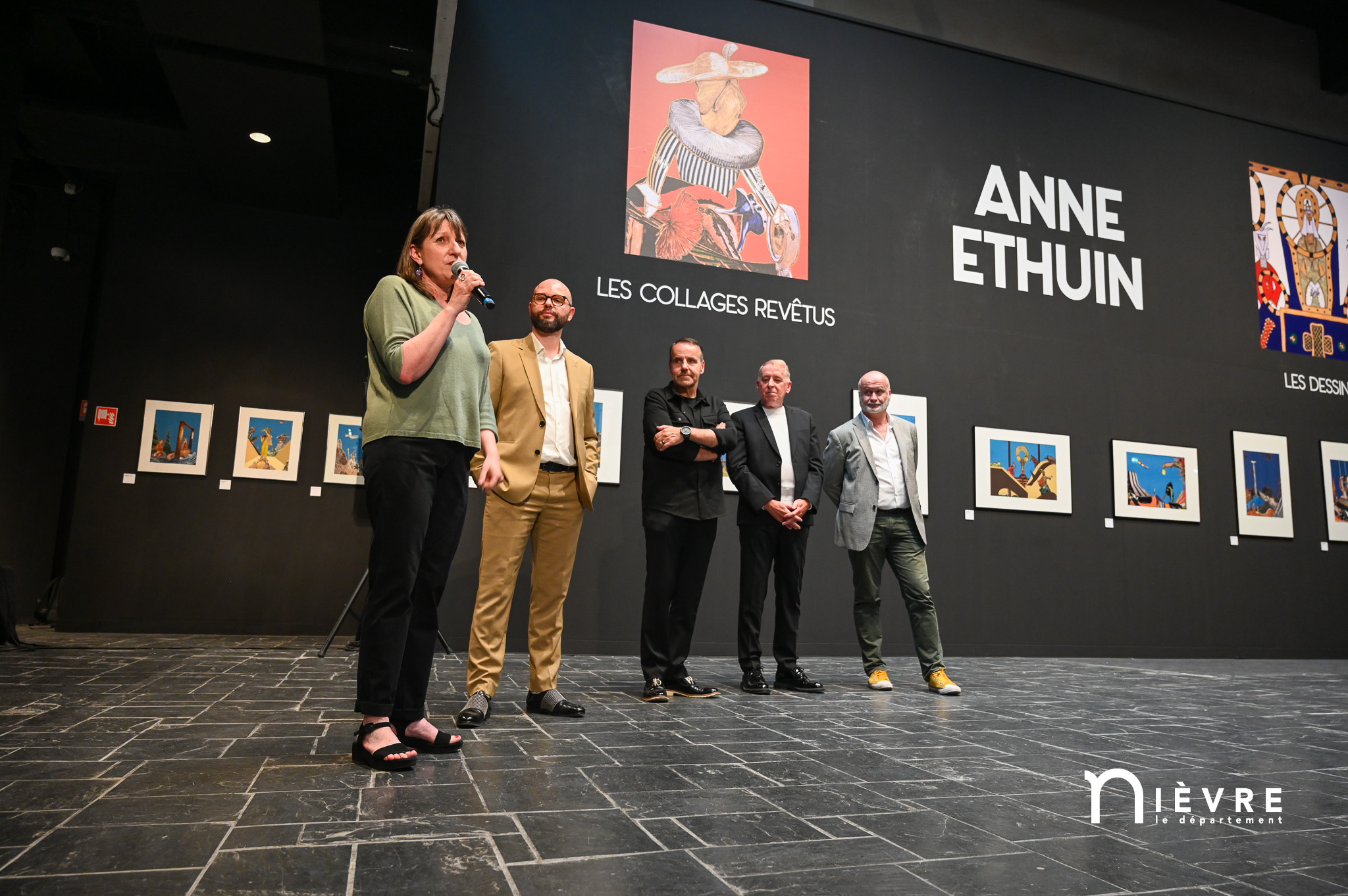 Grâce à la rencontre entre Christopher Vootz, commissaire d’expositions de La Maison, et Pierre Boulay et Gilles Petitclerc, collectionneurs québécois, Nevers accueille « la plus grande exposition consacrée à Anne Ethuin », selon Jean-Luc Revol, directeur de La Maison. Un pari artistique audacieux qui… colle à l’esprit de La Maison, où l’on passe des iconiques Bardot-Delon du studio Lévin à une esthétique plus pointue dans un égal respect du spectateur.