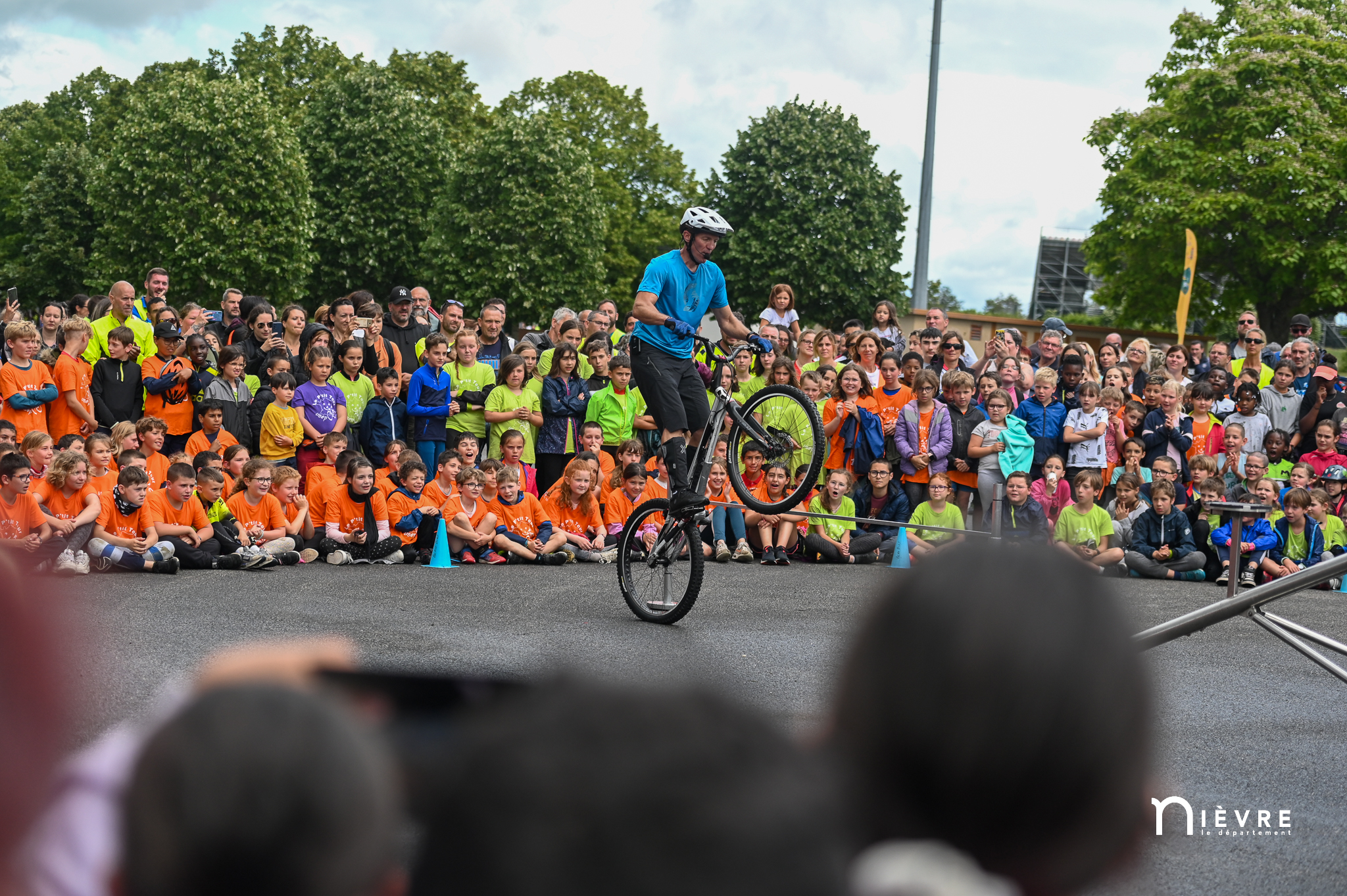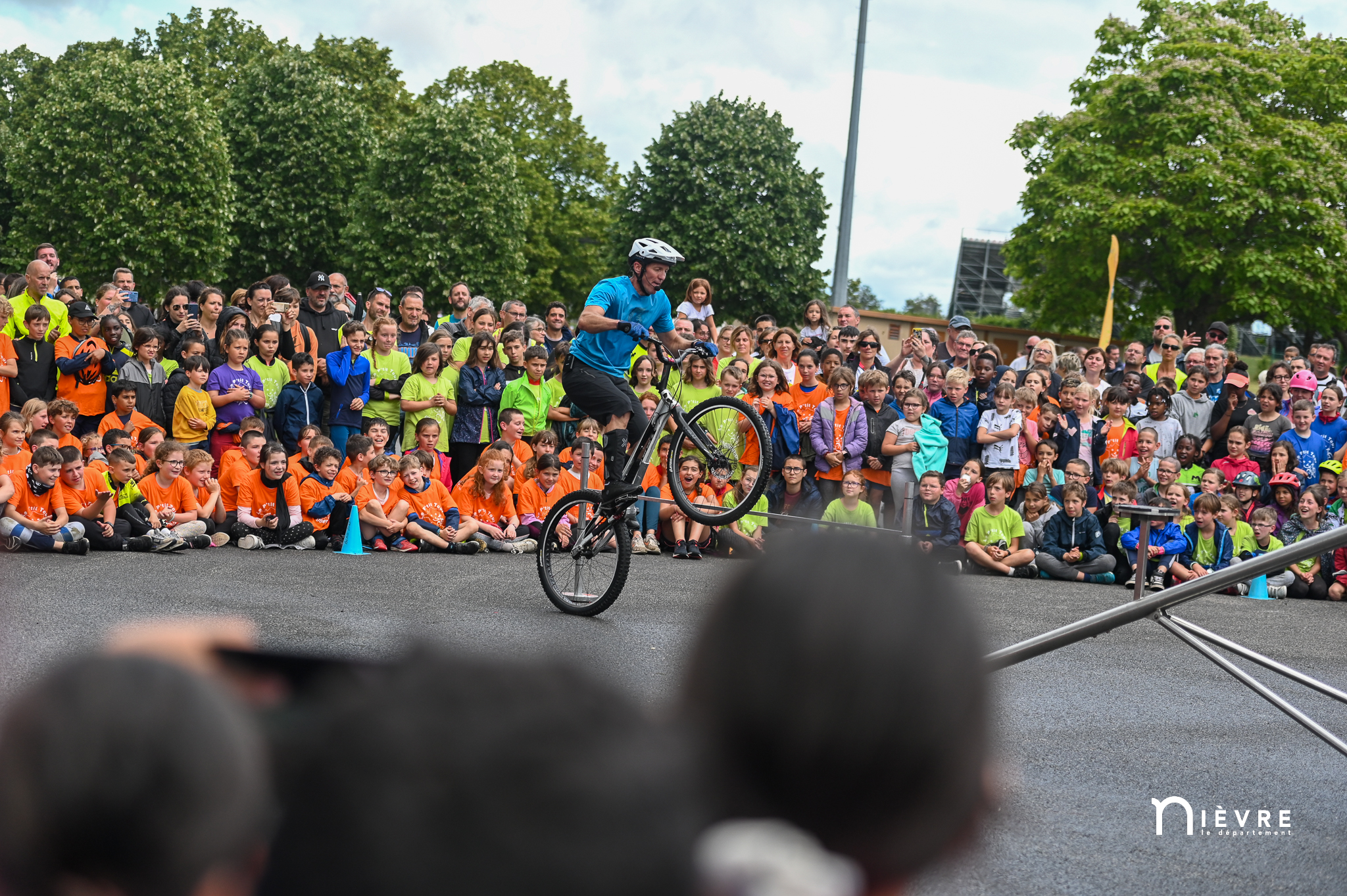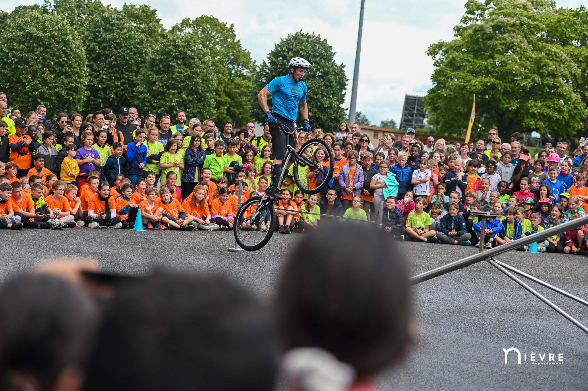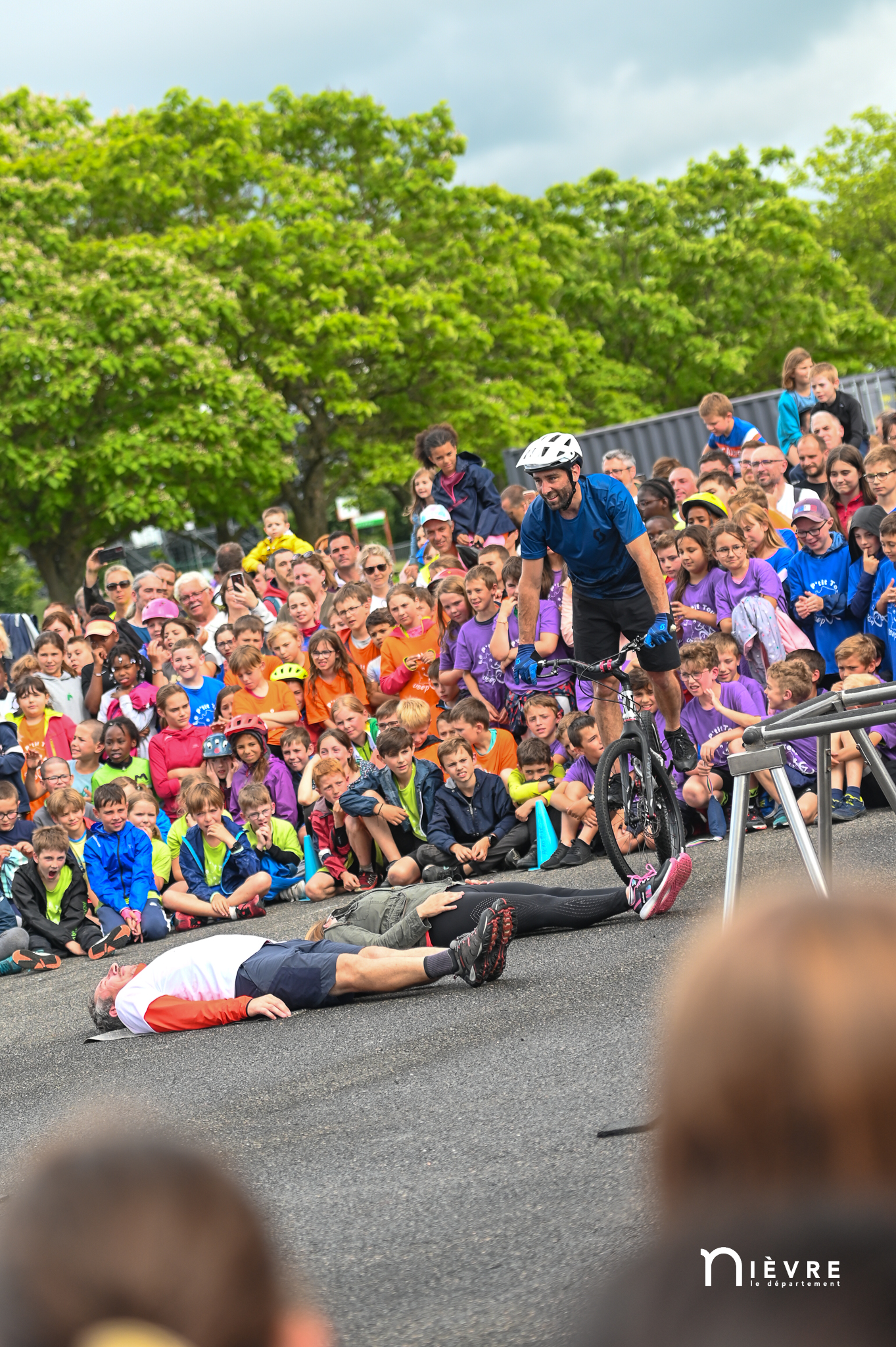 Ce 8 juin 2022, 1 300 écoliers ont parcouru 45 km lors du P’tit tour à vélo organisé par l’union sportive de l’enseignement du premier degré de la Nièvre (USEP 58) et se sont retrouvés sur le Circuit de Nevers Magny-Cours. Ils ont assistés au spectacle de VTT trial par Acrobike, avant de s’élancer pour une dernière course sur la piste du circuit.