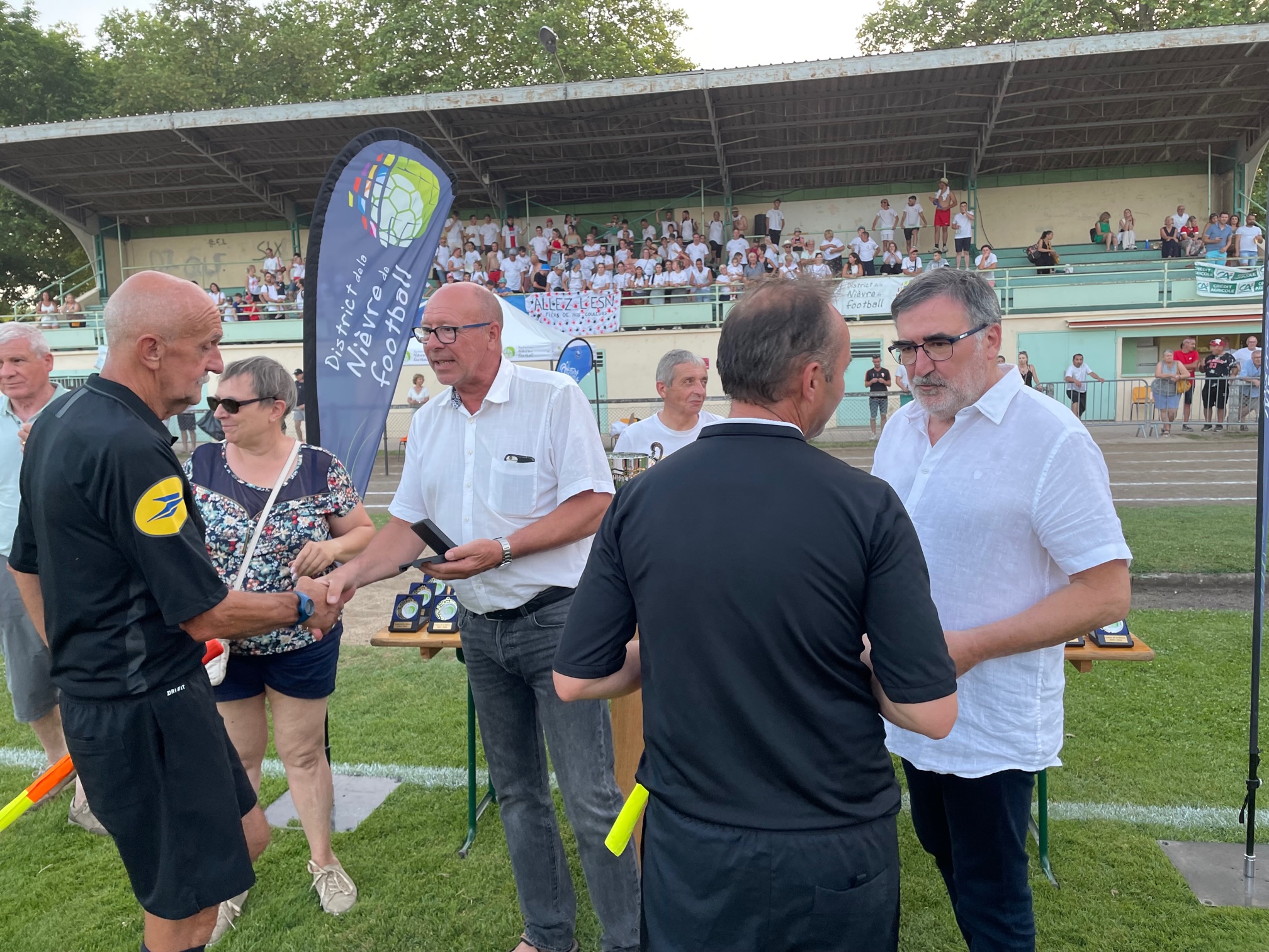 La lourde chaleur (36 ° C) a pesé sur les organismes et sur l’intensité d’une rencontre qui s’est déroulée devant des centaines de supporters et en présence de plusieurs élus du Département : Lionel Lécher, vice-président chargé du monde associatif et des sports (et élu vauzellien), Alain Herteloup, vice-président chargé des infrastructures, des bâtiments et des déplacements (et maire de Fourchambault), et Jean-Paul Fallet, conseiller délégué à l’habitat et à l’économie sociale et solidaire. Tous trois ont remis le bouclier du vainqueur aux Vauzelliens.
