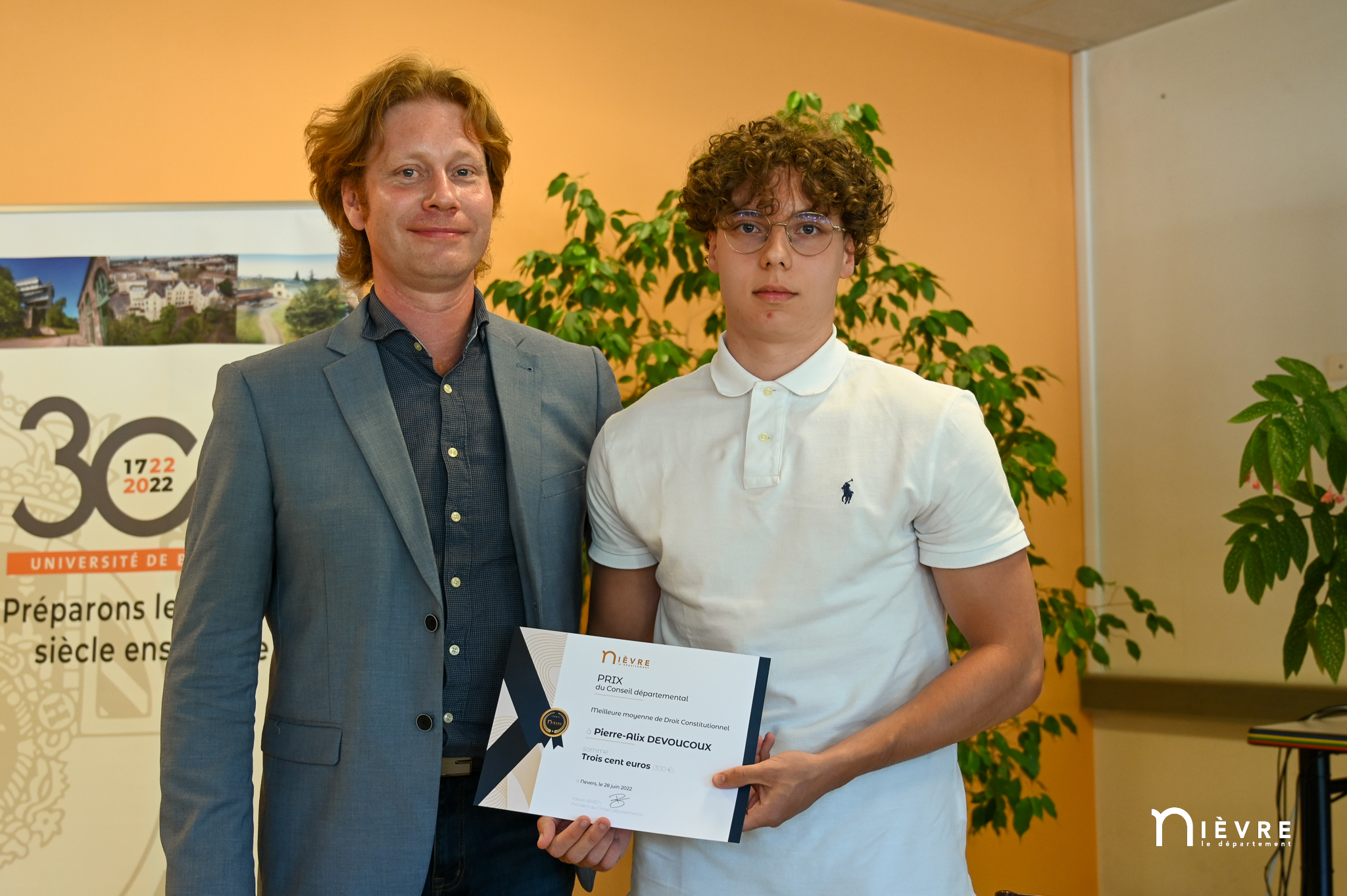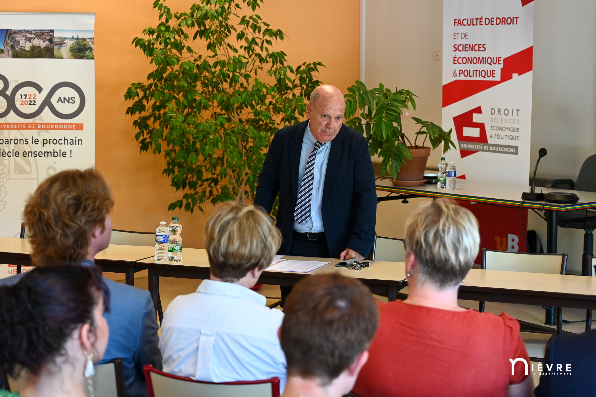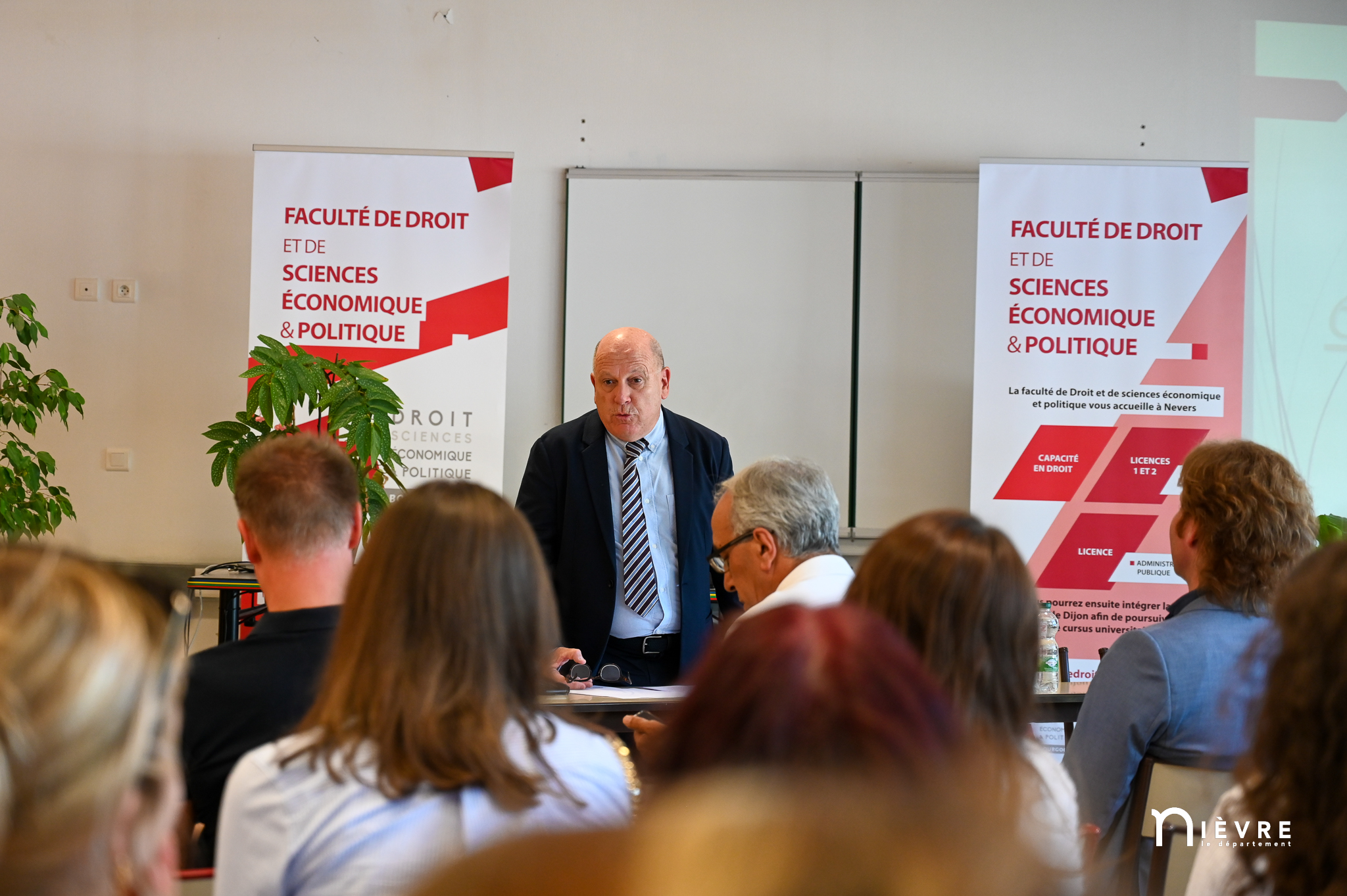 Wilfrid Séjeau, vice-président en charge des collèges, de l’éducation, de la culture, de la jeunesse et de l’enseignement supérieur, a remis les prix aux étudiants en droit le 28 juin, à la Faculté de droit de Nevers.