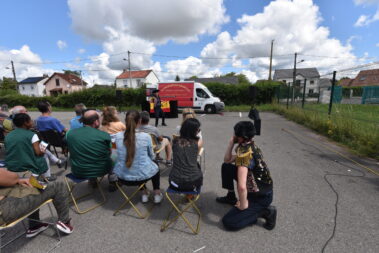 Bien avant l’arrivée du camion, le public était déjà installé, impatient de découvrir le spectacle choisi par les deux « épicières ». Le public a pu découvrir C’est la vida ! de la compagnie De Fakto. L’histoire d’un couple qui nous fait vivre les plus grands moments de sa vie, un spectacle qui vous transporte dans un tourbillon musical et poétique, alliant danse, humour et art du mime.