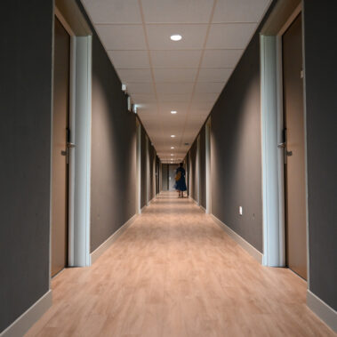 Ce bâtiment flambant neuf de 1 500 m² jouxtant la maternité devient un atout indispensable pour la venue des internes au centre hospitalier. Ses 40 chambres meublées réparties sur 3 niveaux et son espace de vie commune de 150 m² (salle à manger et salon donnant sur une terrasse) offrent des conditions idéales et souvent requises par les étudiants quand ils choisissent leur lieu d’internat. L’ancien site, composé uniquement de 10 chambres, ne correspondait plus à leurs attentes ; ils privilégient le cadre, la qualité du service, la proximité, l’accueil et la convivialité.