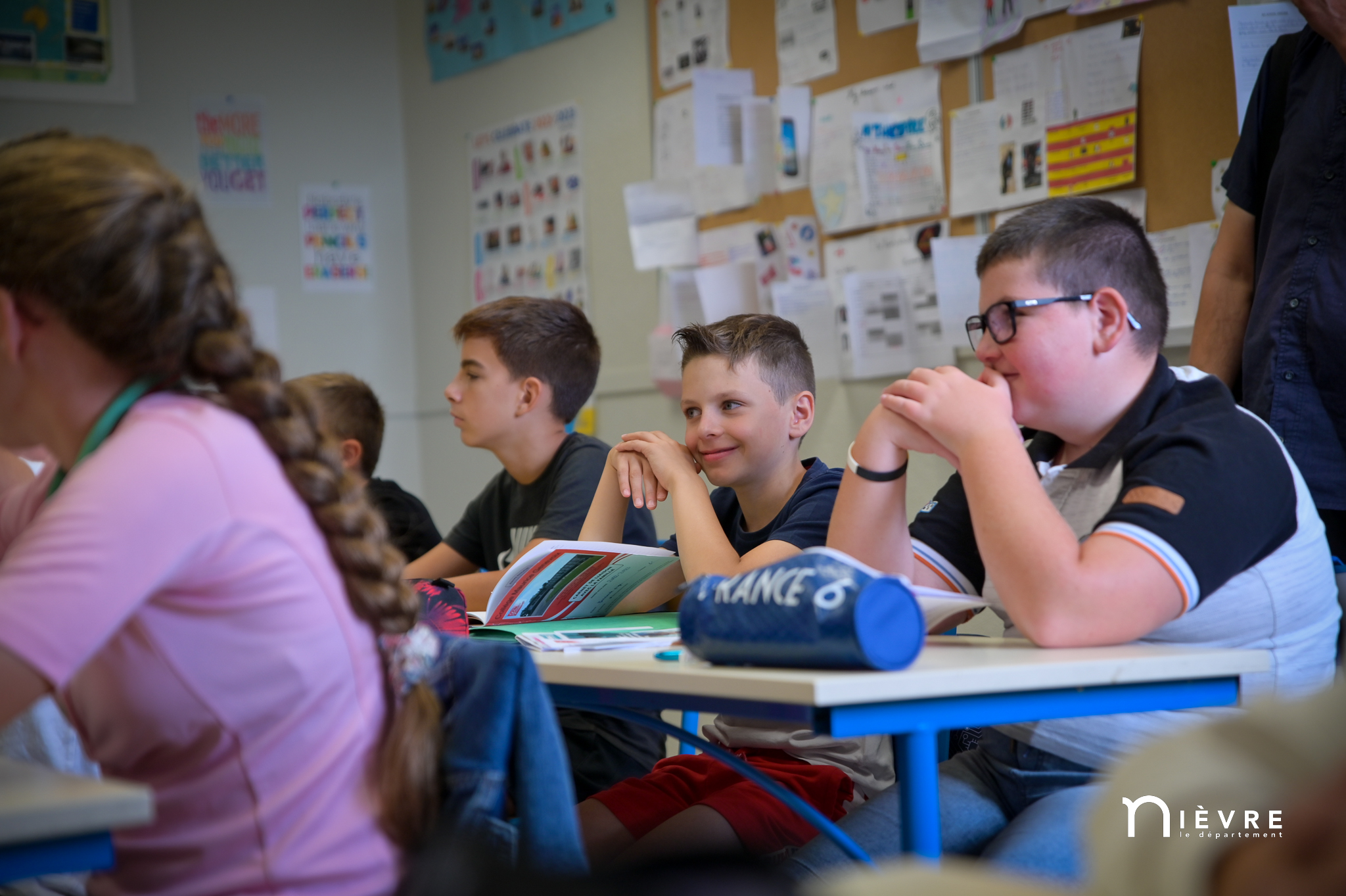 Entre deux tranches d’instruction civique impromptue impulsée par le sénateur Patrice Joly – à quoi sert le Sénat ? Qu’est-ce qu’un préfet ? Que fait le Département dans les collèges ? –, les adultes en visite ont décliné le « carpe diem » à l’usage de leurs jeunes hôtes avec la ferveur sincère de leur propre jeunesse enfuie. « Vous allez tomber amoureux, profitez, amusez-vous, faites rire vos profs, ils en ont besoin », encourage Fabien Bazin, président du Conseil départemental, devant une classe de 6e decizoise. « Pensez à vous car cela va passer très vite, vous allez vous retrouver en 3e ou en 2nde sans avoir eu le temps de comprendre ce qui vous est arrivé. »