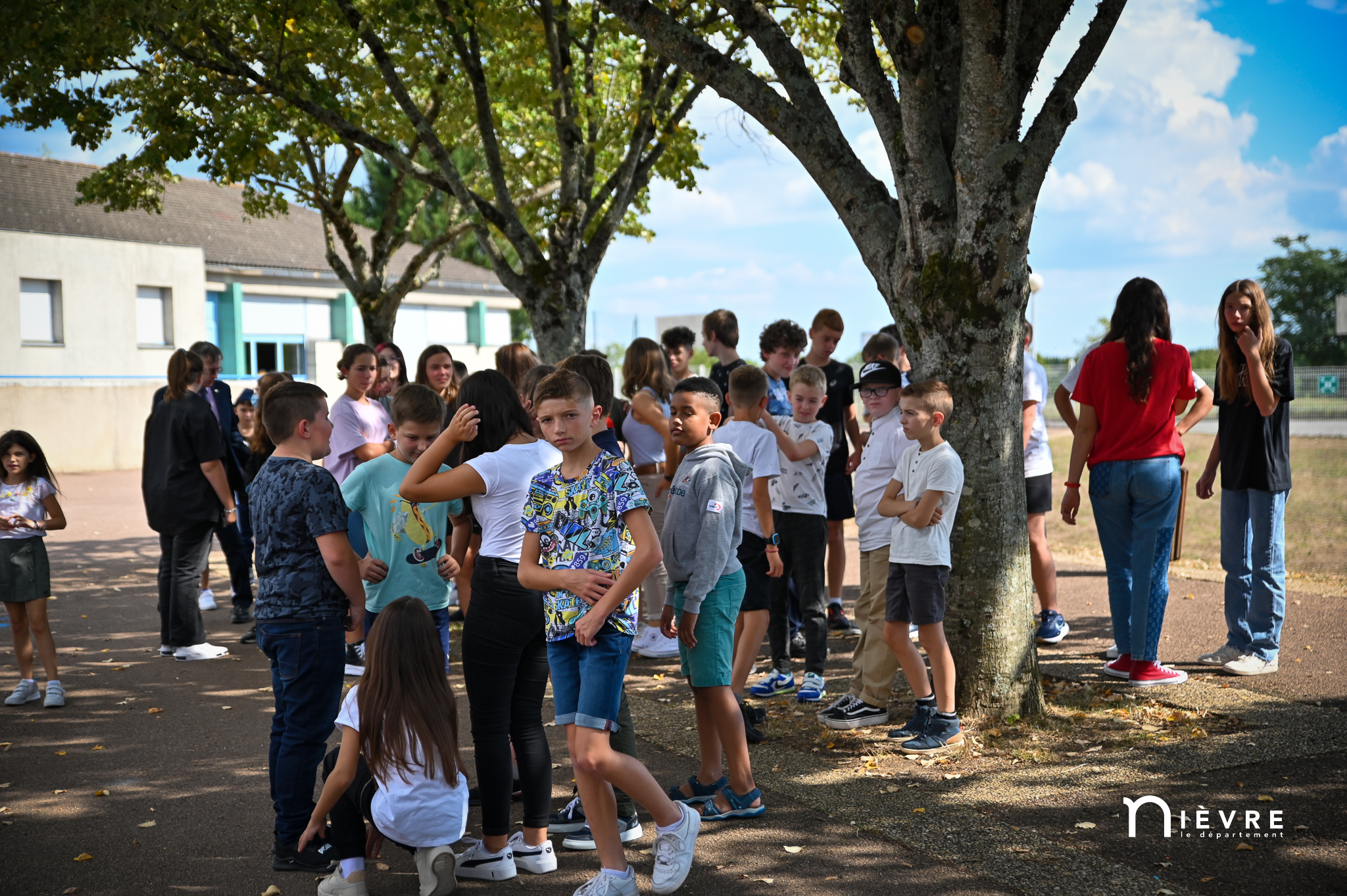 Ils auraient volontiers troqué leur costume et leur cravate étouffants sous le soleil pour les shorts et T-shirts cavalant dans la cour. Et échangé leurs lourdes pensées d’adulte contre l’insouciance zébrant l’air de la récré. Préfet et sous-préfet, président et vice-président du Conseil départemental, parlementaires et agents du Département (1) se sont replongés avec joie et nostalgie dans leurs années collège, jeudi 1er septembre, pour la rituelle tournée de rentrée qui les a conduits à Decize et à Pouilly-sur-Loire. En se remémorant dans les couloirs quelques bêtises prescrites et, surtout, l’ineffable bonheur de cette période charnière de la vie, transition initiatique de l’enfance à l’adolescence, et découvertes afférentes.