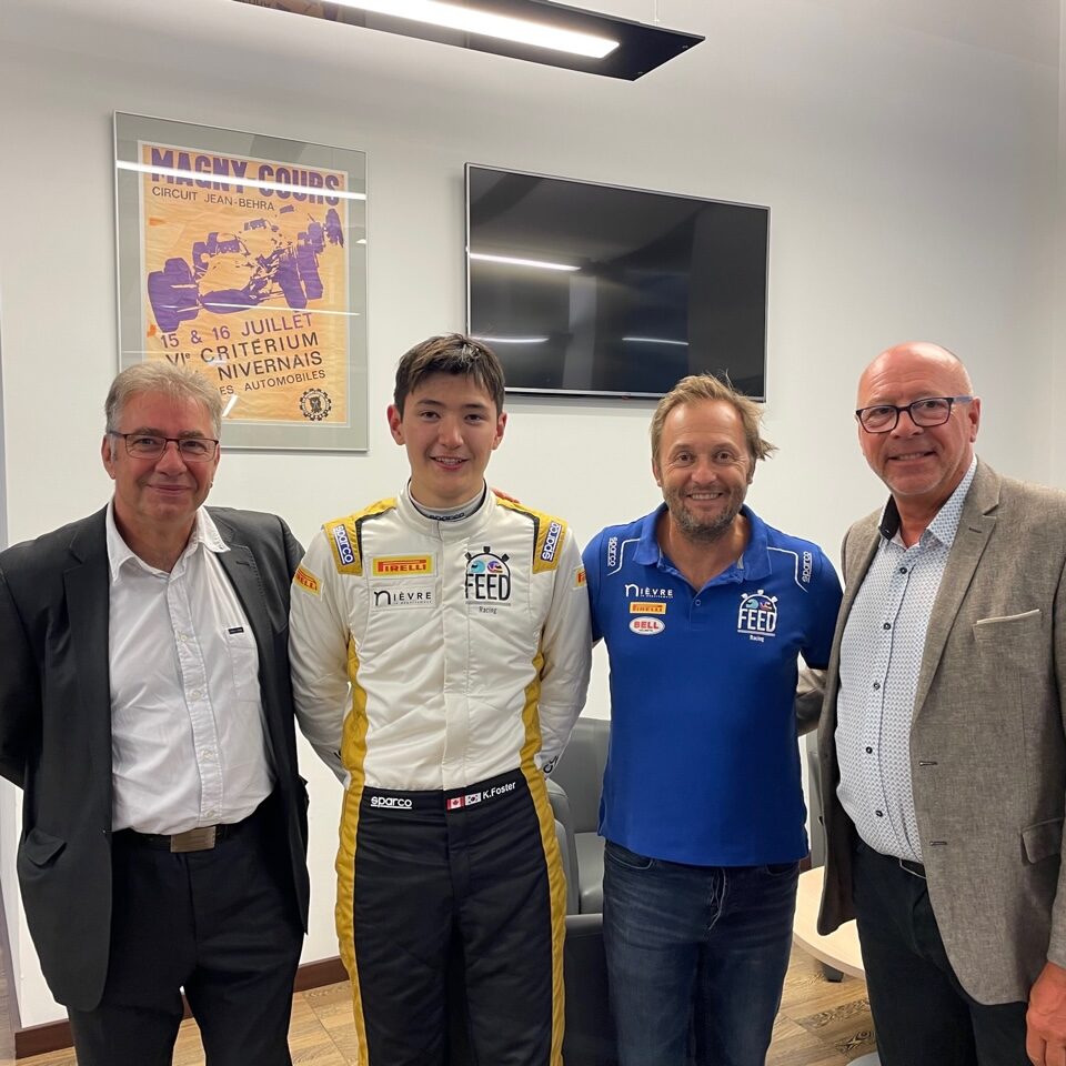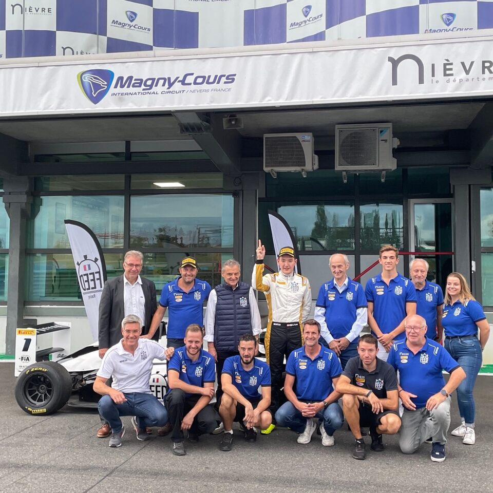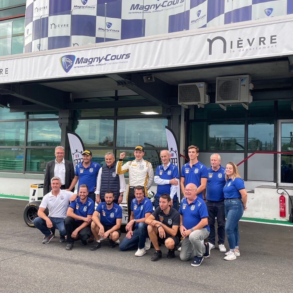 Dans le cadre du partenariat entre le Conseil départemental de la Nièvre et Feed Racing France F4, s’est déroulée, hier à Magny-Cours, la course finale de la prestigieuse école de pilotage fondée par Patrick Lemarié et Jacques Villeneuve. Lionel Lécher vice-président, en charge des relations avec le monde associatif et des sports et Alain Herteloup, vice-président en charge des infrastructures, des bâtiments et des déplacements, ont pu féliciter le vainqueur de la course : Kevin Foster.