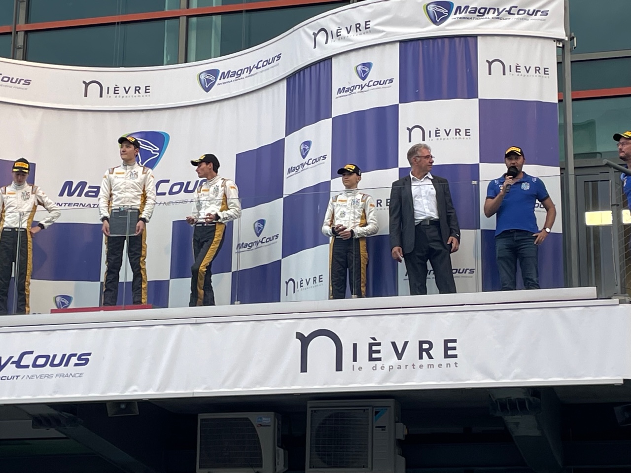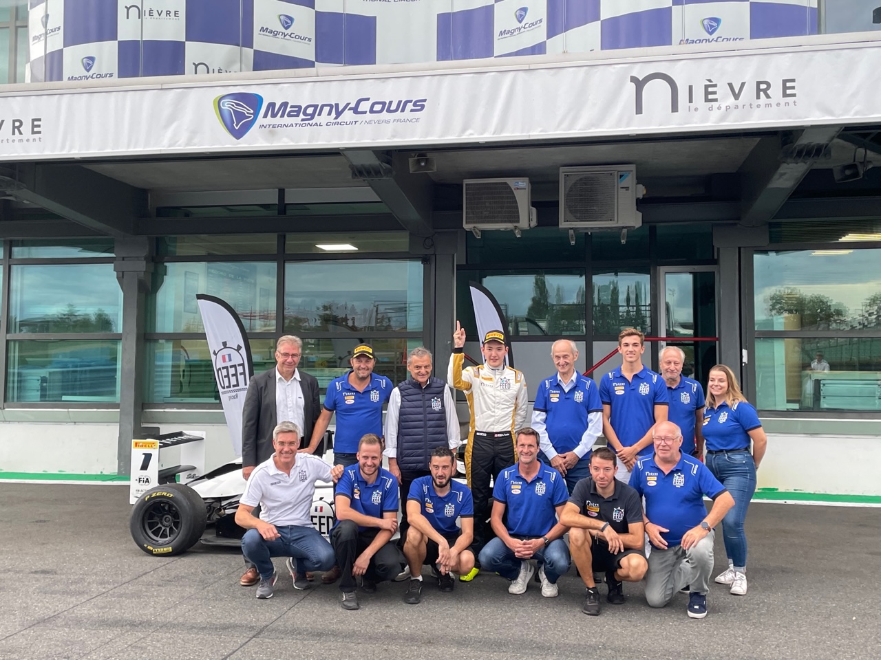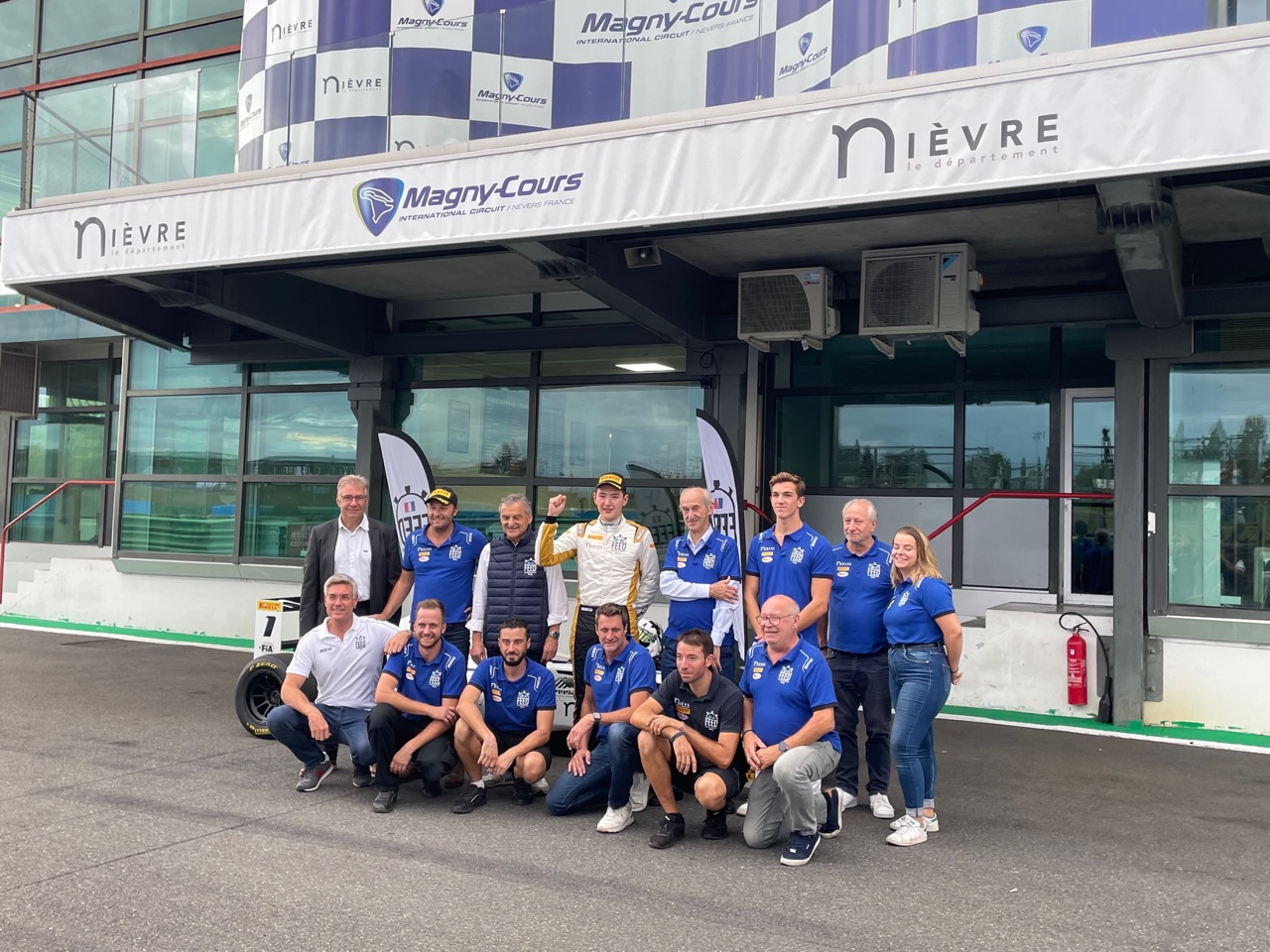 Dans le cadre du partenariat entre le Conseil départemental de la Nièvre et Feed Racing France F4, s’est déroulée, hier à Magny-Cours, la course finale de la prestigieuse école de pilotage fondée par Patrick Lemarié et Jacques Villeneuve. Lionel Lécher vice-président, en charge des relations avec le monde associatif et des sports et Alain Herteloup, vice-président en charge des infrastructures, des bâtiments et des déplacements, ont pu féliciter le vainqueur de la course : Kevin Foster.