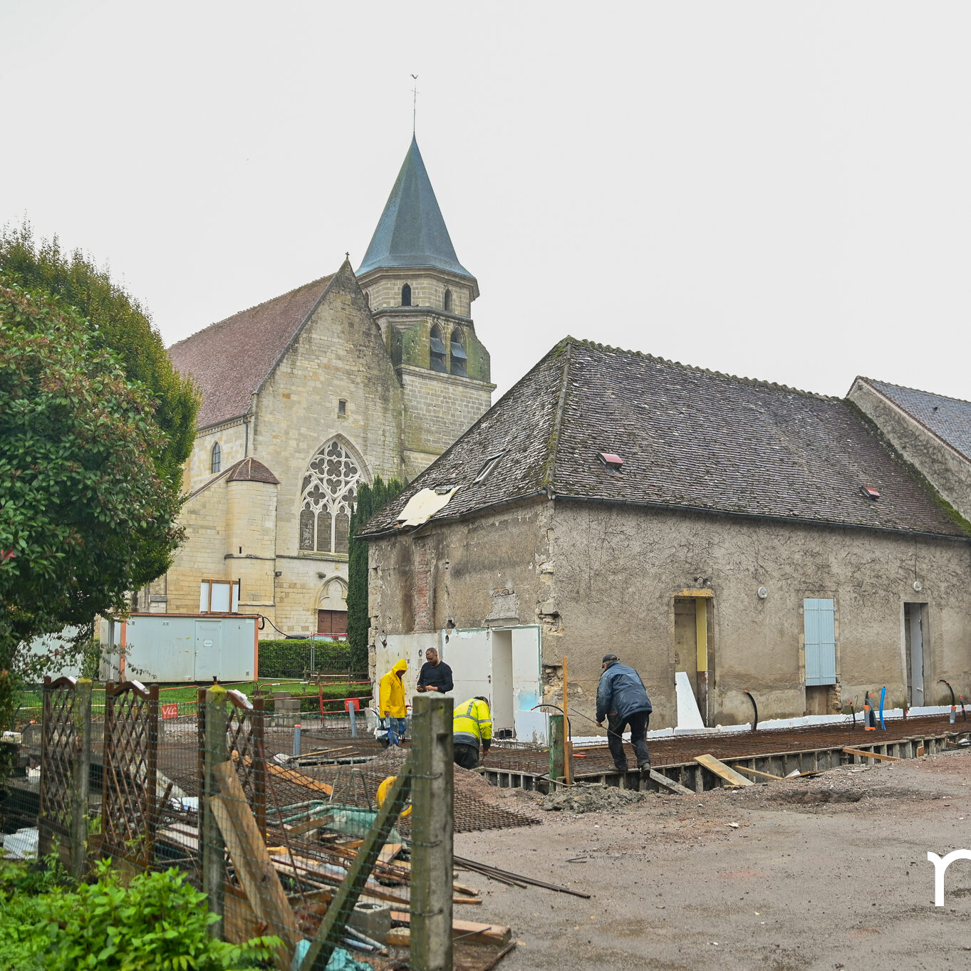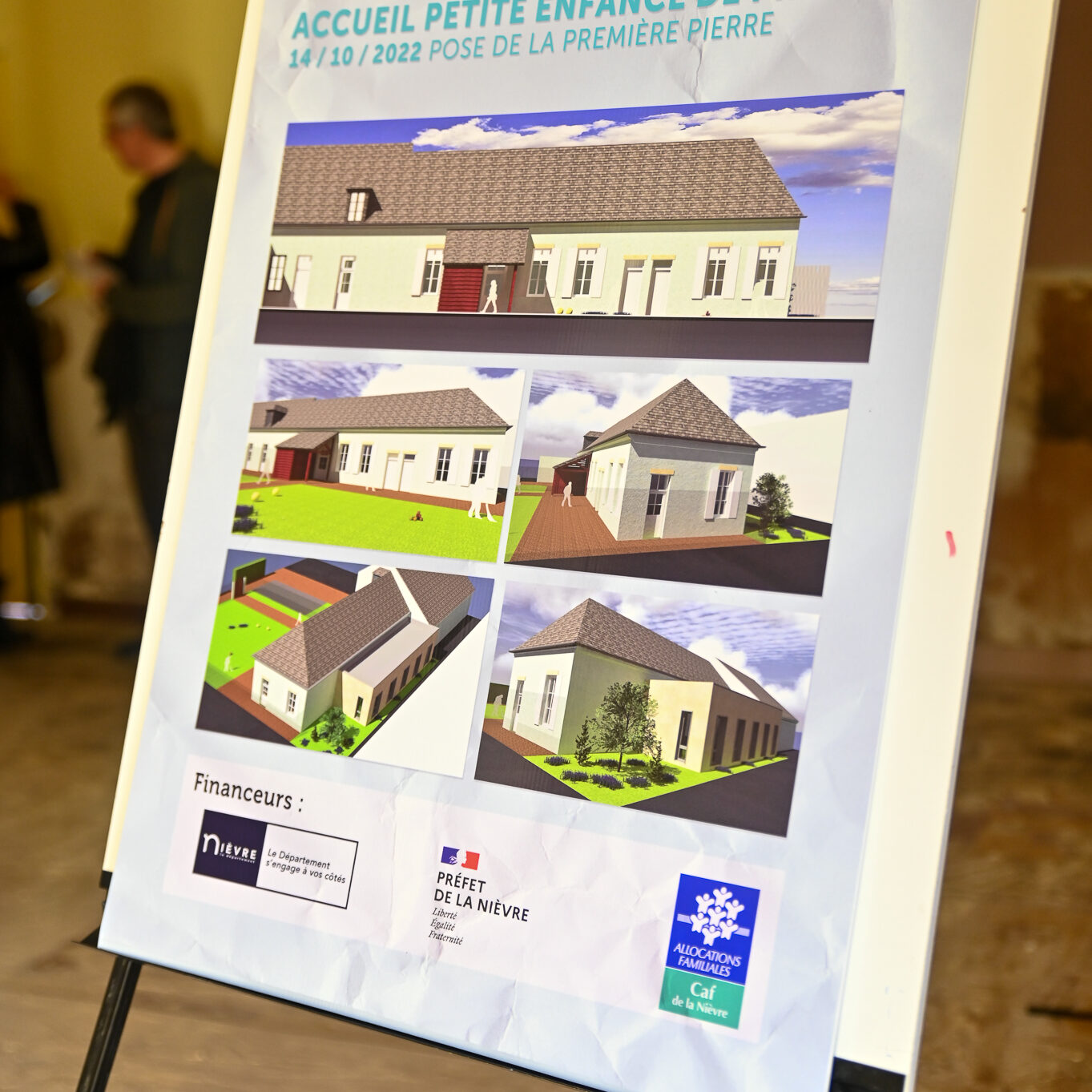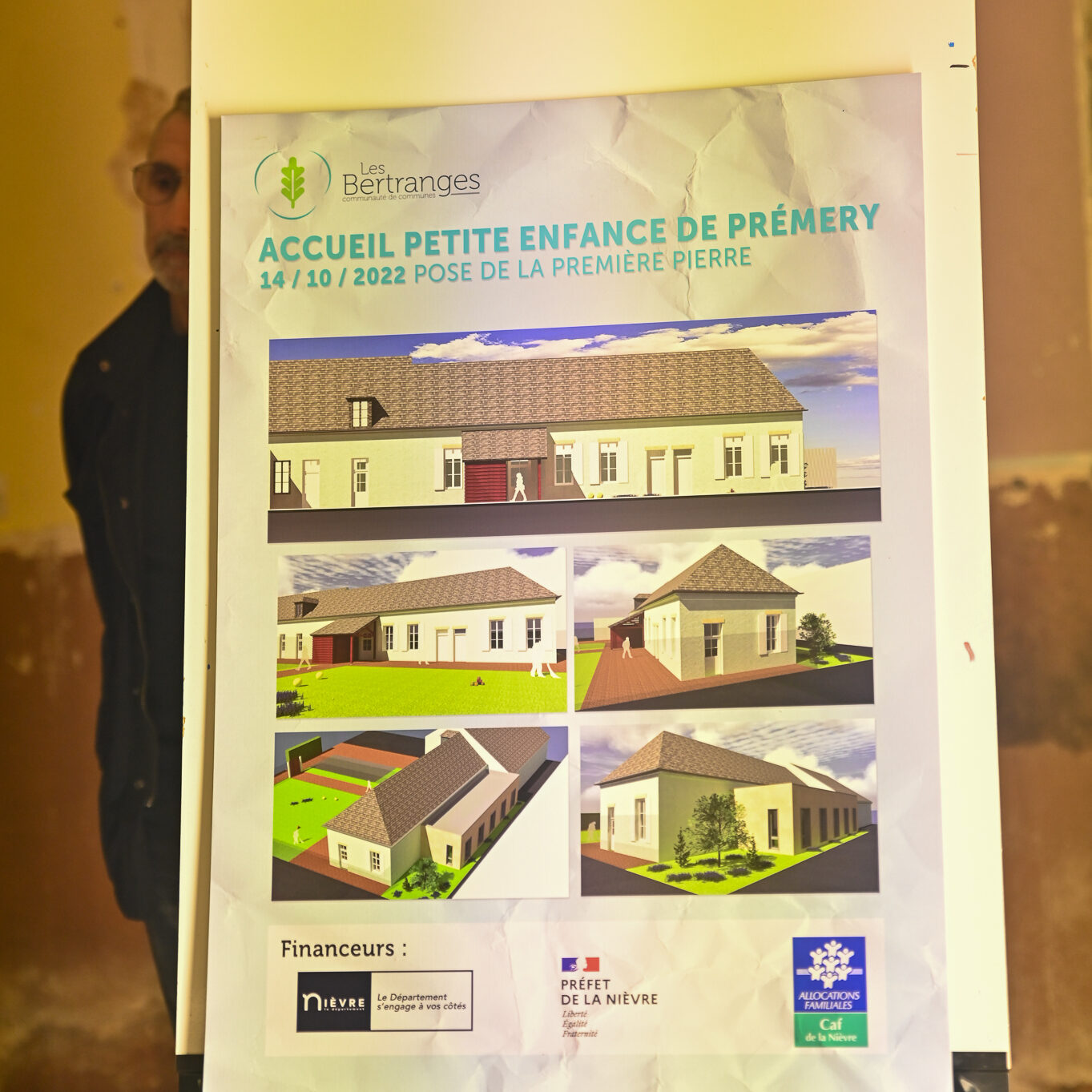 Les ouvriers sont déjà à l’œuvre sur les fers à béton et sous le crachin de fin de semaine, et regardent avec un sourire évaluateur les officiels manier truelle et parpaings pour la pose symbolique de la première pierre, à quelques mètres du chantier d’extension de la Maison de la petite enfance de Prémery.