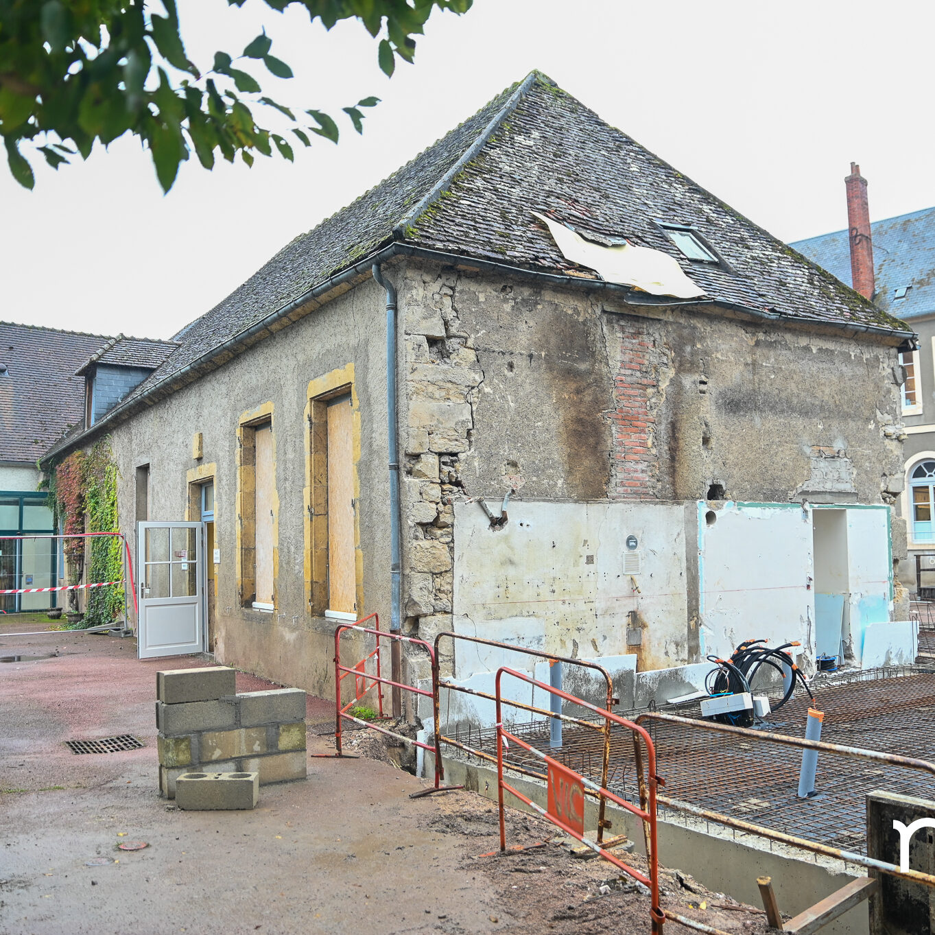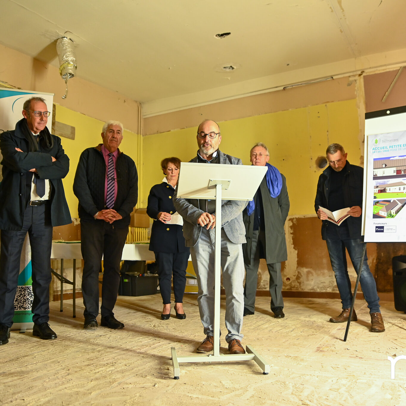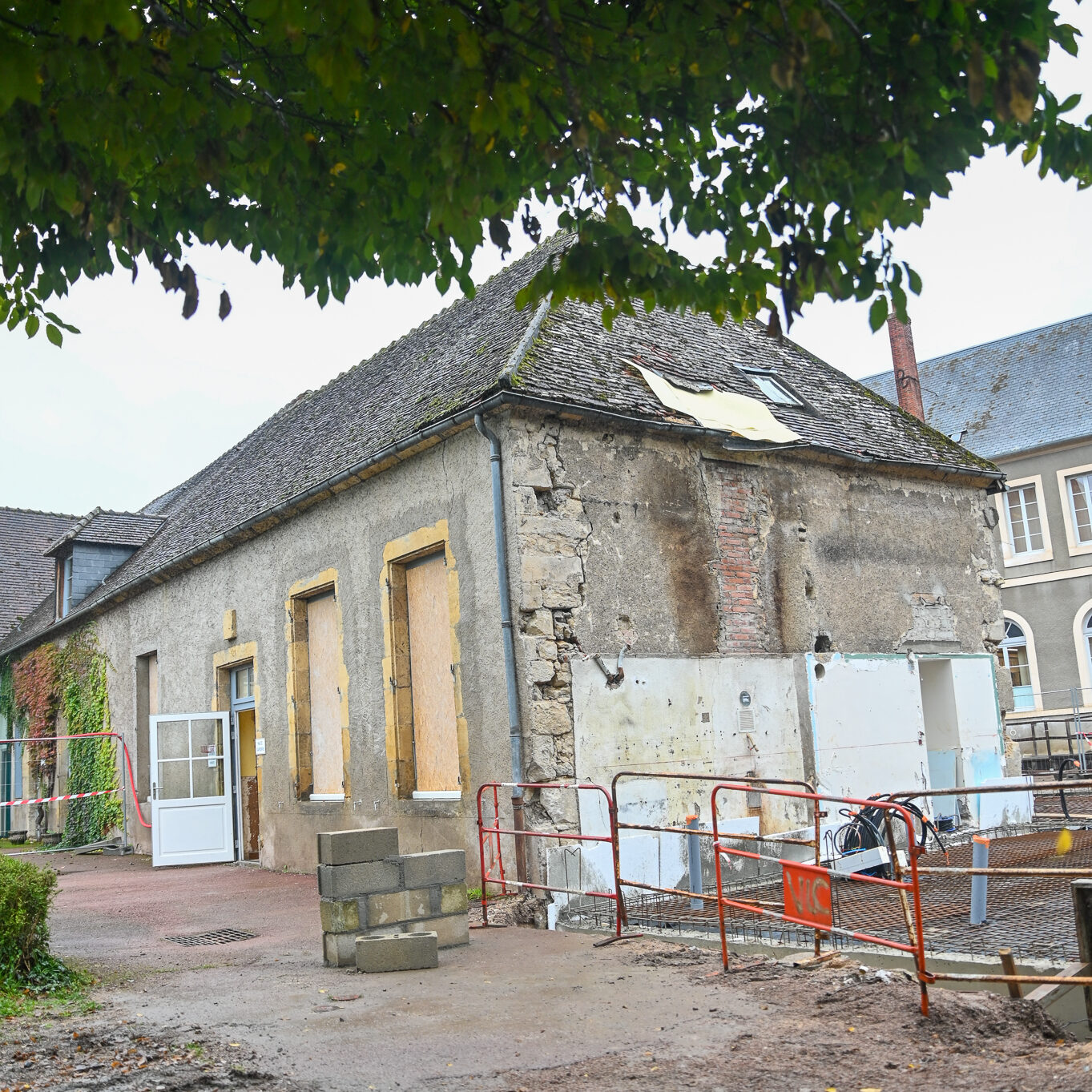 En étau entre l’école et l’église, le bâtiment vieillissant a entamé cet été une longue transfiguration dont le résultat n’est perceptible que sur les vues d’architecte. Et il est spectaculaire. En partie démoli, dûment désamianté, le local aux flancs creusés passera de 90 à 180 m² au terme d’une année de travaux. Une réalisation saluée par les élus – le maire Alexis Plisson, le président de la communauté de communes des Bertranges, Claude Baland –, tant elle était « attendue et désirée par tout un territoire », souligne Philippe Berquier, président du Centre socioculturel intercommunal, puzzle d’activités dont le multi-accueil Pirouette est une des pièces maîtresses : « La structure n’était plus adaptée aux attentes. »