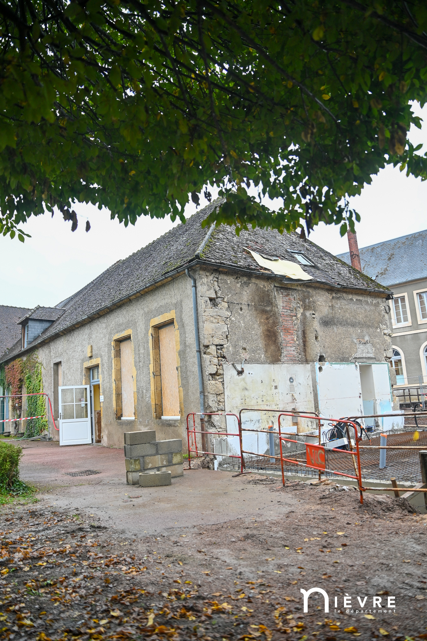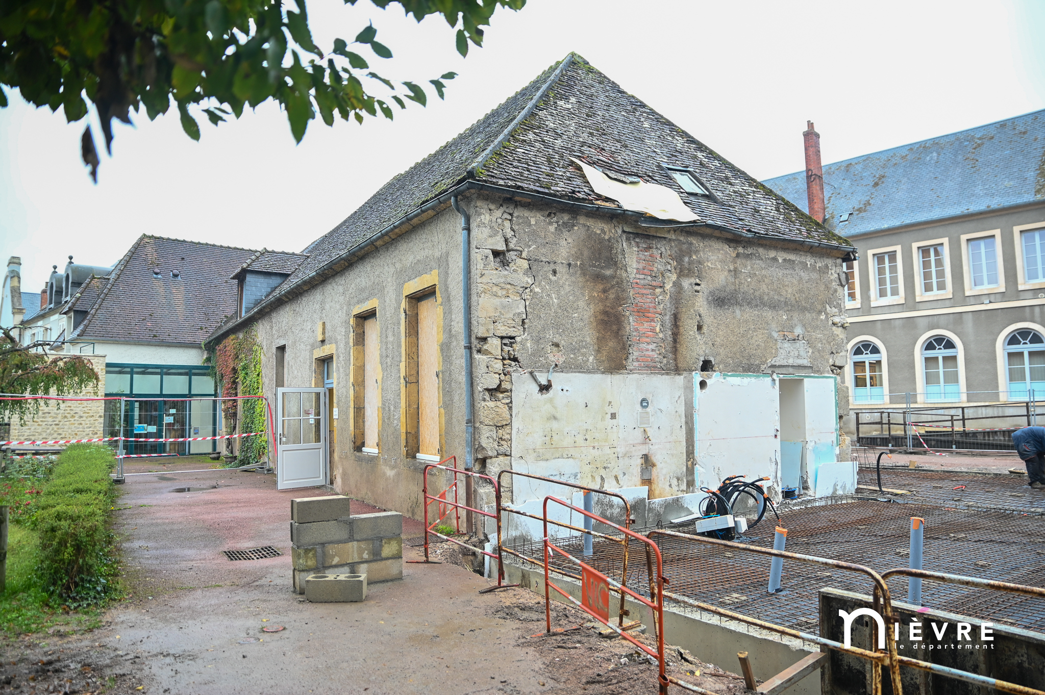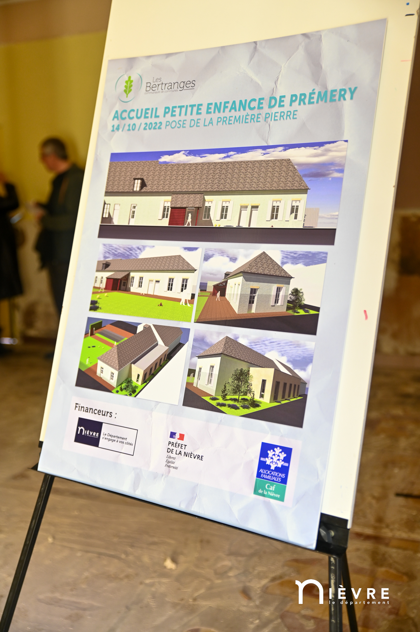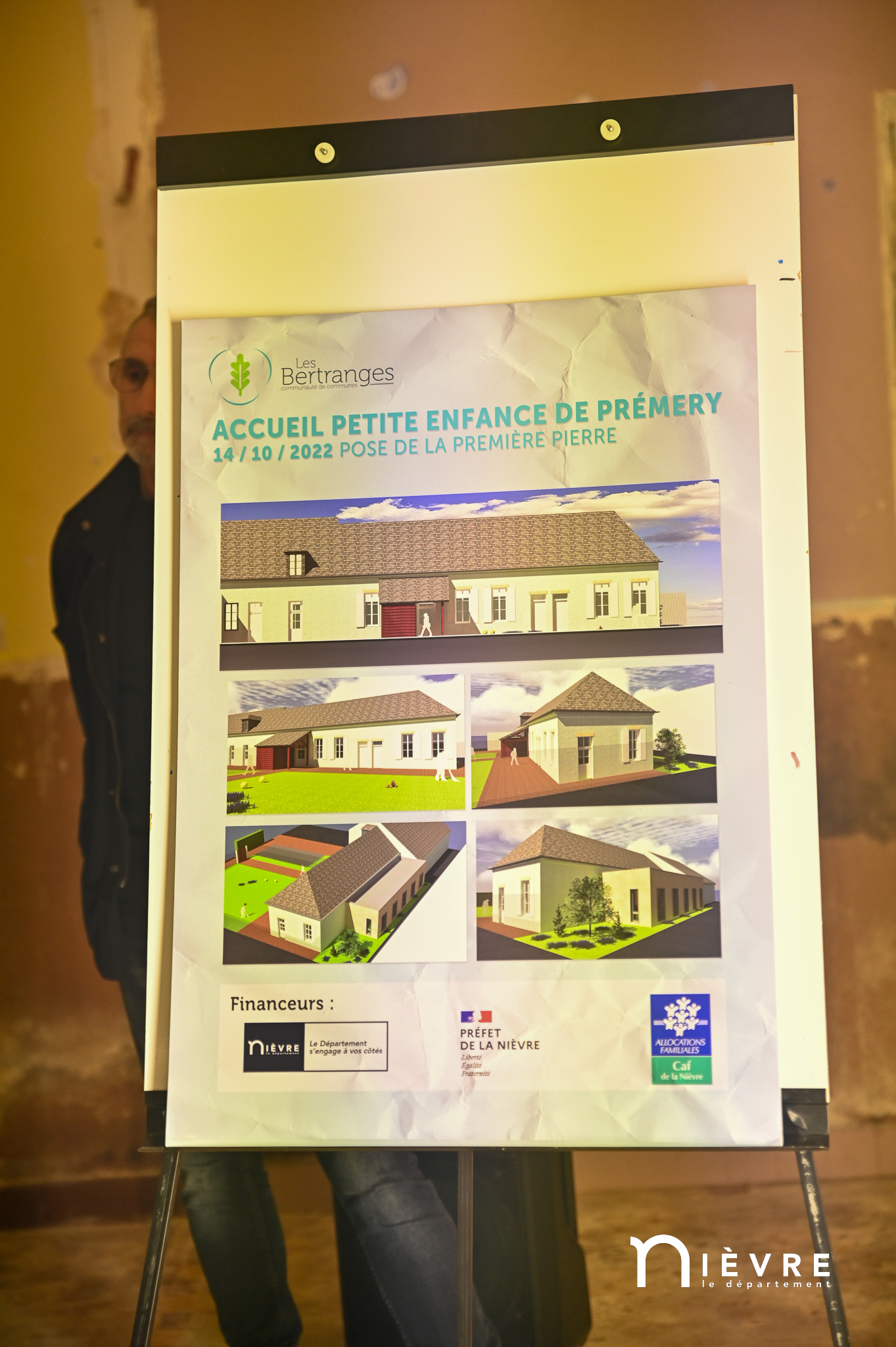 Les ouvriers sont déjà à l’œuvre sur les fers à béton et sous le crachin de fin de semaine, et regardent avec un sourire évaluateur les officiels manier truelle et parpaings pour la pose symbolique de la première pierre, à quelques mètres du chantier d’extension de la Maison de la petite enfance de Prémery.