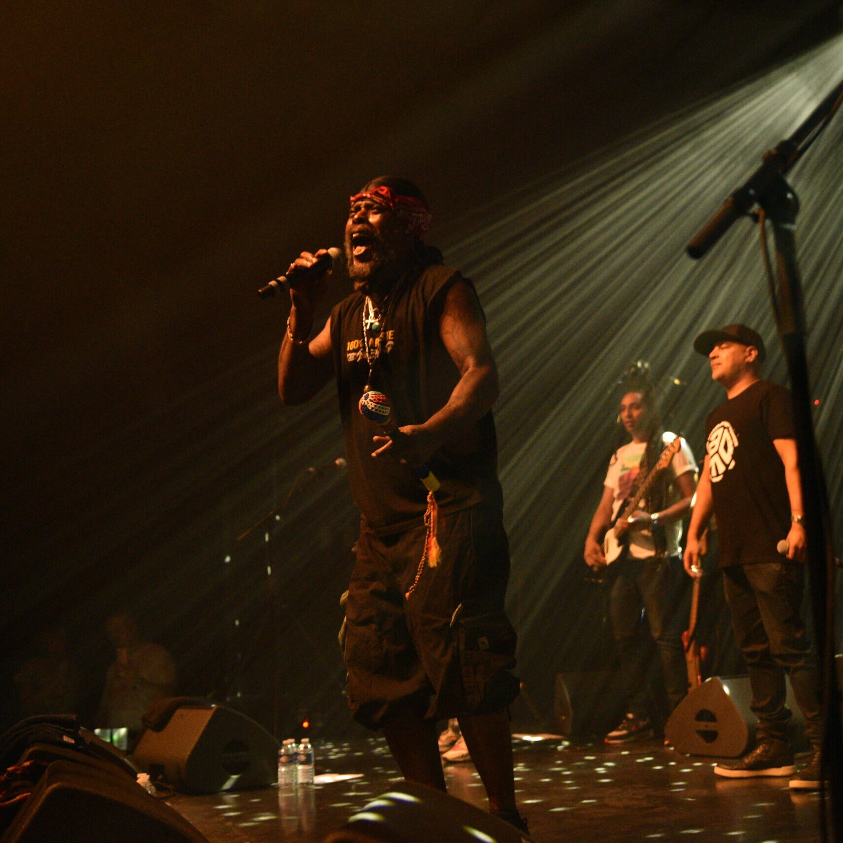 Il faudra attendre 22 h pour que le groupe anglais ASIAN DUB FOUNDATION, en tournée en France pour la sortie de son 9e album ACCESS DENIED, prenne place sur la scène du Charbon. L’histoire commence dans les années 90, lorsque le groupe se forme à partir d’un atelier de musique dans l’Est de Londres dans l’institution Community Music. Reconnu comme l’un des meilleurs groupes live, ADF est immédiatement reconnaissable par sa musique, habile mélange entre plusieurs influences qui a construit l’identité du groupe. Ce son unique, puisé dans leurs racines sud-asiatiques et sur fond de rap militant, a permis au groupe de traverser les générations et de garder intact son pouvoir d’attraction depuis 30 ans d’existence. Comme aux premiers jours, la fusion opère, l’effet est immédiat, les compositions énergétiques font vibrer le public.