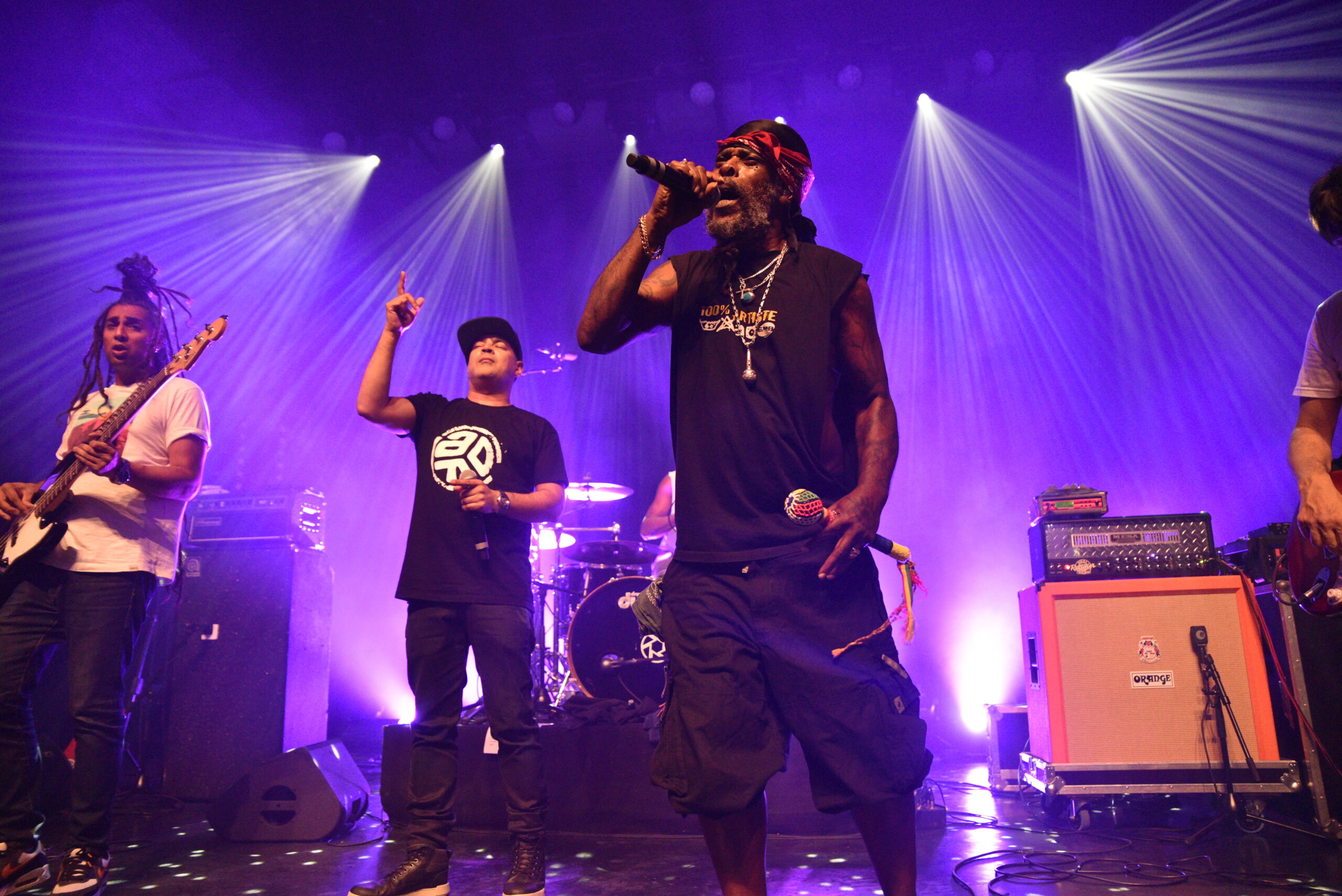 Avant de plonger dans l’atmosphère unique d’ASIAN DUB FOUNDATION, c’est le quatuor belge WHY THE EYE ?, qui a ouvert la soirée. Installés au milieu du public, ces 4 musiciens, coiffés de masques étranges, ont hypnotisé le public. Une performance où les sons bruts et expérimentaux nous plongent dans une ambiance particulière, à la limite de la transe. Une expérience insolite, à la fois dérangeante et agréable, propice à dévoiler nos instincts primaires.