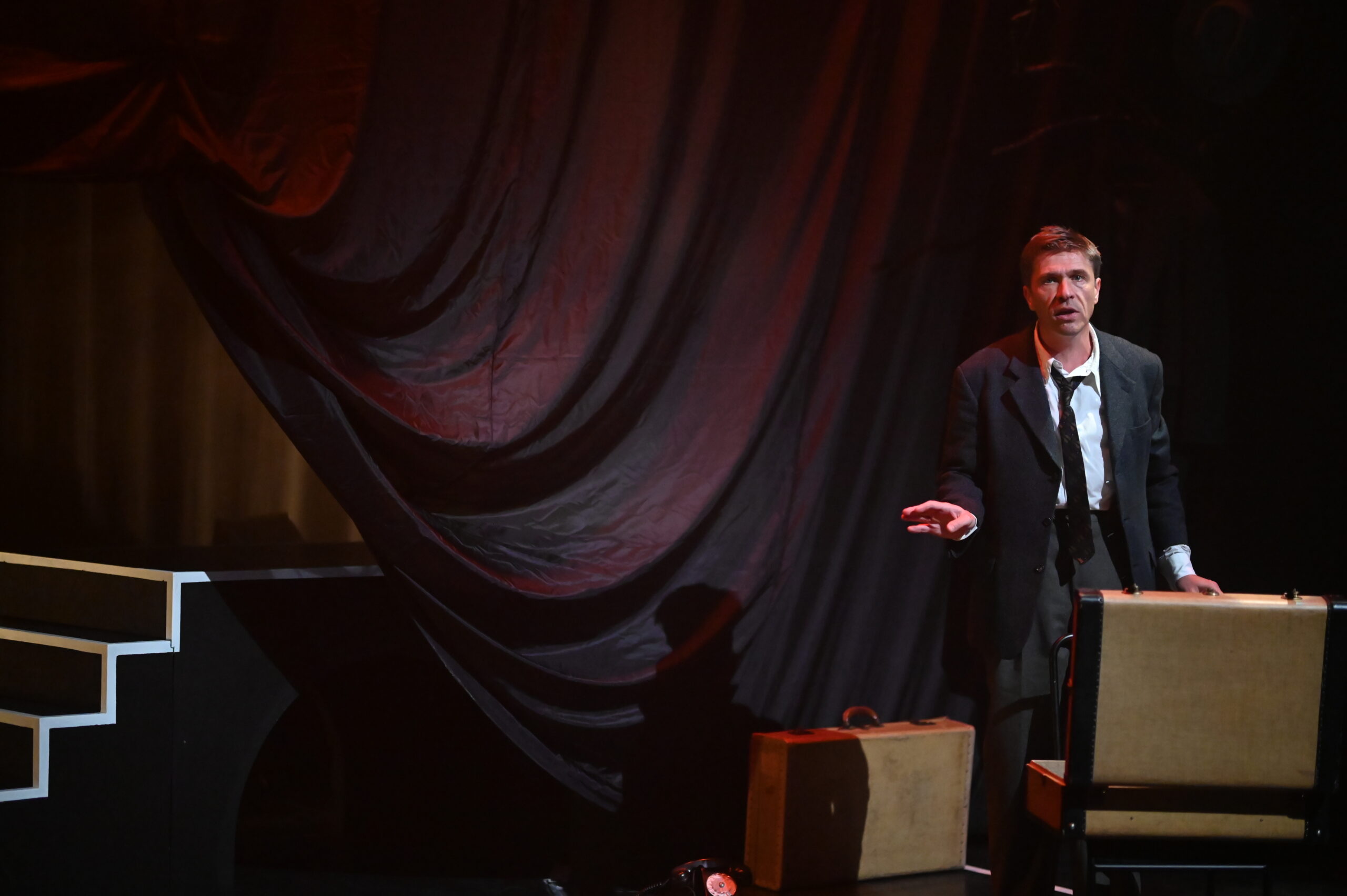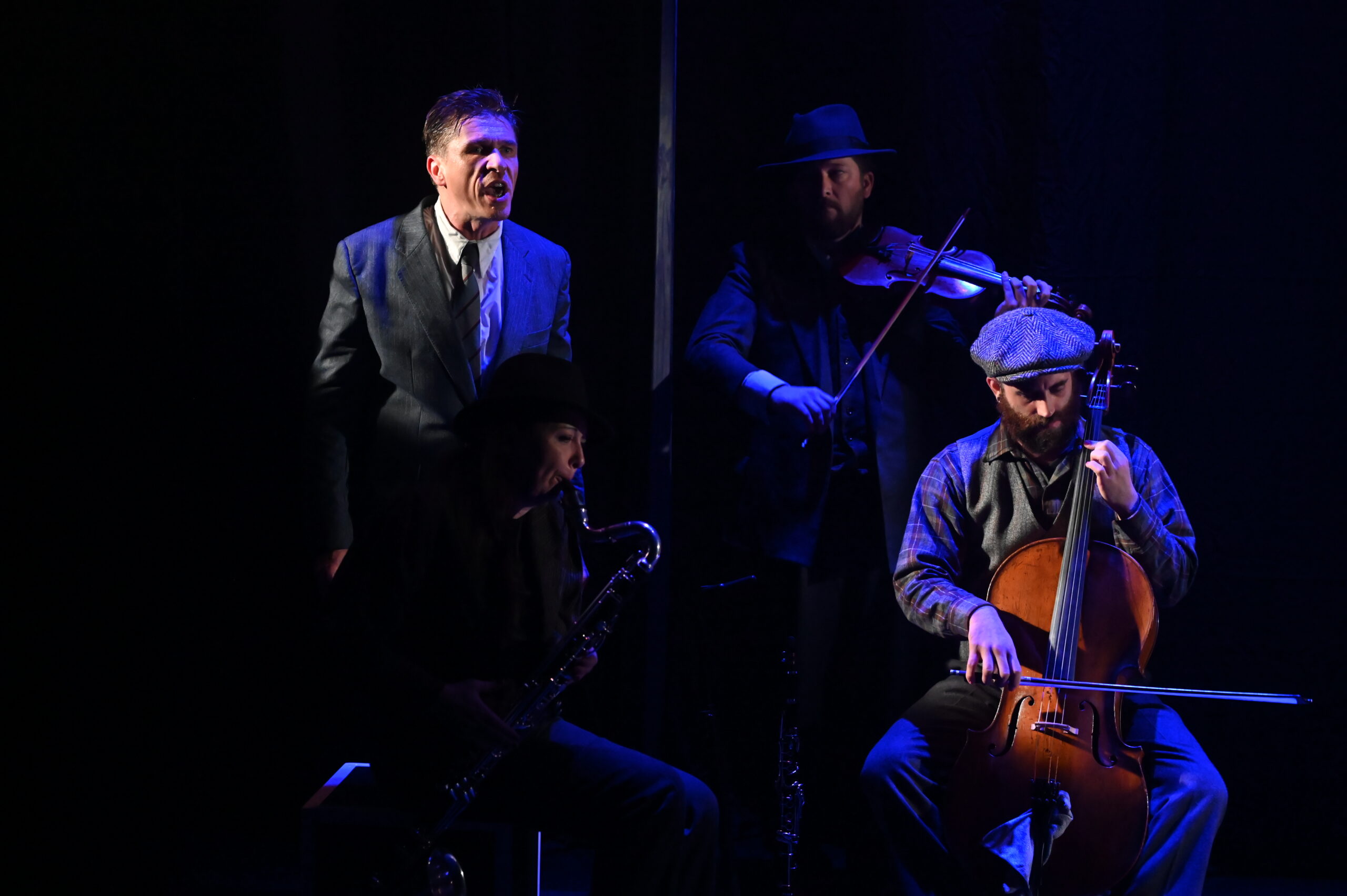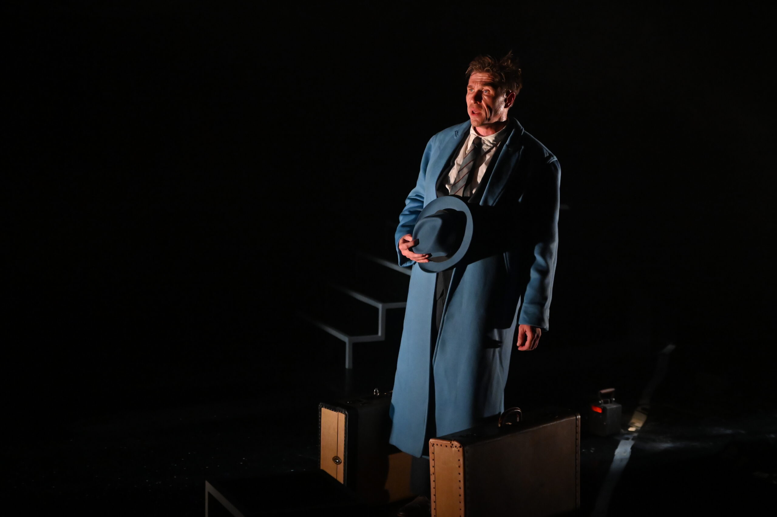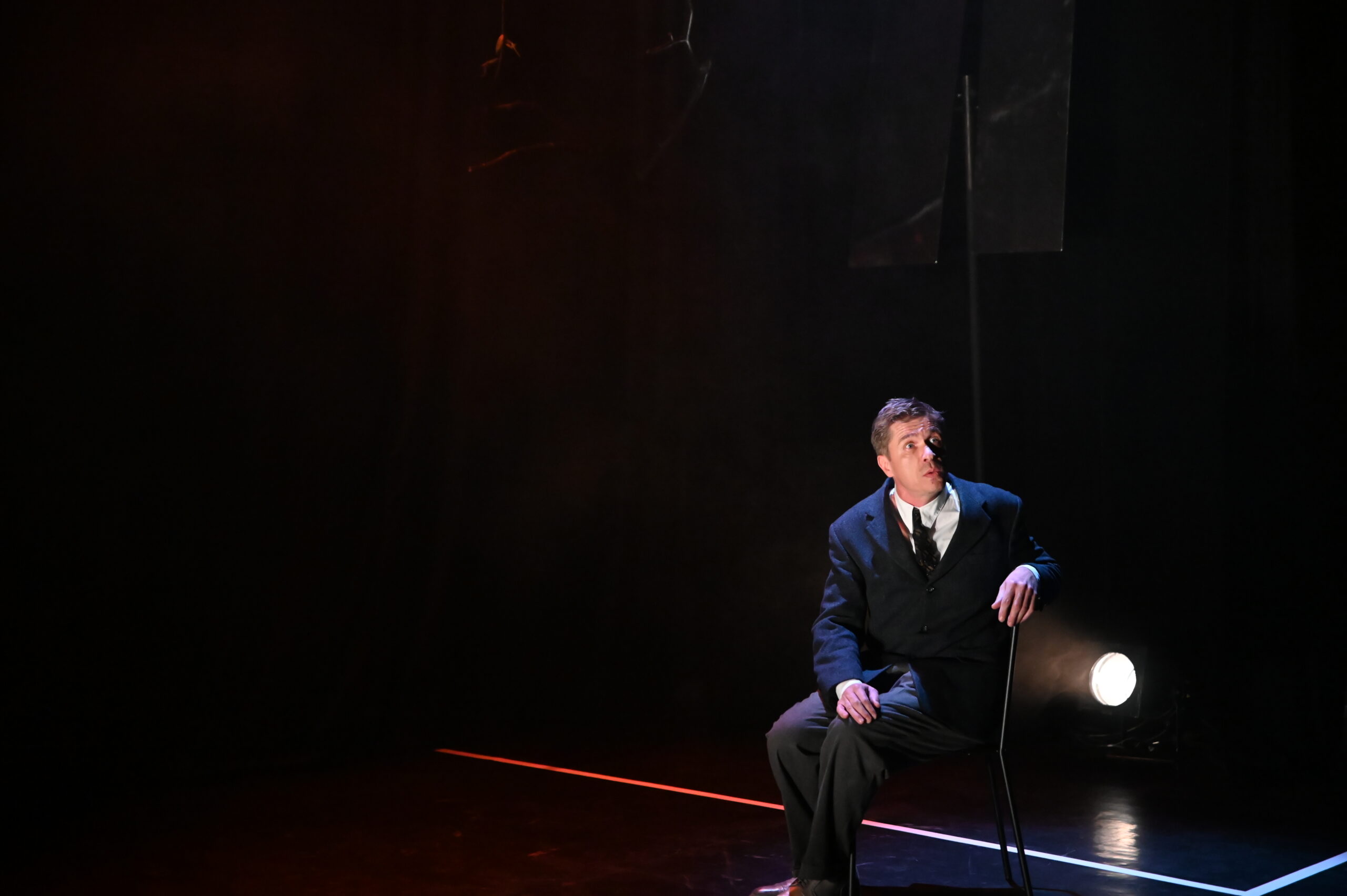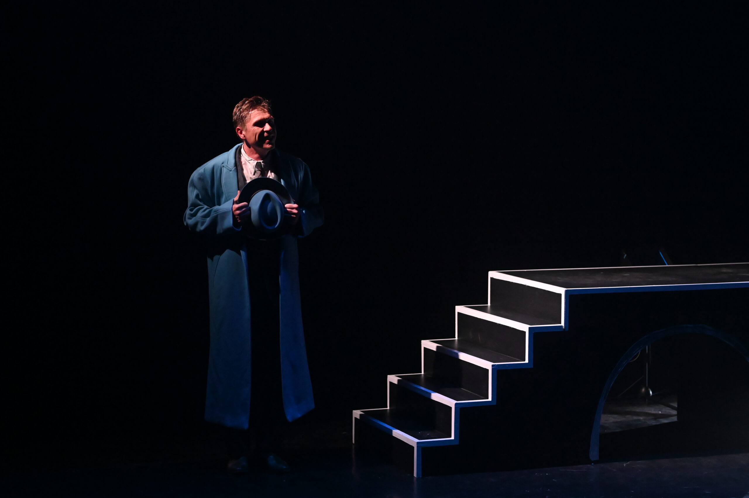 Le comédien alterne lui aussi les rôles, avec aisance et brio, passant de l’un à l’autre sans jamais perdre le spectateur. L’ensemble fonctionne parfaitement et fait son effet. Même le décor s’impose, comme les musiciens sur scène. Volontairement épuré et inspiré du peintre Léon Spilliaert (1881-1946), il marie le noir et les gris, amplifiés par l’éclairage, qui donnent à la pièce une atmosphère sombre et amusante, absurde et réaliste, où la mort peut être belle et libératrice.