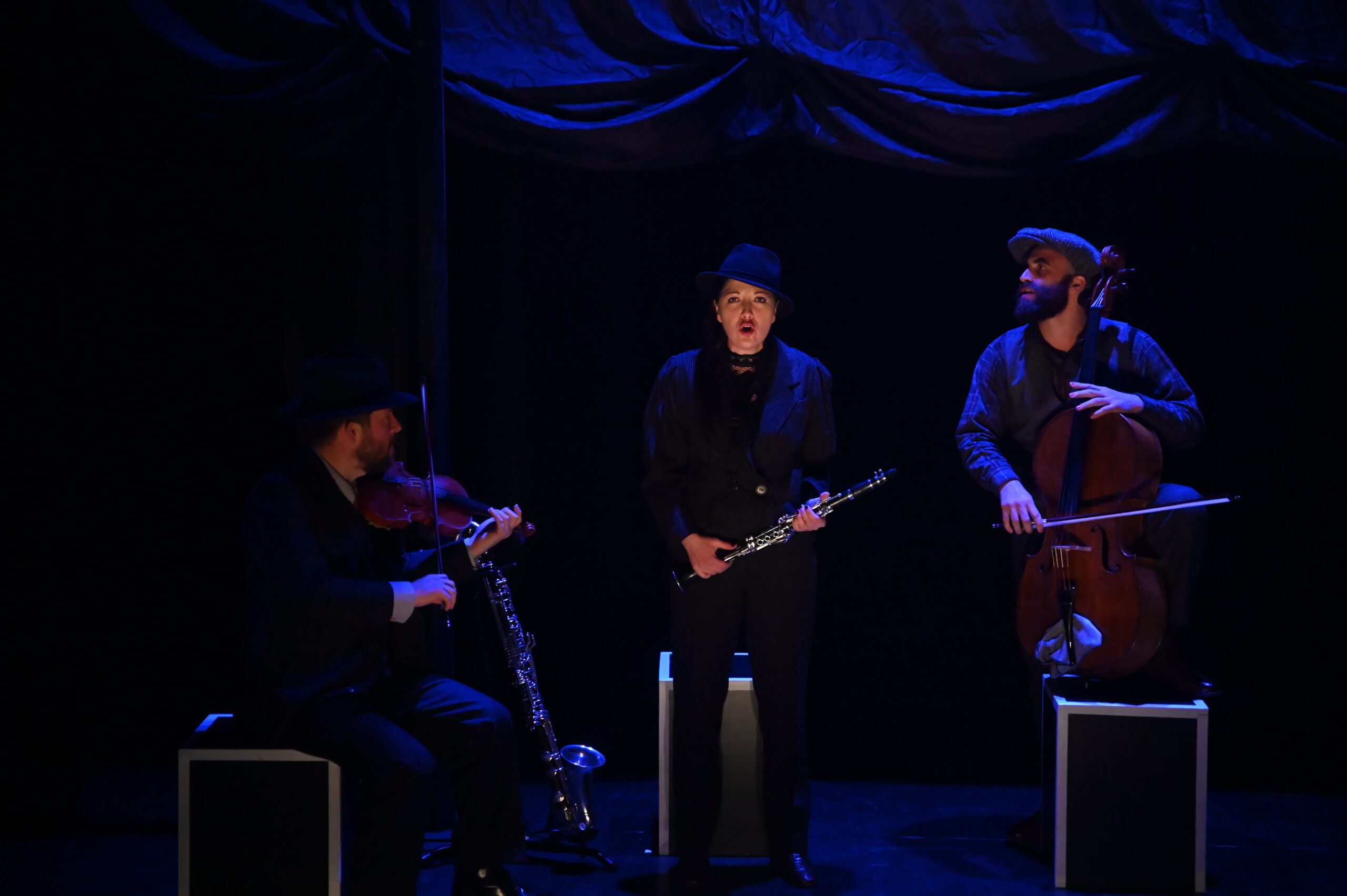 Alternant des partitions écrites et des parties improvisées, les musiciens ne sont pas cantonnés au second plan ; ils font partie du spectacle. Certes, ils jouent de leurs instruments et complètent le spectacle en interprétant les habitants, à la fois heureux de cette venue impromptue et menaçants lorsqu’ils attendent impatiemment le passage à l’acte de M. Golouja.