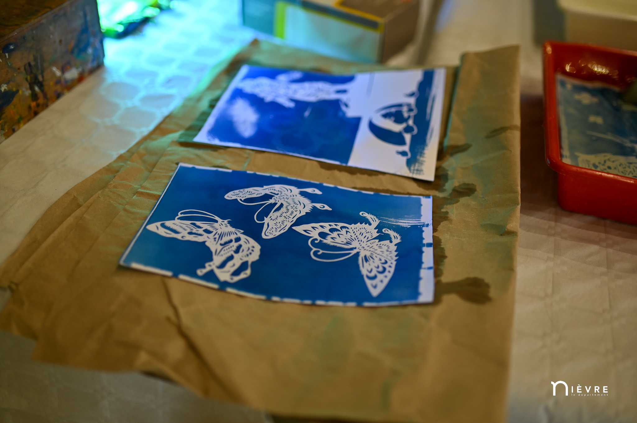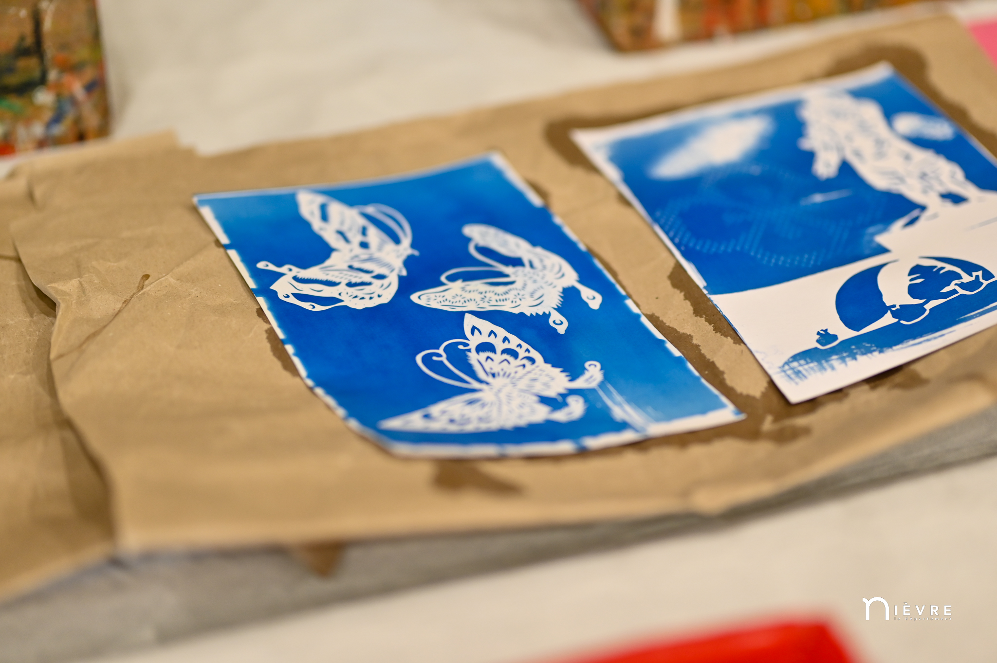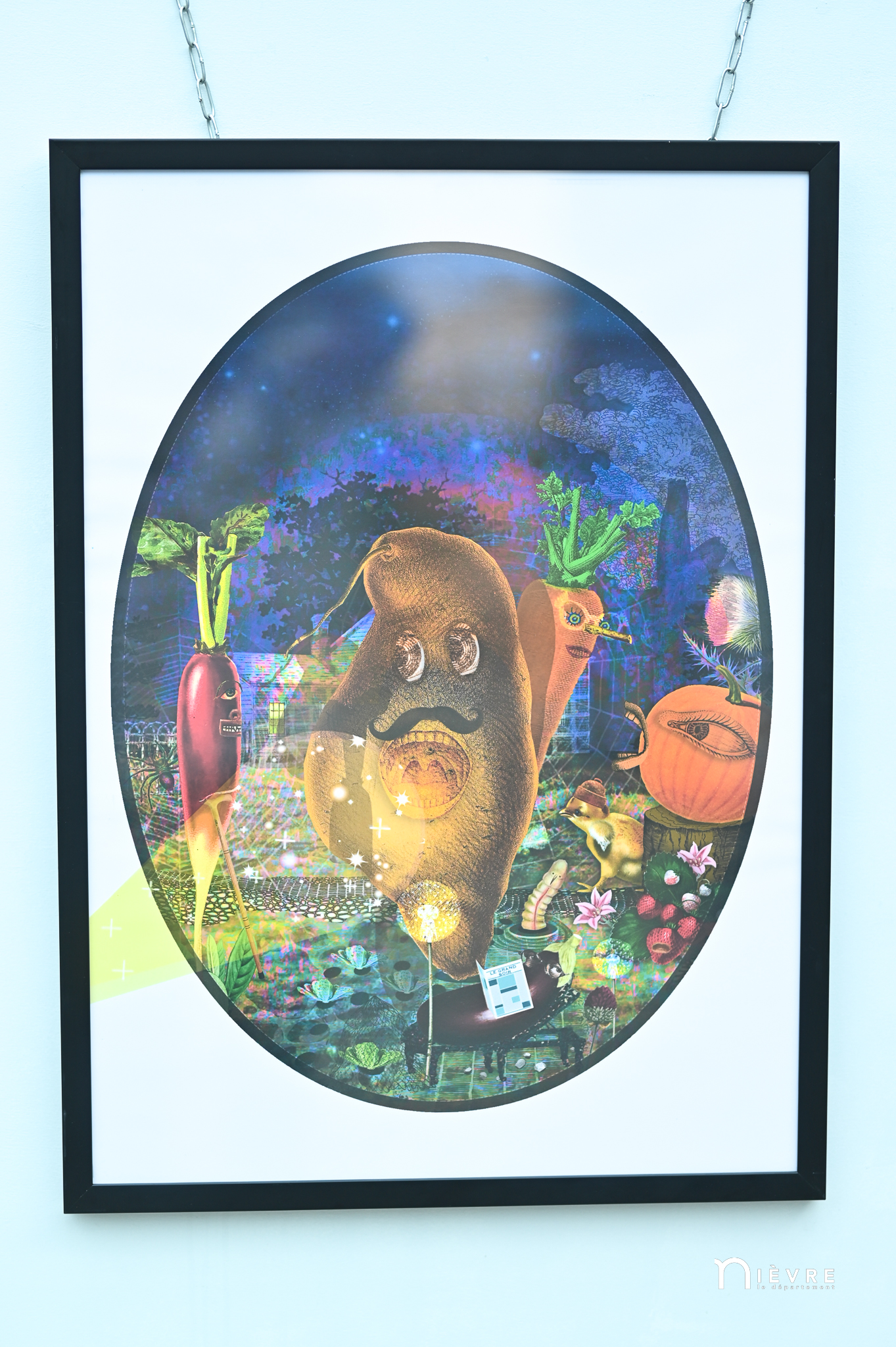 Dans le hall de la mairie de Varennes-Vauzelles, cadre de son exposition, l’espace n’est pas très grand, mais tout de même suffisant pour y découvrir tout le talent et toutes les formes d’expression artistique de cette quadragénaire. Une fois la porte franchie, le regard est inéluctablement attiré par une débauche de couleurs, celles des illustrations réalisées pour Contes et légendes au jardin, recueil de nouvelles lauréates du concours d’écriture organisé par Nevers Agglomération. Le jardin est l’un des sujets d’inspiration pour l’artiste. Elle apprécie ce microcosme où elle expérimente les cultures de plantes exotiques, des semis pour le potager. Elle aime regarder évoluer ce monde qui grouille de vie, passant de l’infiniment petit à l’infiniment grand, et cela se ressent dans ses réalisations. Il faut alors s’approcher pour apprécier les détails et prendre conscience du travail accompli. Les possibilités d’interprétations sont alors déclinables à l’infini.
