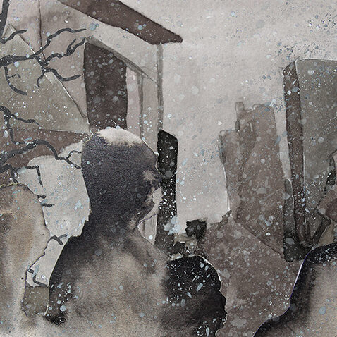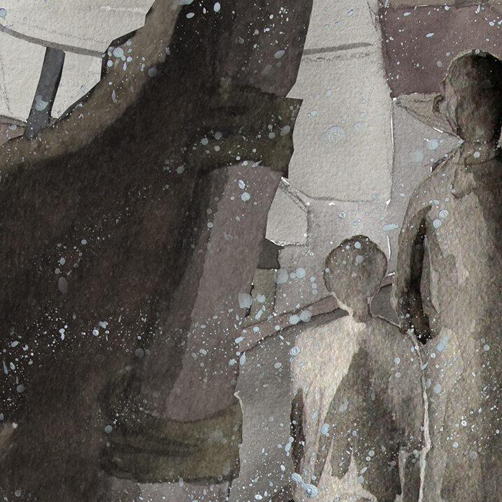 Bénévole à la Cimade, association qui « défend la dignité et les droits des personnes réfugiées et migrantes » (article 1 de ses statuts), Sylvie Roche a été saisie en découvrant l’écrit de Cécile Vallet : « Quand elle m’a lu son texte, j’ai vu à quel point il était juste. Ces femmes sont debout, elles sont dans l’avenir. Alors je lui ai proposé de le mettre en images. » Commence alors un lent travail de construction d’un court métrage de dix minutes, pour associer les mots de l’une aux dessins et aquarelles de l’autre : « On a été dans un dialogue constant pour ajuster le texte et les images. Sylvie a réussi à trouver la couleur de l’histoire, ses images sont très puissantes, et elles ont fait bouger le texte. »