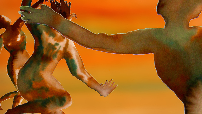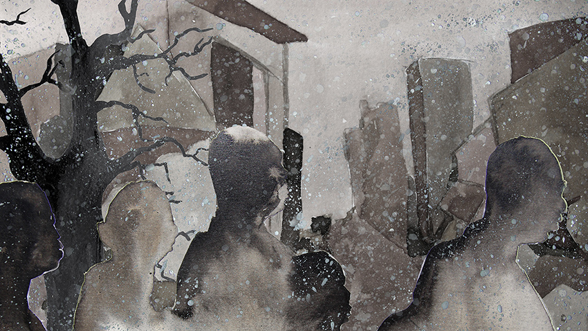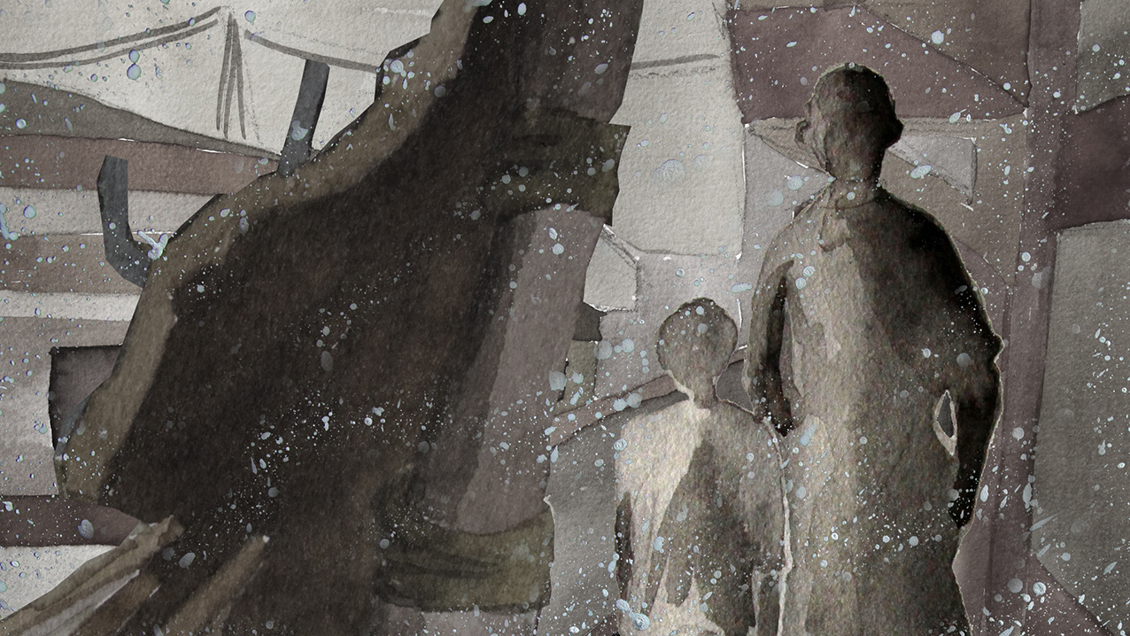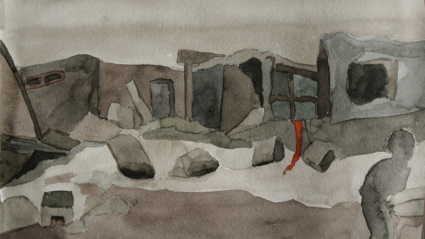 Bénévole à la Cimade, association qui « défend la dignité et les droits des personnes réfugiées et migrantes » (article 1 de ses statuts), Sylvie Roche a été saisie en découvrant l’écrit de Cécile Vallet : « Quand elle m’a lu son texte, j’ai vu à quel point il était juste. Ces femmes sont debout, elles sont dans l’avenir. Alors je lui ai proposé de le mettre en images. » Commence alors un lent travail de construction d’un court métrage de dix minutes, pour associer les mots de l’une aux dessins et aquarelles de l’autre : « On a été dans un dialogue constant pour ajuster le texte et les images. Sylvie a réussi à trouver la couleur de l’histoire, ses images sont très puissantes, et elles ont fait bouger le texte. »