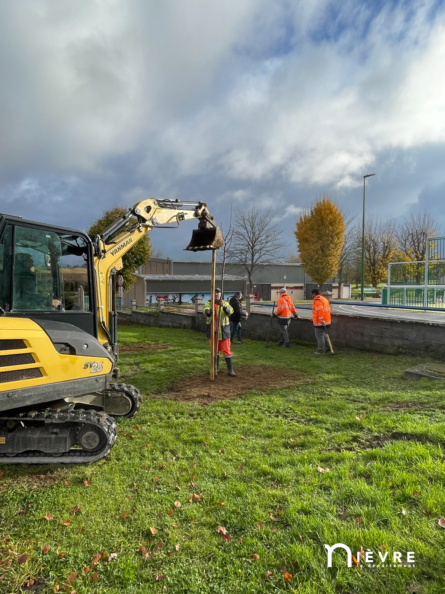 Fabien Bazin, président du Conseil départemental, était présent, mardi 29 novembre à Corbigny, pour assister à l‘une des toutes premières plantations de cette 4e édition, aux côtés de Maryse Peltier, maire de la commune. Les jeunes et vigoureux plants de mûrier platane offerts par le Département remplacent sur plusieurs avenues corbigeoises de vieux sujets abattus en raison de leur maladie ; d’autres apporteront de l’ombrage au city stade construit à proximité du champ de foire. Ce reverdissement de la cité est apprécié des habitants, tant pour des raisons écologiques qu’esthétiques.