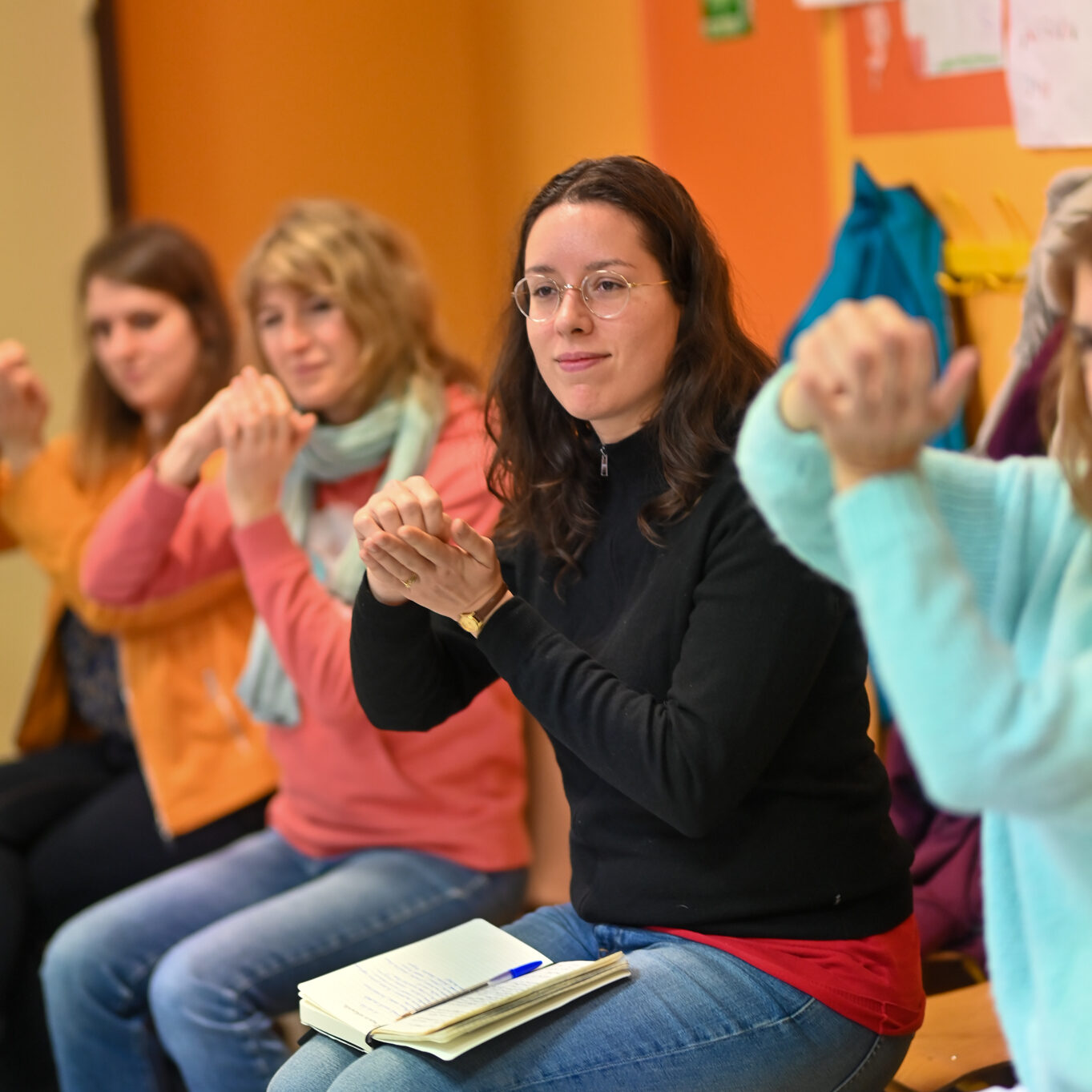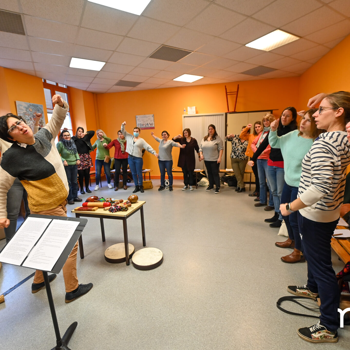 La lecture qui se répète cinq, dix ou vingt fois fait elle aussi partie du jeu : « La relecture entre dans l’histoire, la mémoire fait son travail, cela facilite les apprentissages, comme celui des récitations. Lire le même livre, cela rassure les enfants, c’est associé à un bon moment. » Le rituel est le même avec les chansons pour enfants, dont Arielle Dervieu (professeure d’éveil musical et membre de RESO Nièvre) a détaillé les vertus en matière de construction cognitive et sociale, de mémorisation et de motricité, dans un atelier joyeusement participatif.