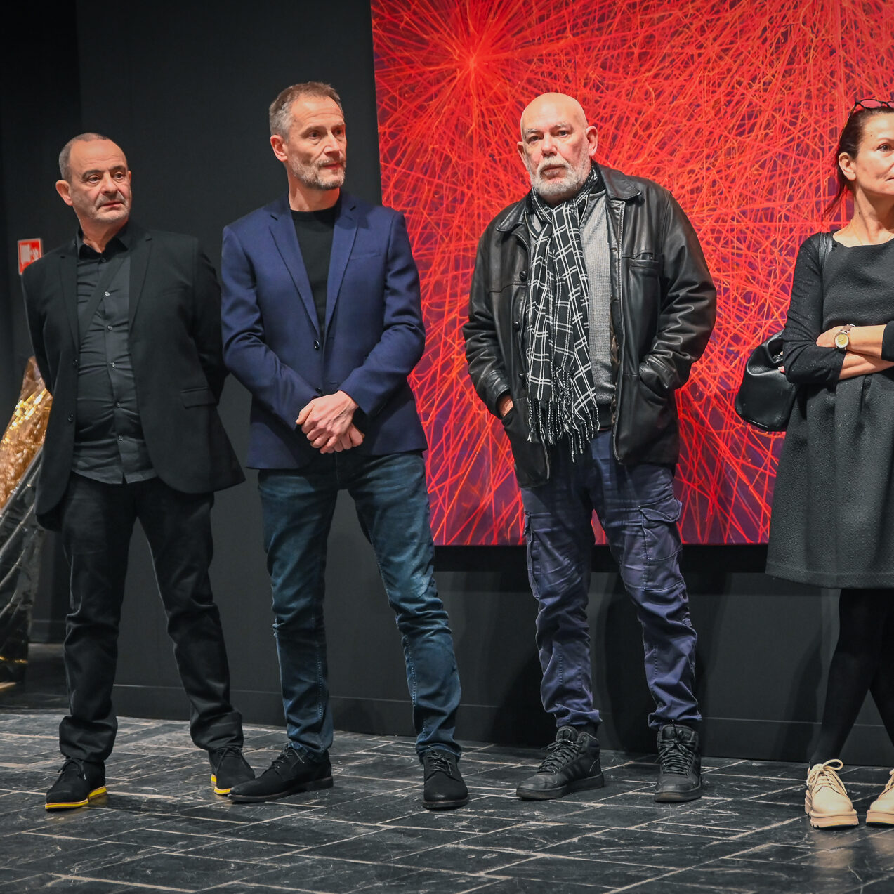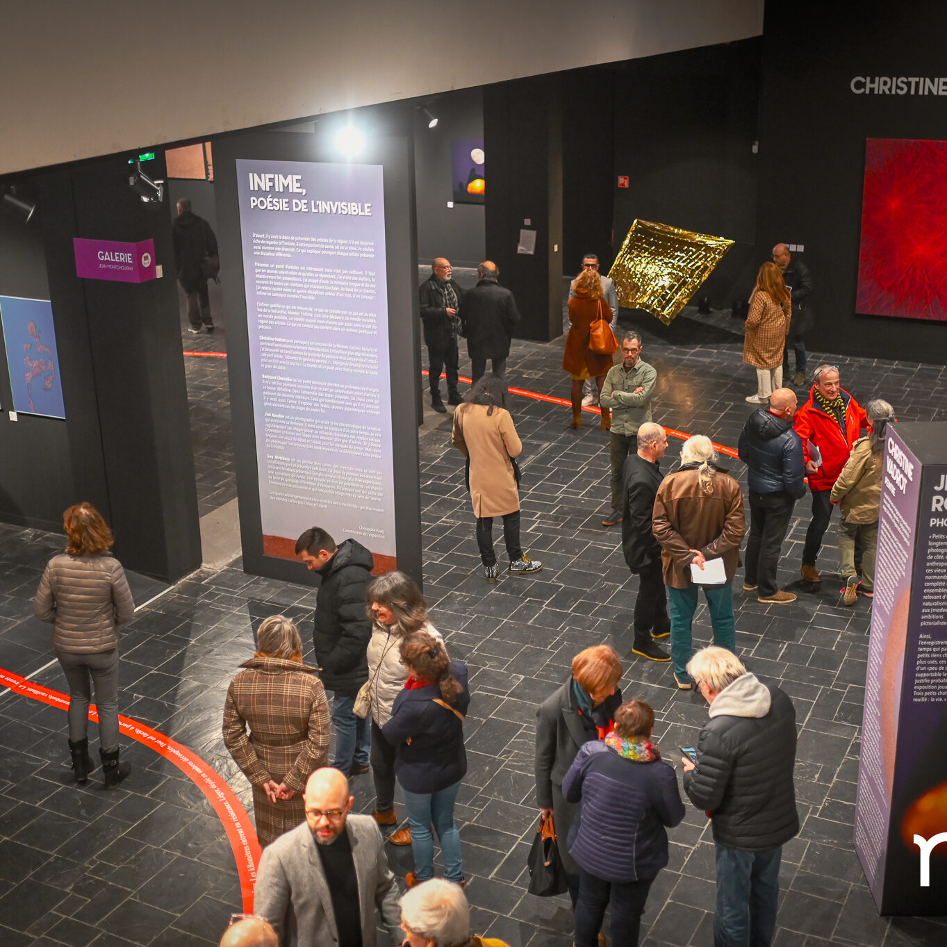 Son sourire est le masque frémissant de sa tension. En ce mardi soir de vernissage de l’exposition « Infime, poésie de l’invisible », Bertrand Chevalier regarde les gens regarder. Se pencher sur ses poèmes, déroulés au sol en longues volutes de phrases blanches sur fond rouge, ou imprimés sur les poteaux, serpentant autour des œuvres de Christine Vadrot, Guy Matchoro et Jim Roudier. « C’est une première pour moi », confie l’auteur. « J’ai beaucoup de pudeur. Ces textes, ce sont mes bébés. J’ai de l’appréhension à les montrer. Mais je suis ravi du résultat, de la mise en scène et du mariage avec les autres œuvres. J’attends un retour des spectateurs. Cette exposition est une occasion unique, une magnifique vitrine. »
