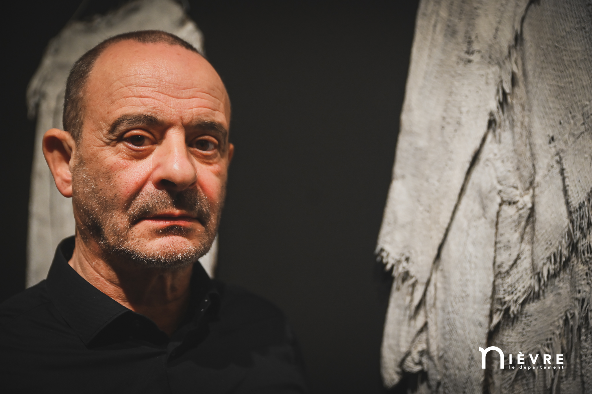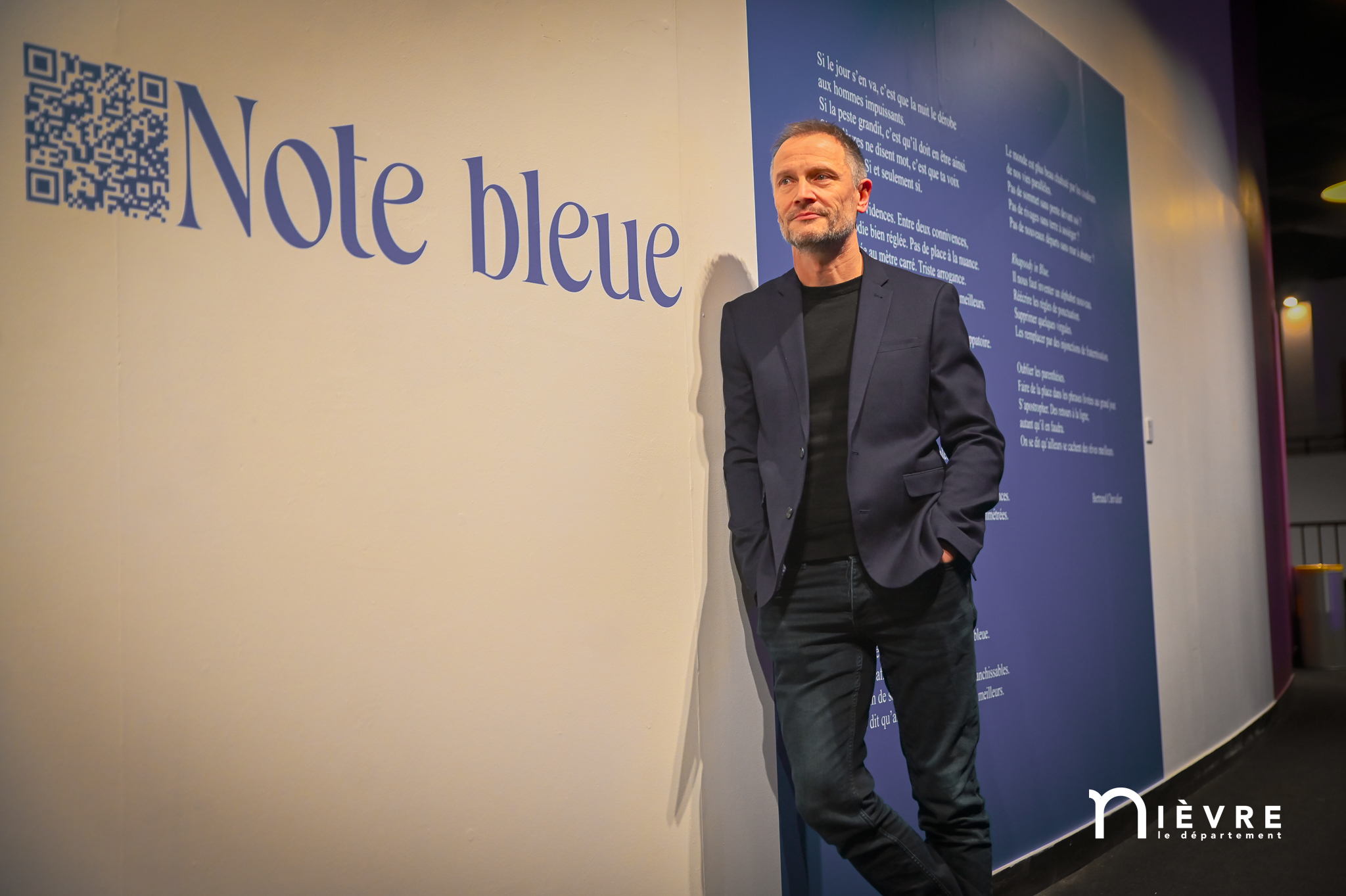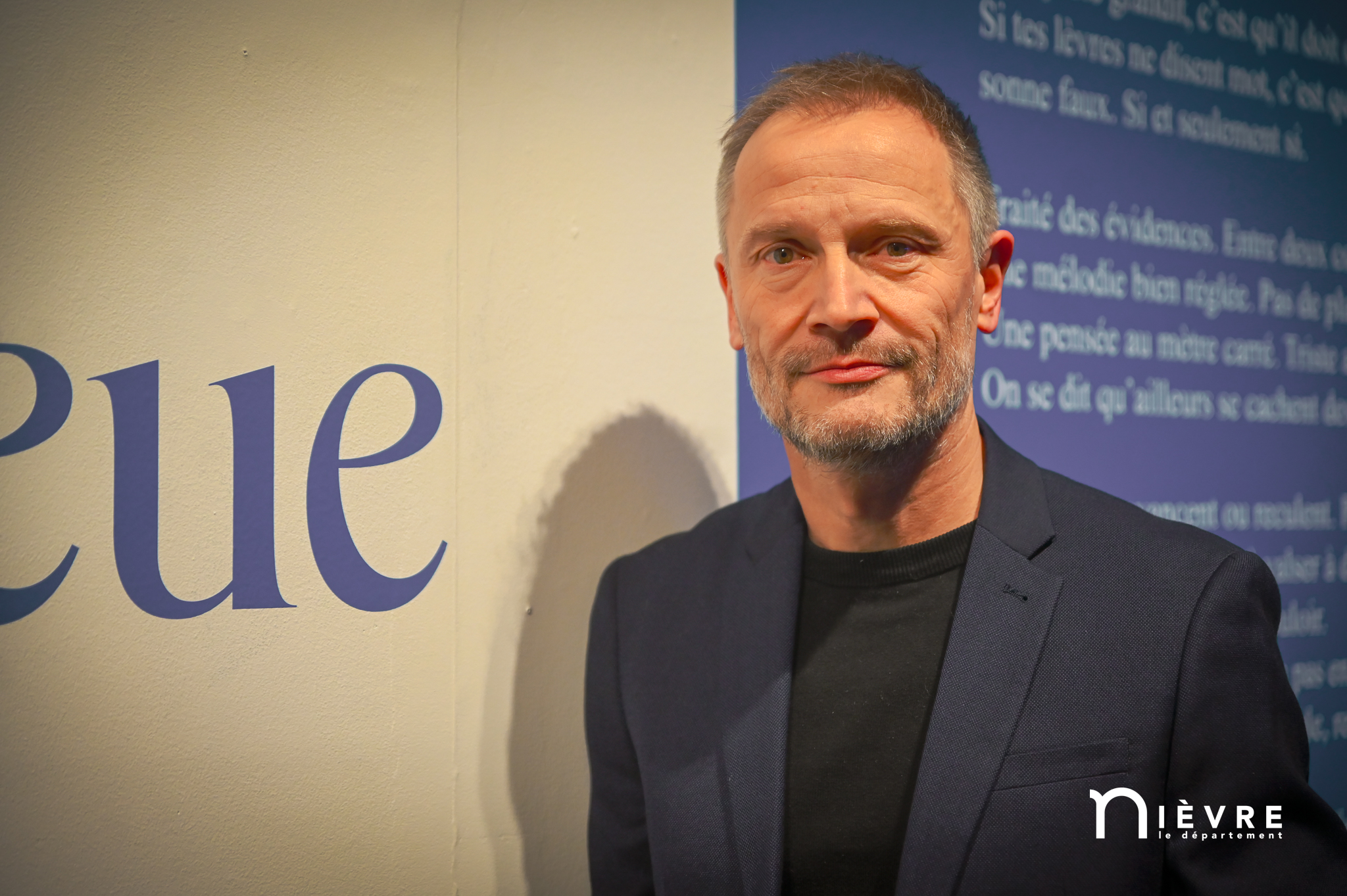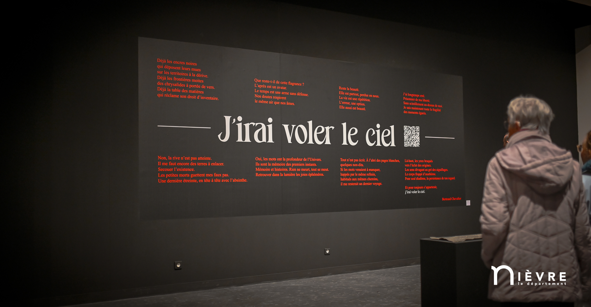 Son sourire est le masque frémissant de sa tension. En ce mardi soir de vernissage de l’exposition « Infime, poésie de l’invisible », Bertrand Chevalier regarde les gens regarder. Se pencher sur ses poèmes, déroulés au sol en longues volutes de phrases blanches sur fond rouge, ou imprimés sur les poteaux, serpentant autour des œuvres de Christine Vadrot, Guy Matchoro et Jim Roudier. « C’est une première pour moi », confie l’auteur. « J’ai beaucoup de pudeur. Ces textes, ce sont mes bébés. J’ai de l’appréhension à les montrer. Mais je suis ravi du résultat, de la mise en scène et du mariage avec les autres œuvres. J’attends un retour des spectateurs. Cette exposition est une occasion unique, une magnifique vitrine. »