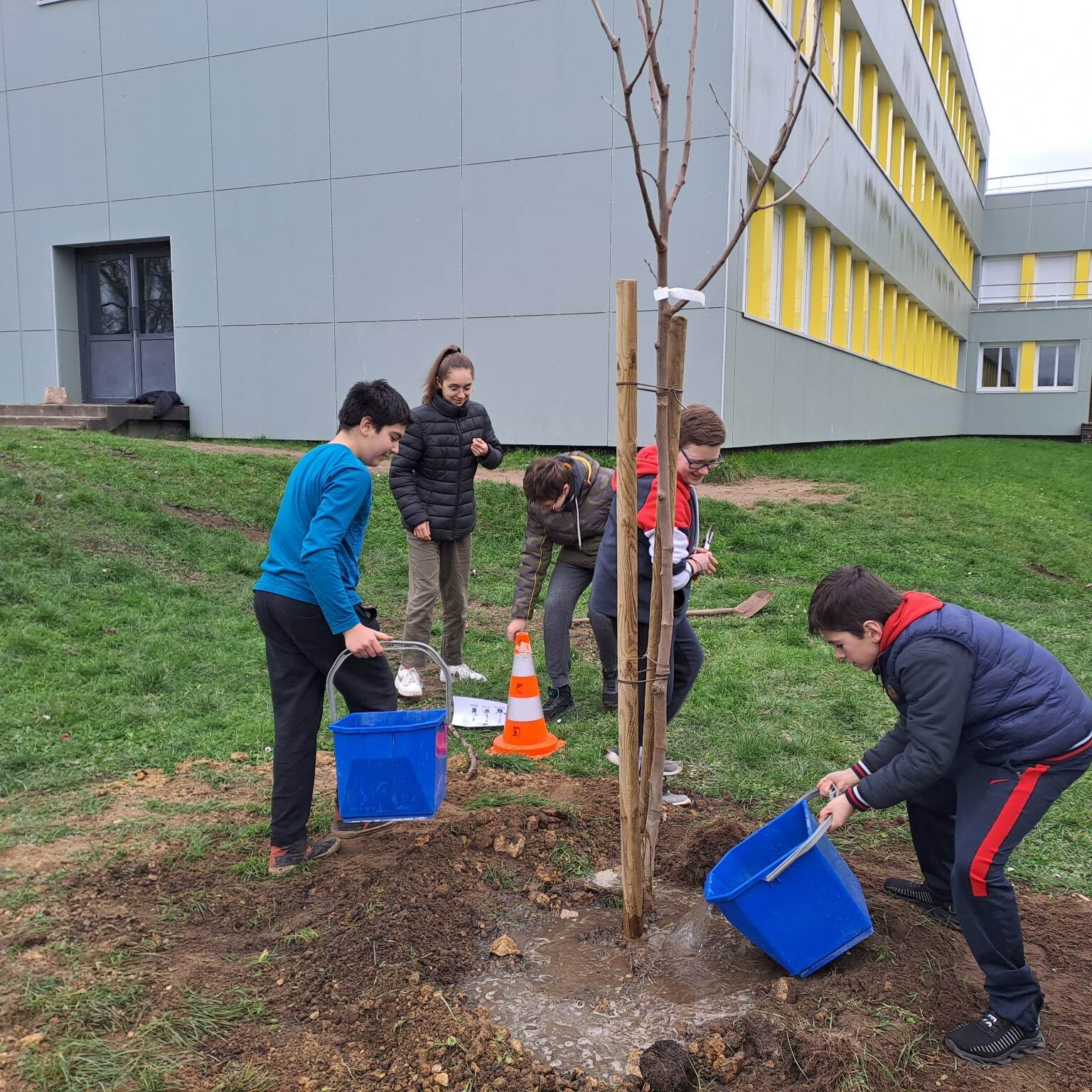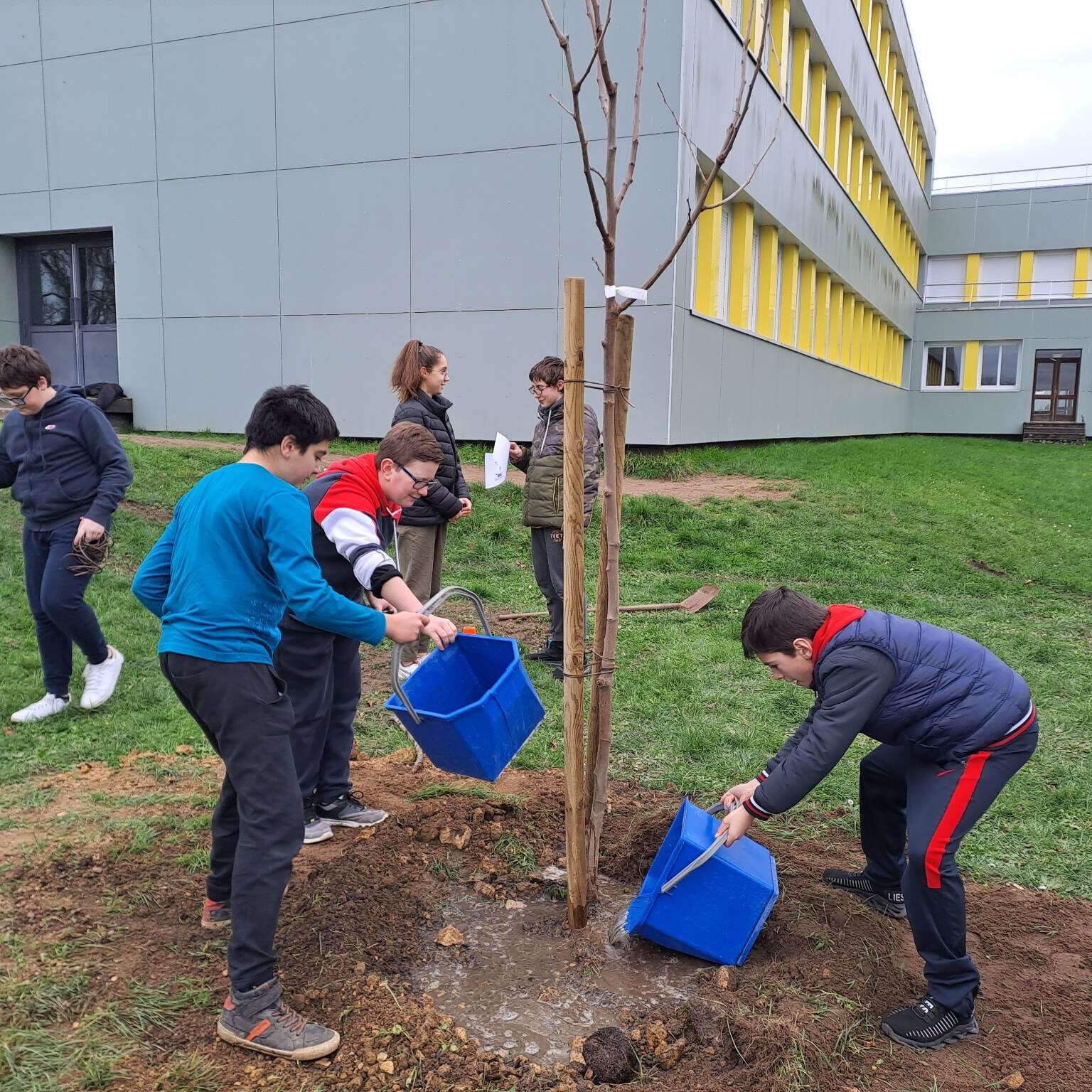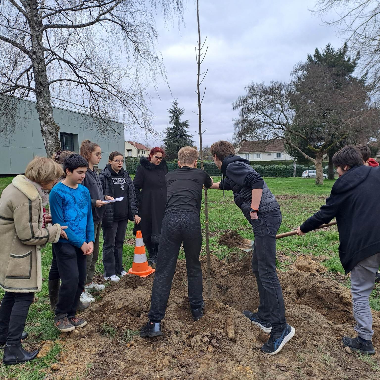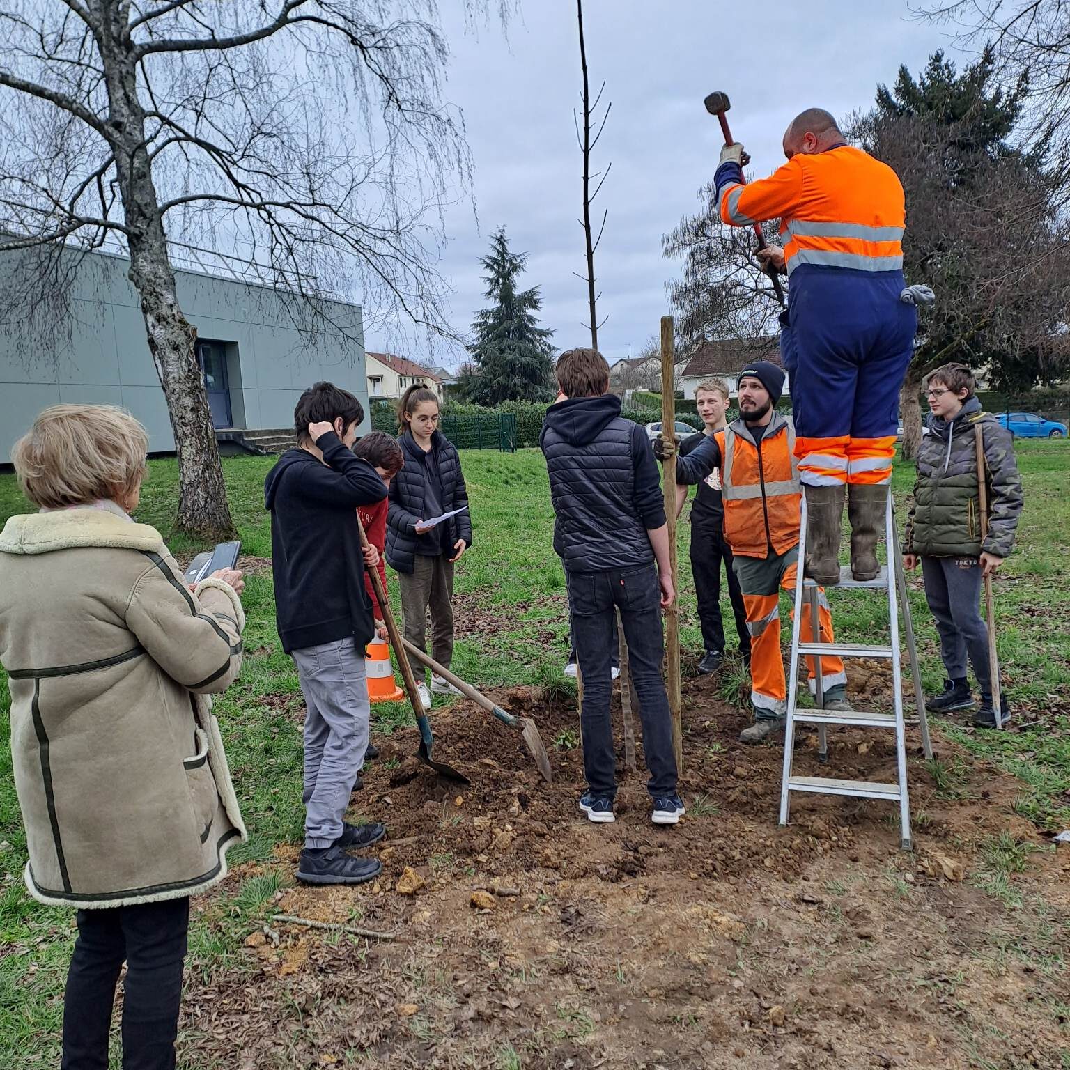 Parmi les nombreuses actions (implantation d’une box cadeaux en partenariat avec le Prado, collecte alimentaire avec l’Épicerie Solidaire, collecte de jouets avec les Restaurants du cœur), initiées par Bélinda Duprez, Assistante d’Éducation, celle de planter des arbres pour préserver l’environnement à tout de suite séduit une dizaine d’élèves qui se sont investis dans la démarche. Le service adaptation au changement climatique du Département a, quant à lui, assuré l’articulation et la coordination entre différentes étapes nécessaires au bon déroulement de ces plantations.