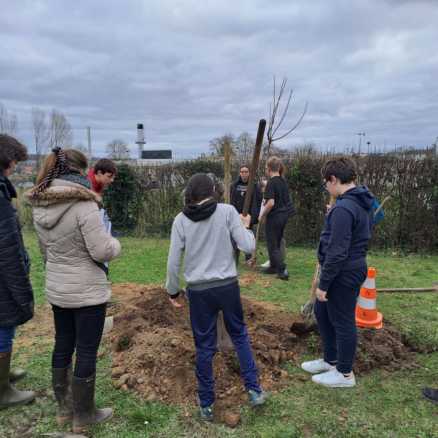 Hier, une dizaine d’élèves du collège Adam Billaut à Nevers ont participé à la plantation de nouvelles essences.