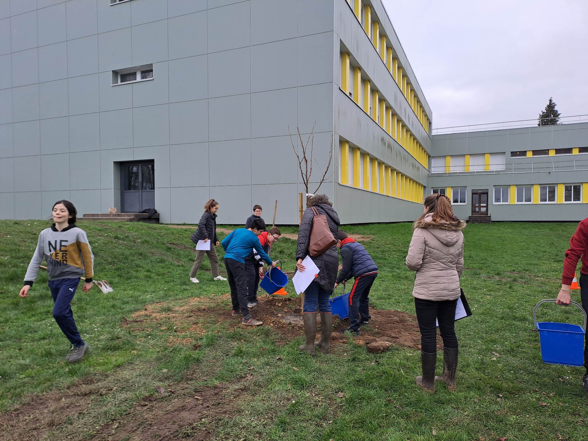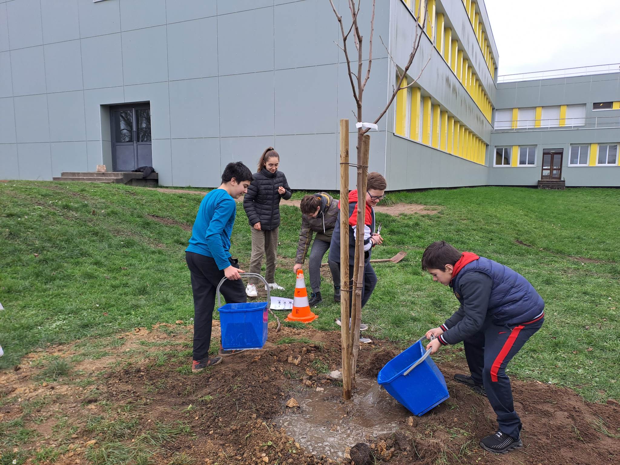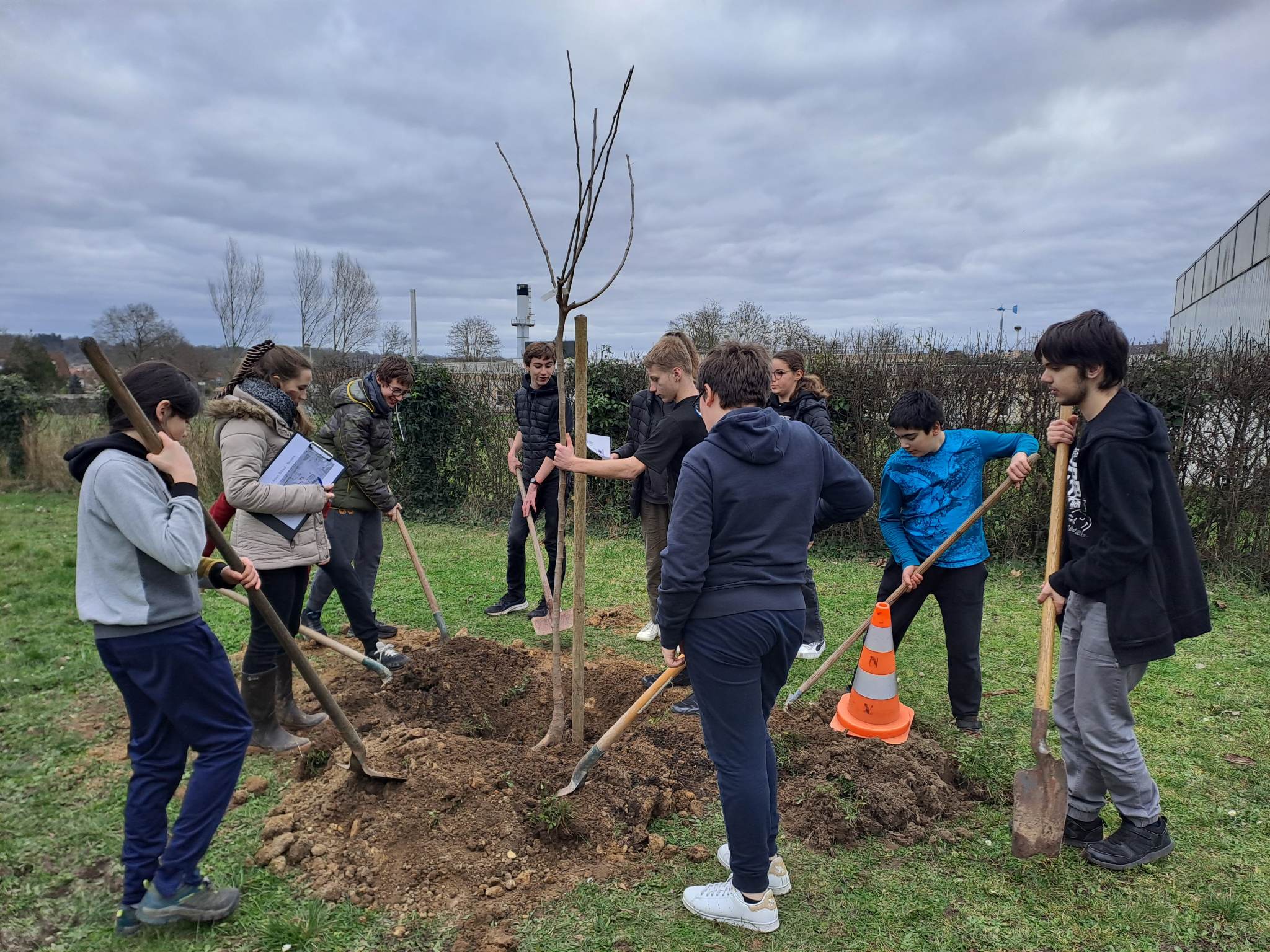 Parmi les nombreuses actions (implantation d’une box cadeaux en partenariat avec le Prado, collecte alimentaire avec l’Épicerie Solidaire, collecte de jouets avec les Restaurants du cœur), initiées par Bélinda Duprez, Assistante d’Éducation, celle de planter des arbres pour préserver l’environnement à tout de suite séduit une dizaine d’élèves qui se sont investis dans la démarche. Le service adaptation au changement climatique du Département a, quant à lui, assuré l’articulation et la coordination entre différentes étapes nécessaires au bon déroulement de ces plantations.