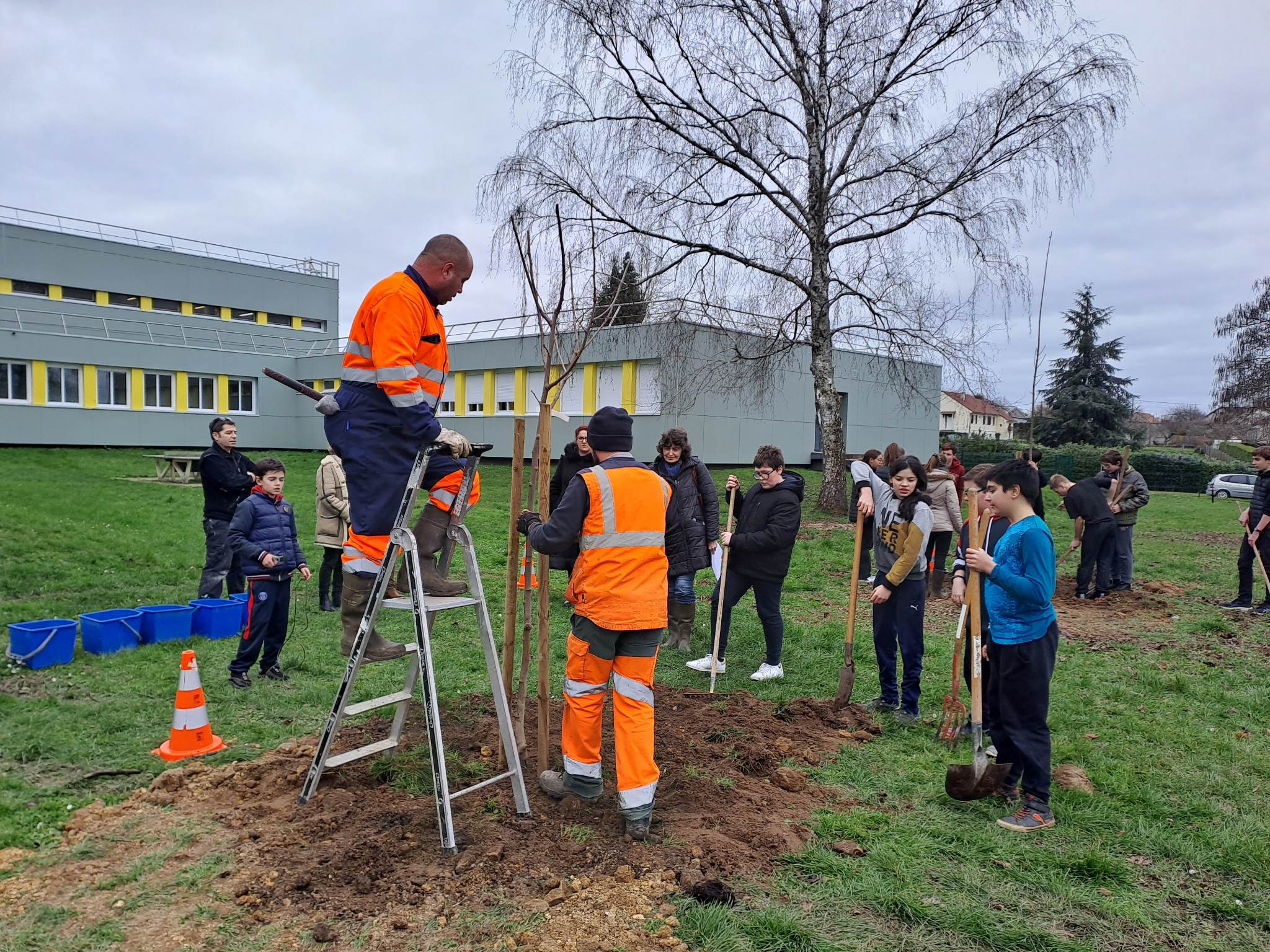 Hier, une dizaine d’élèves du collège Adam Billaut à Nevers ont participé à la plantation de nouvelles essences.