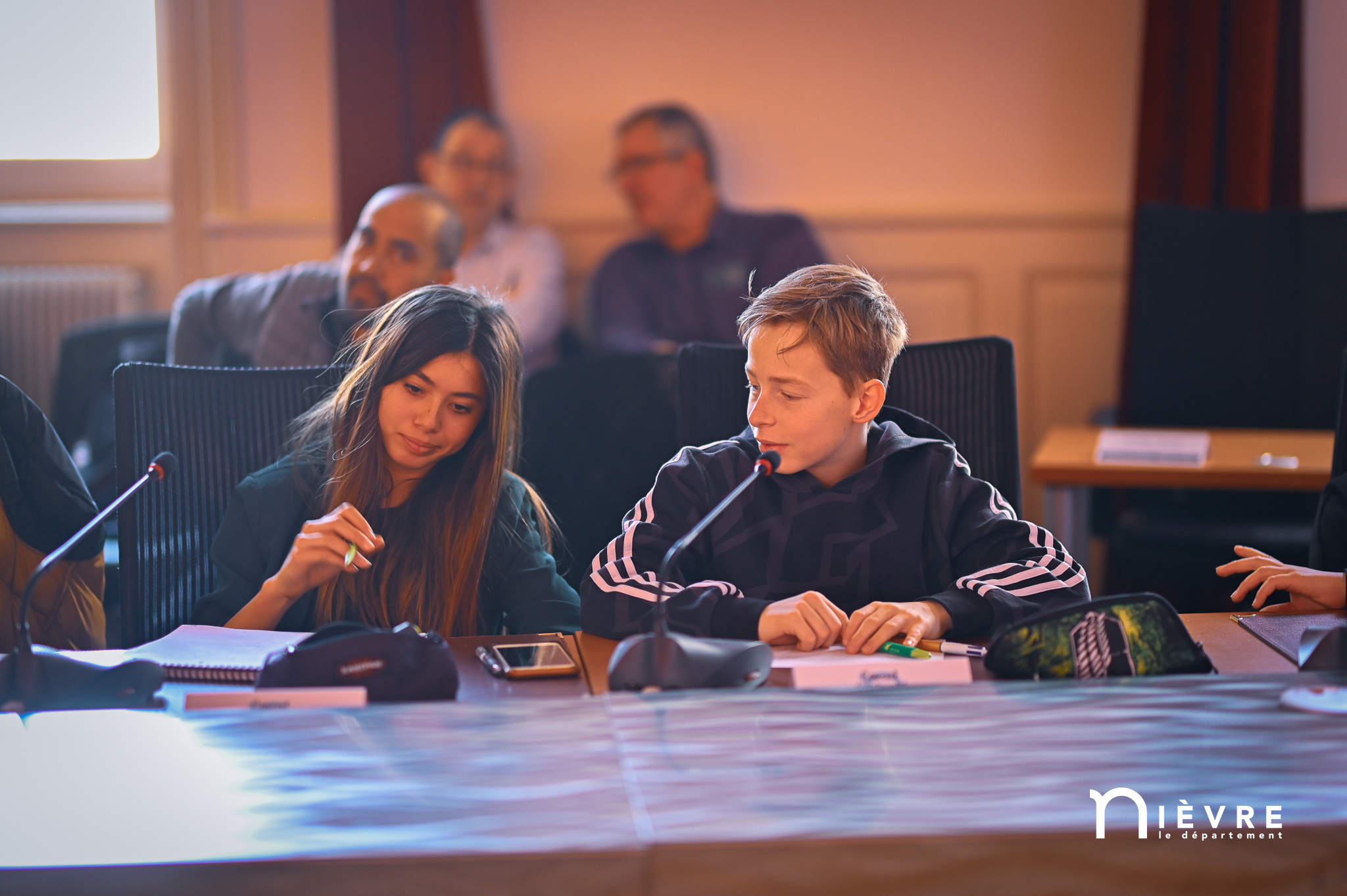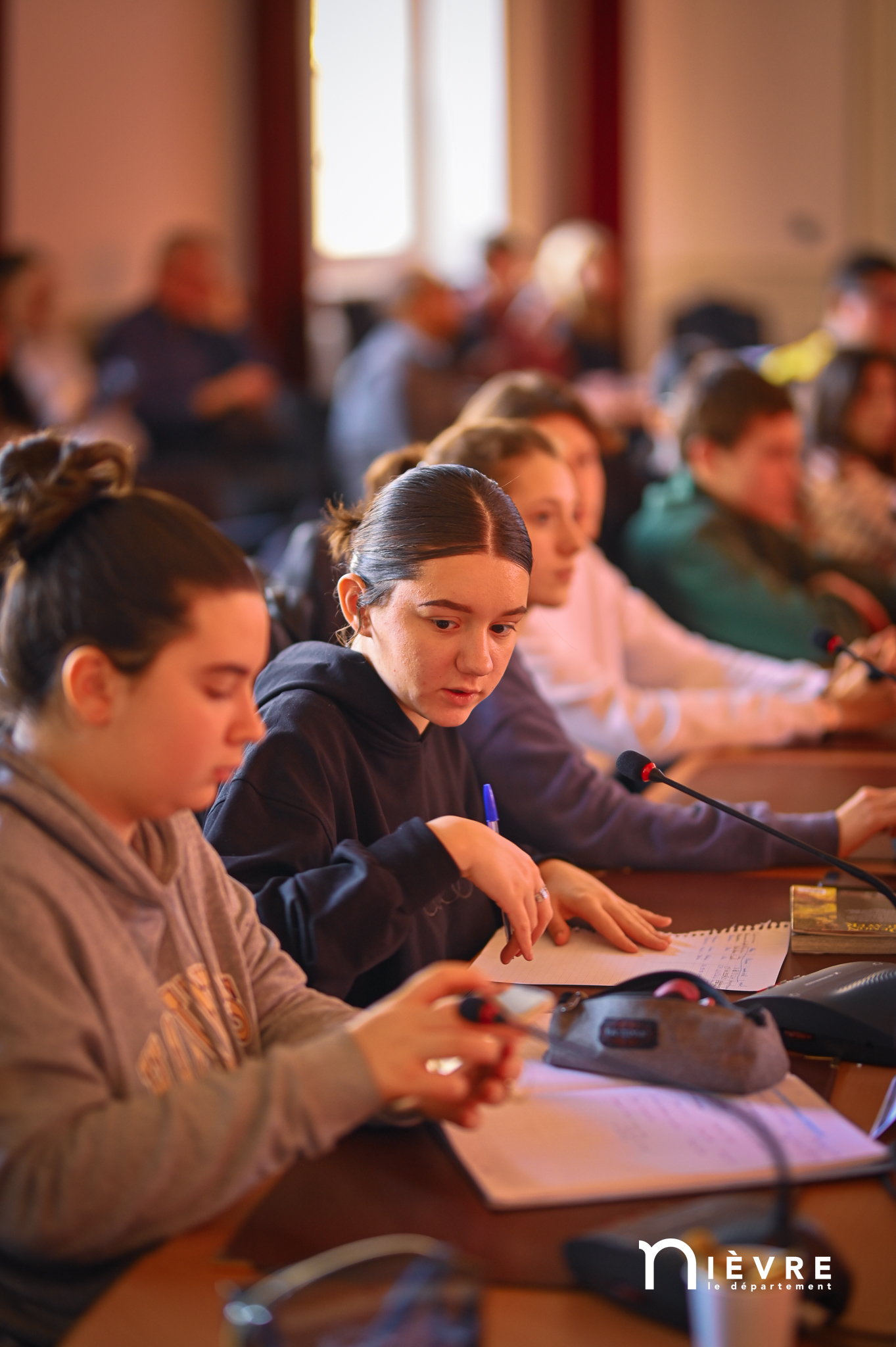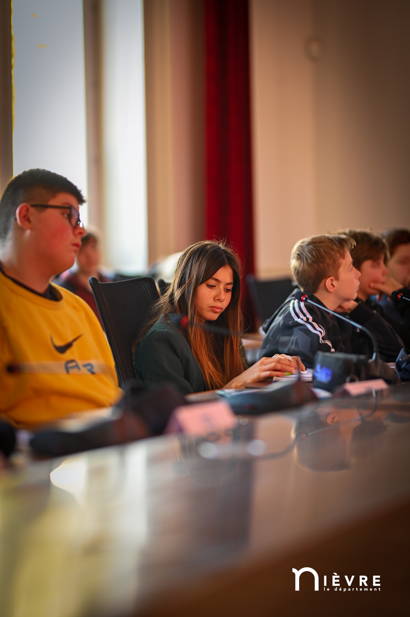 Ils se lancent tour à tour, pris de court ou déjà mûrs dans leur réflexion sur les études, le travail, le bonheur, jusqu’au futur de la Nièvre. Réunis en session plénière, mardi 28 février dans la salle François-Mitterrand de l’Hôtel du Département, les collégiens élus du Conseil départemental jeune et citoyen (CDJC) se sont prêtés sans regimber à l’exercice délicat du diagnostic territorial et de la mise au jour de leurs projets de vie.