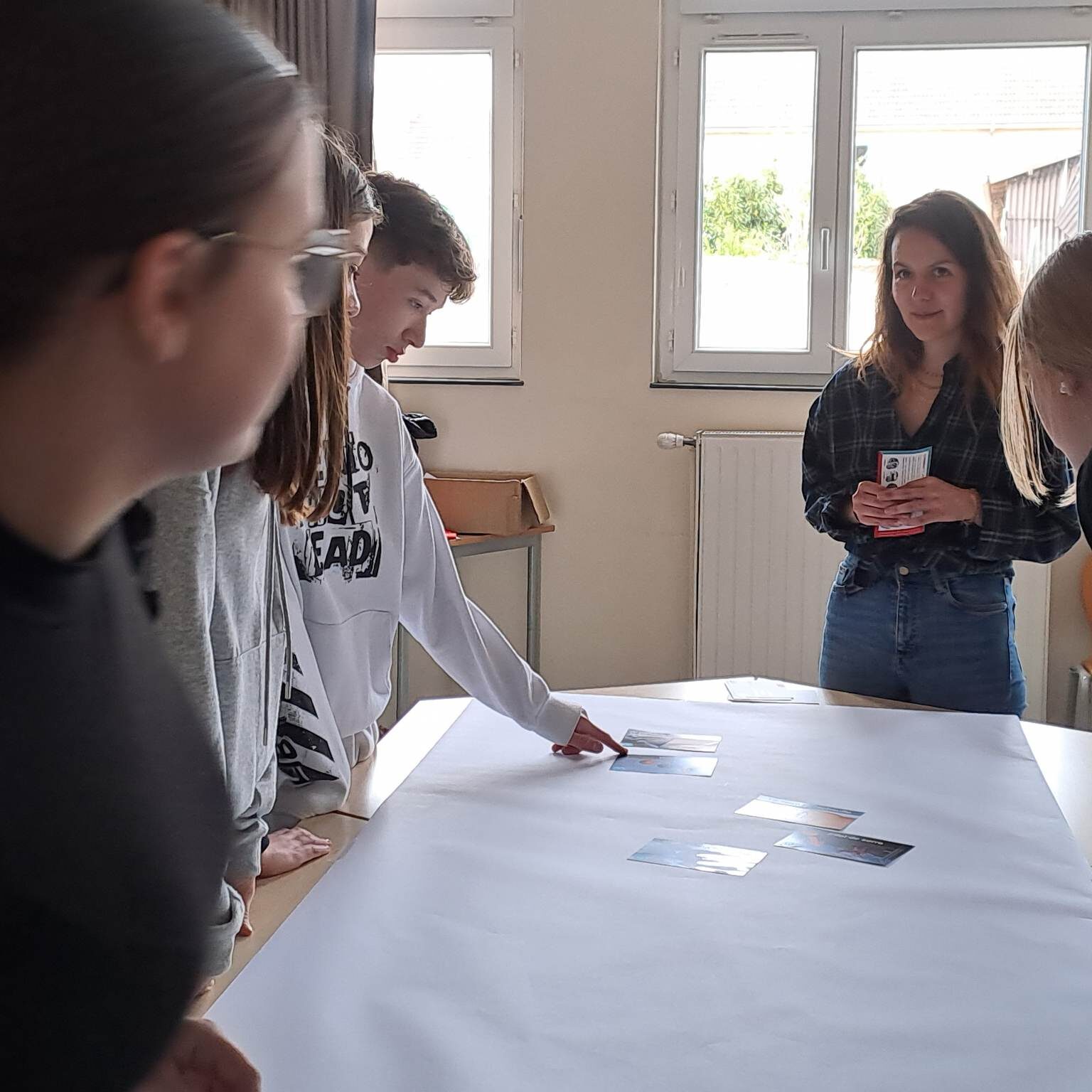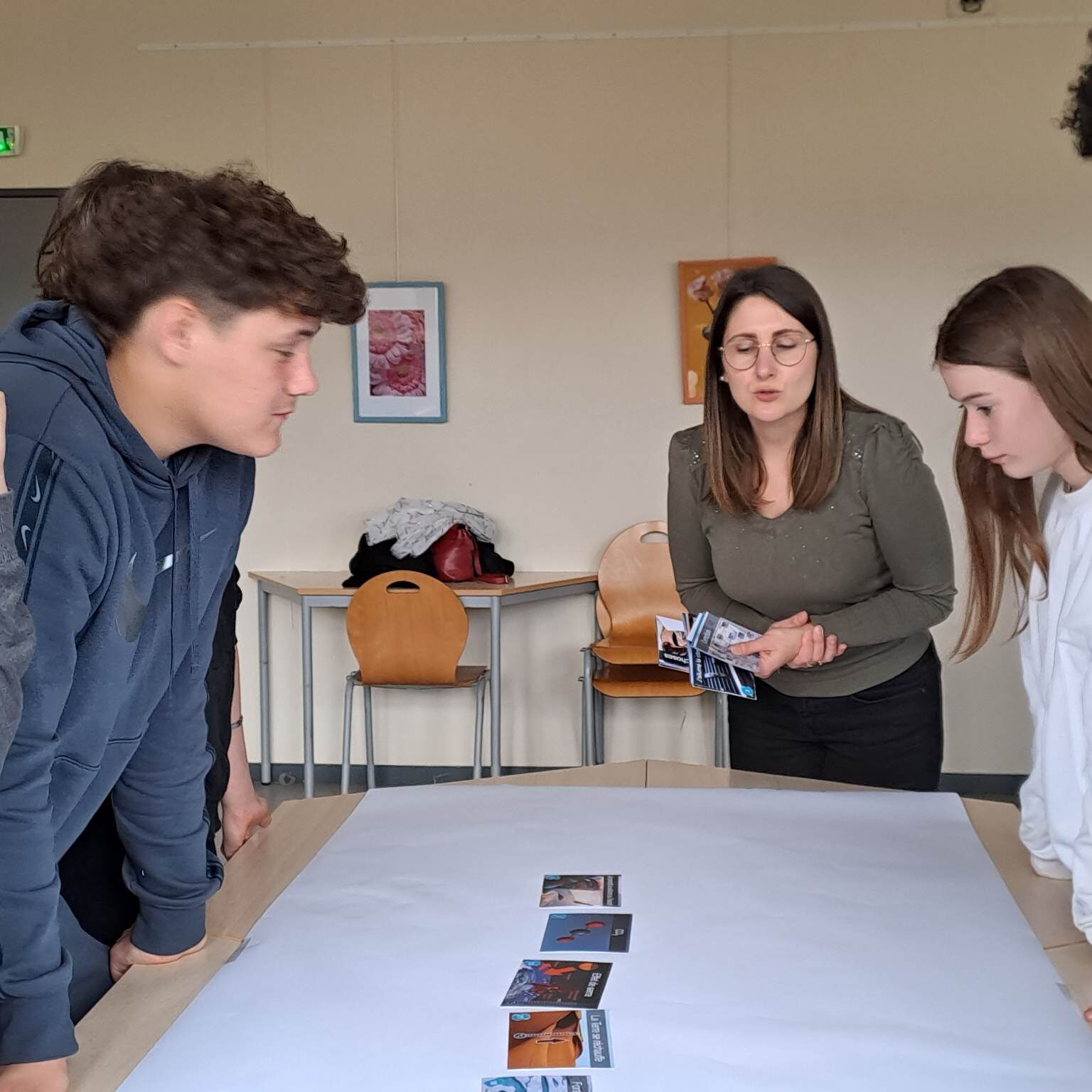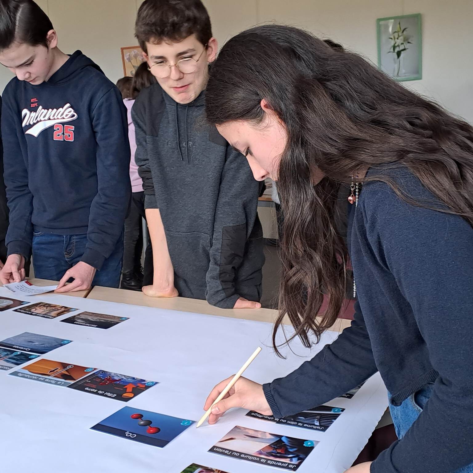 Avec le soutien de trois « fresqueurs » de l’Agence locale de l’énergie et du climat de la Nièvre, le jeu prend place : « Le principe du jeu est simple. Il s’agit de déterminer les causes du changement climatique grâce à des cartes pour aboutir aux conséquences », explique Sylvie Cardona. Trois groupes se constituent pour faciliter l’approche pédagogique du jeu.