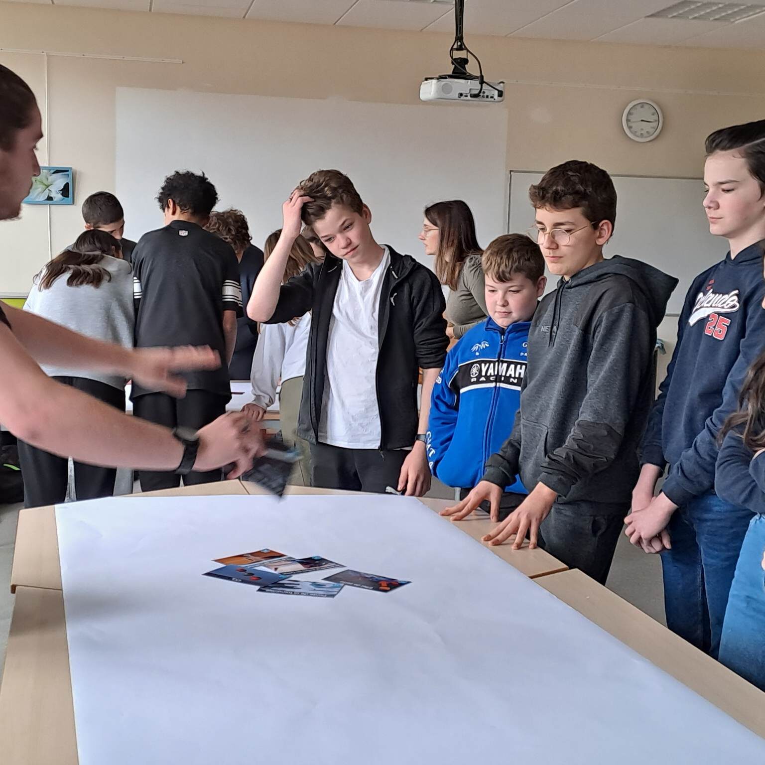 Le collège Paul-Langevin s’implique depuis plusieurs années pour la cause environnementale : exposition sur le développement durable, plantations d’arbres, ateliers de jardinage, formation des éco-délégués aux éco-gestes. Dans cette continuité, Mme Gouet, professeure de physique-chimie, a inscrit sa classe de 4e5 à la « Fresque du climat juniors », qui figure dans le catalogue des animations proposées par le Conseil départemental aux collégiens nivernais.