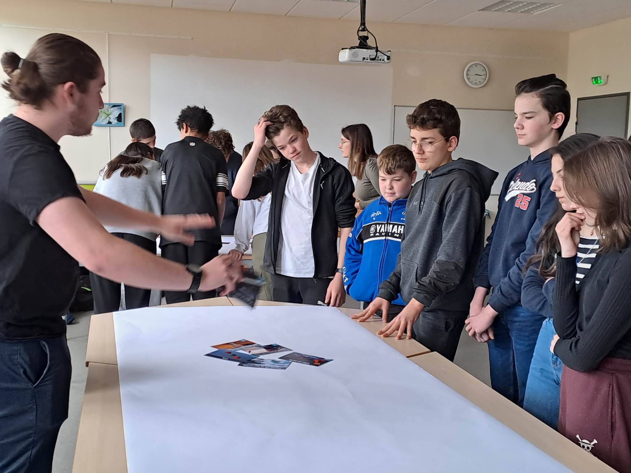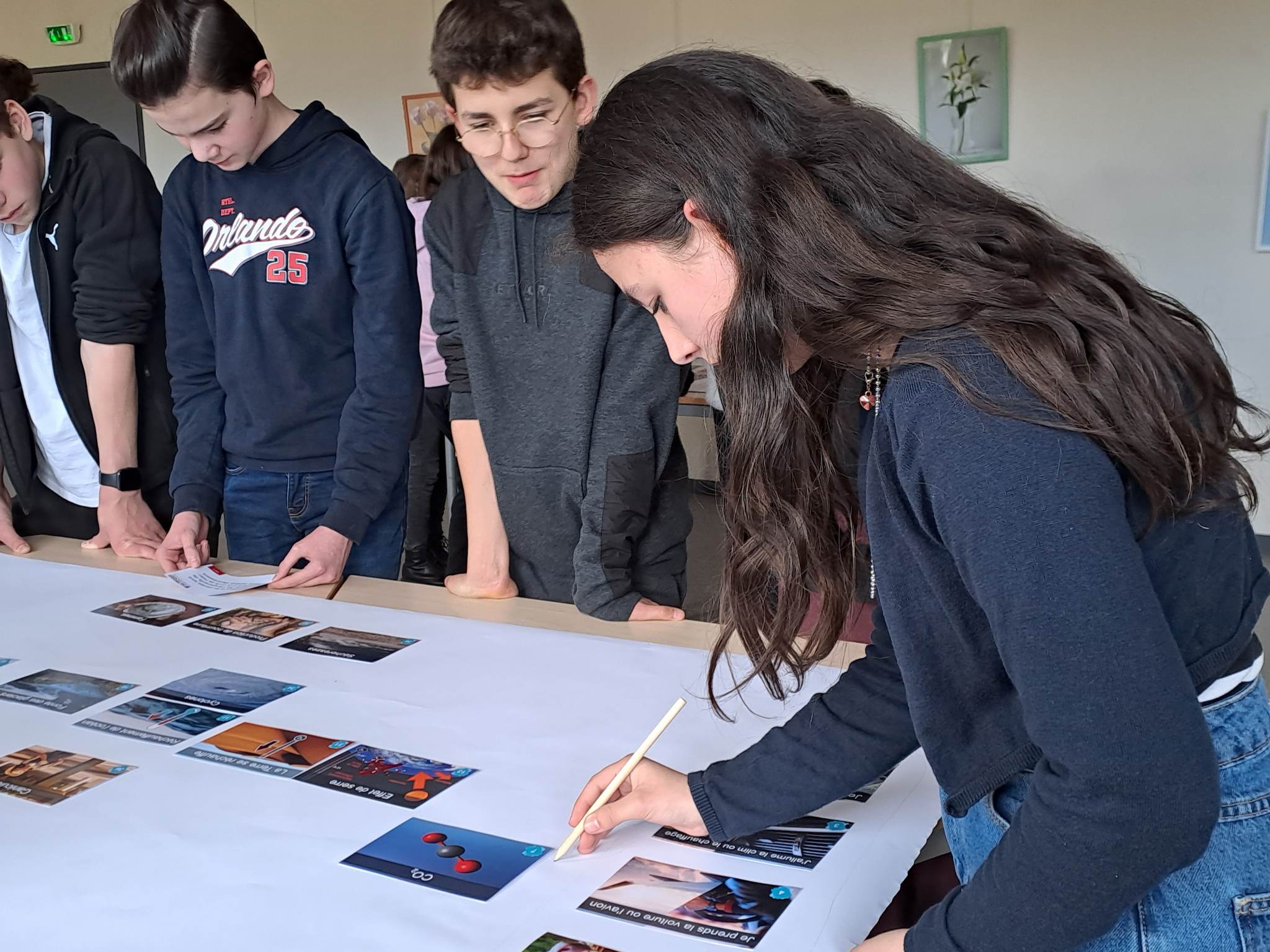 Le collège Paul-Langevin s’implique depuis plusieurs années pour la cause environnementale : exposition sur le développement durable, plantations d’arbres, ateliers de jardinage, formation des éco-délégués aux éco-gestes. Dans cette continuité, Mme Gouet, professeure de physique-chimie, a inscrit sa classe de 4e5 à la « Fresque du climat juniors », qui figure dans le catalogue des animations proposées par le Conseil départemental aux collégiens nivernais.