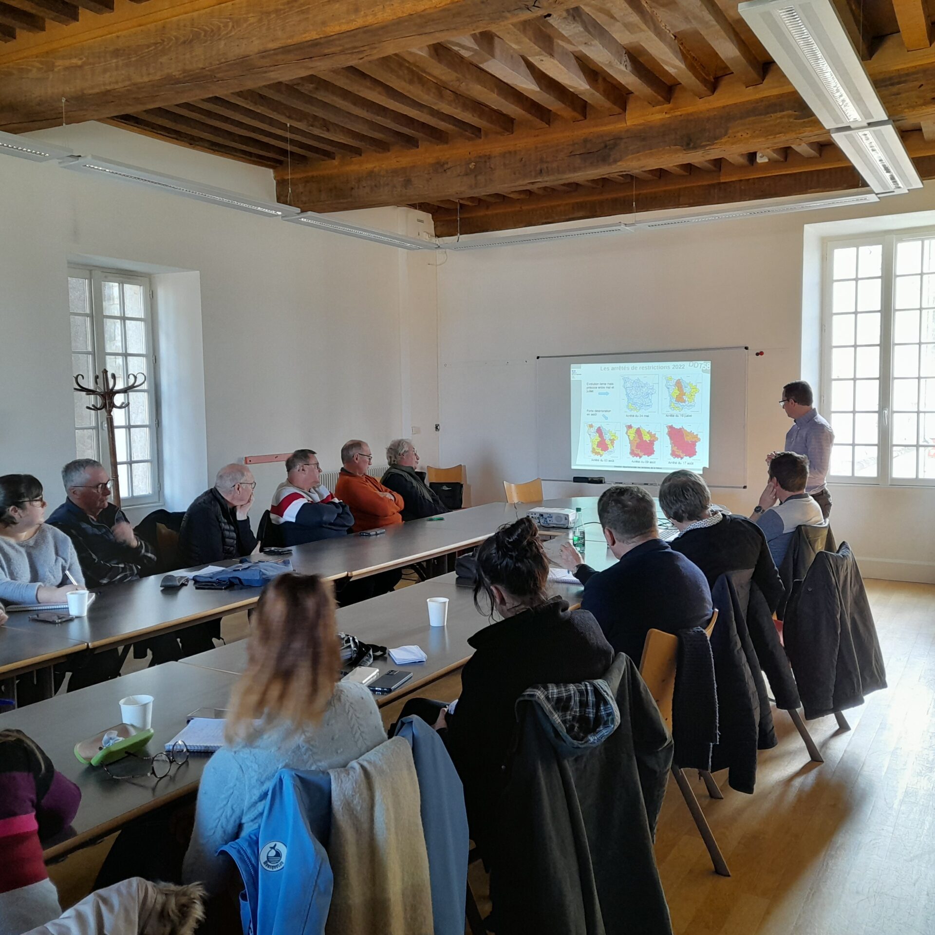 Un état des lieux… sec conforté par l’intervention de Mathieu Dourthe, chef du service « Eau, Forêt et Biodiversité » de la direction départementale des Territoires de la Nièvre (DDT 58) : « C’est très préoccupant surtout pour l’approvisionnement en eau potable, qui est pour nous le cœur de cible de nos actions. Les communes doivent impérativement s’informer sur les restrictions. »