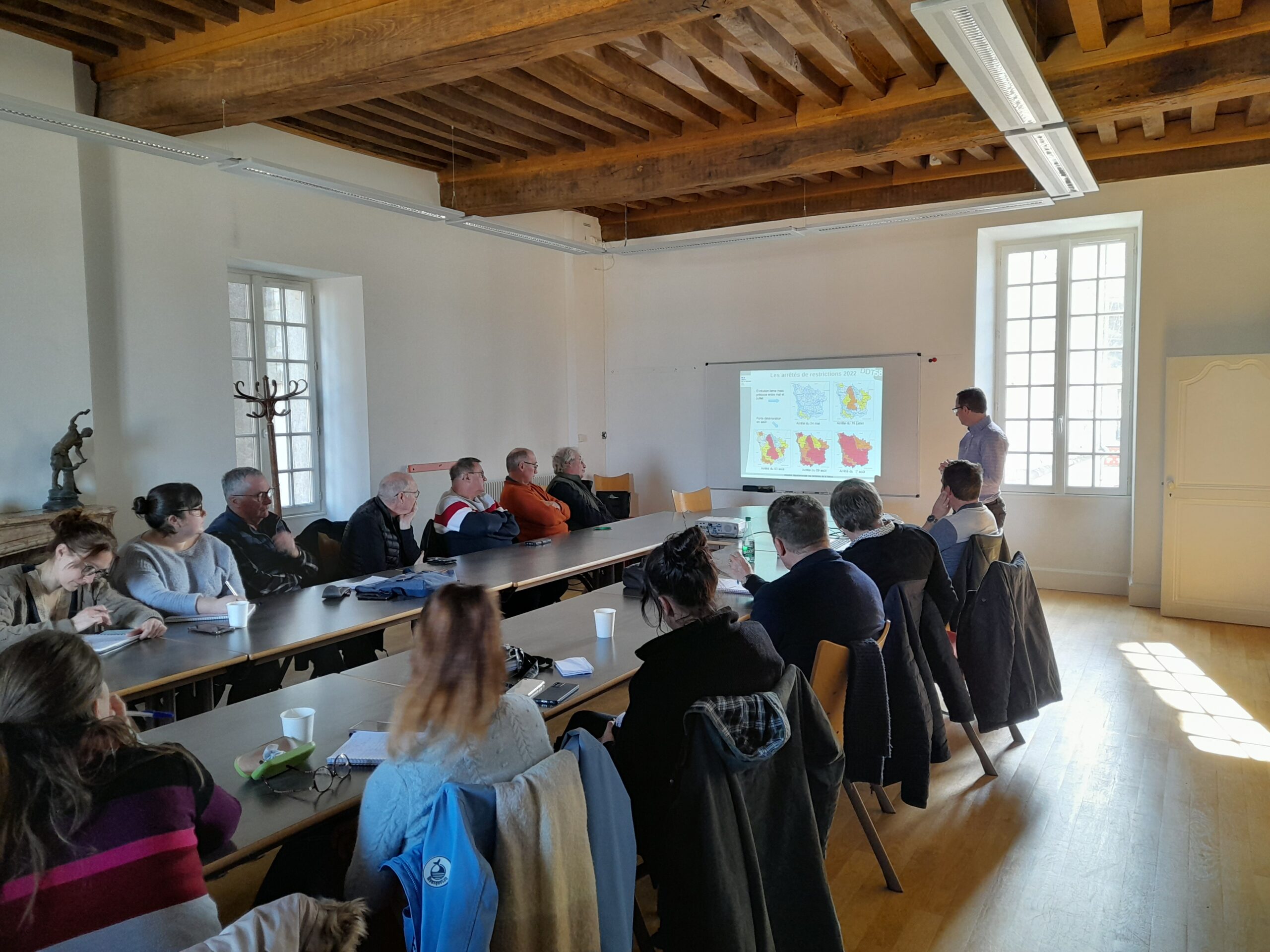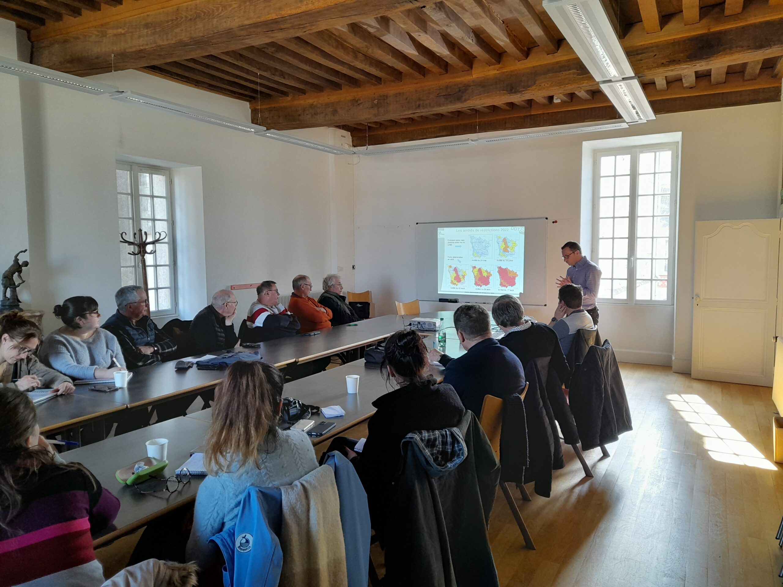 Un état des lieux… sec conforté par l’intervention de Mathieu Dourthe, chef du service « Eau, Forêt et Biodiversité » de la direction départementale des Territoires de la Nièvre (DDT 58) : « C’est très préoccupant surtout pour l’approvisionnement en eau potable, qui est pour nous le cœur de cible de nos actions. Les communes doivent impérativement s’informer sur les restrictions. »