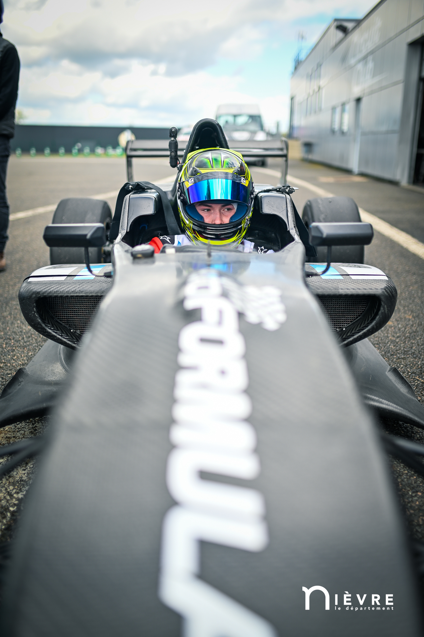 La longue silhouette élancée de Lenny Roches s’enchâsse sans effort ni émoi apparent dans l’étroit baquet de la Formule Renault. « C’est ce châssis qui a mis sur orbite Pierre Gasly, Lando Norris et Charles Leclerc », explique en aparté Paul Lanchère, coach et pilote de développement pour LSP by Nevers Magny-Cours, admiratif du bolide où se sont exercés les nouveaux talents de la F1. « 200 CV, 500 kg, le rapport poids-puissance est plus élevé que celui de la meilleure Ferrari du marché. »