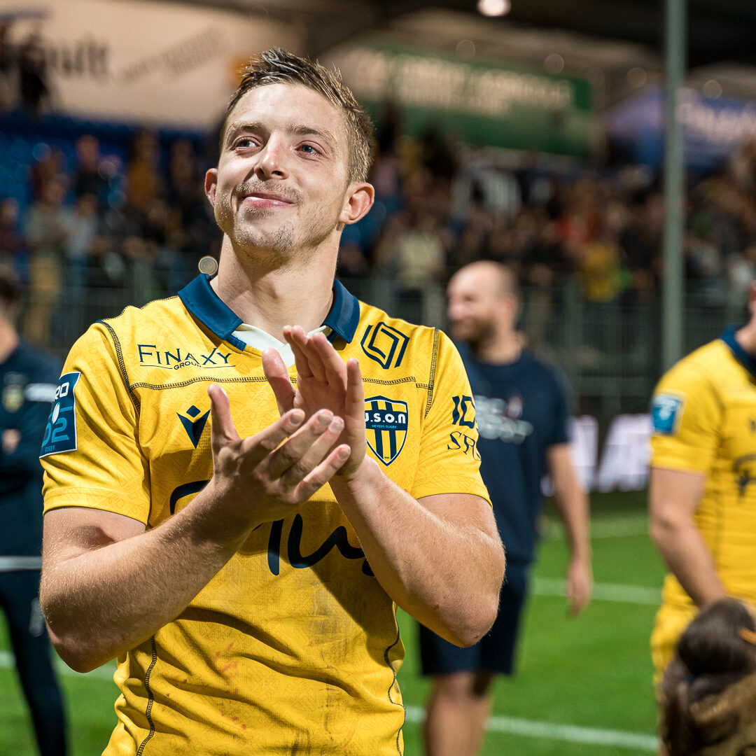 En mai 2022, l’USON Nevers Rugby vit l’un des plus grands jours de son histoire en Pro D2 : son premier match de barrage à domicile, face à Carcassonne. Ce jour-là, parmi les 23 joueurs, un grand blond mince mais costaud savoure encore plus intensément que les autres ces heures qui restent gravées au fond du cerveau jusqu’au dernier souffle. Guillaume Manevy, 25 ans, entre sur la pelouse du Pré-Fleuri, devant 7 500 personnes hurlant « USON, USON » à pleins poumons, avec sur le dos le n°9 de demi de mêlée titulaire. Un rêve d’enfance devenu réalité à quelques centaines de mètres de la maison familiale. 80 minutes de match plus tard, l’USON terrasse Carcassonne et se qualifie pour sa première demi-finale – perdue une semaine plus tard à Mont-de-Marsan, sans honte et avec le sentiment d’être passé à côté d’un bonheur encore plus grand.