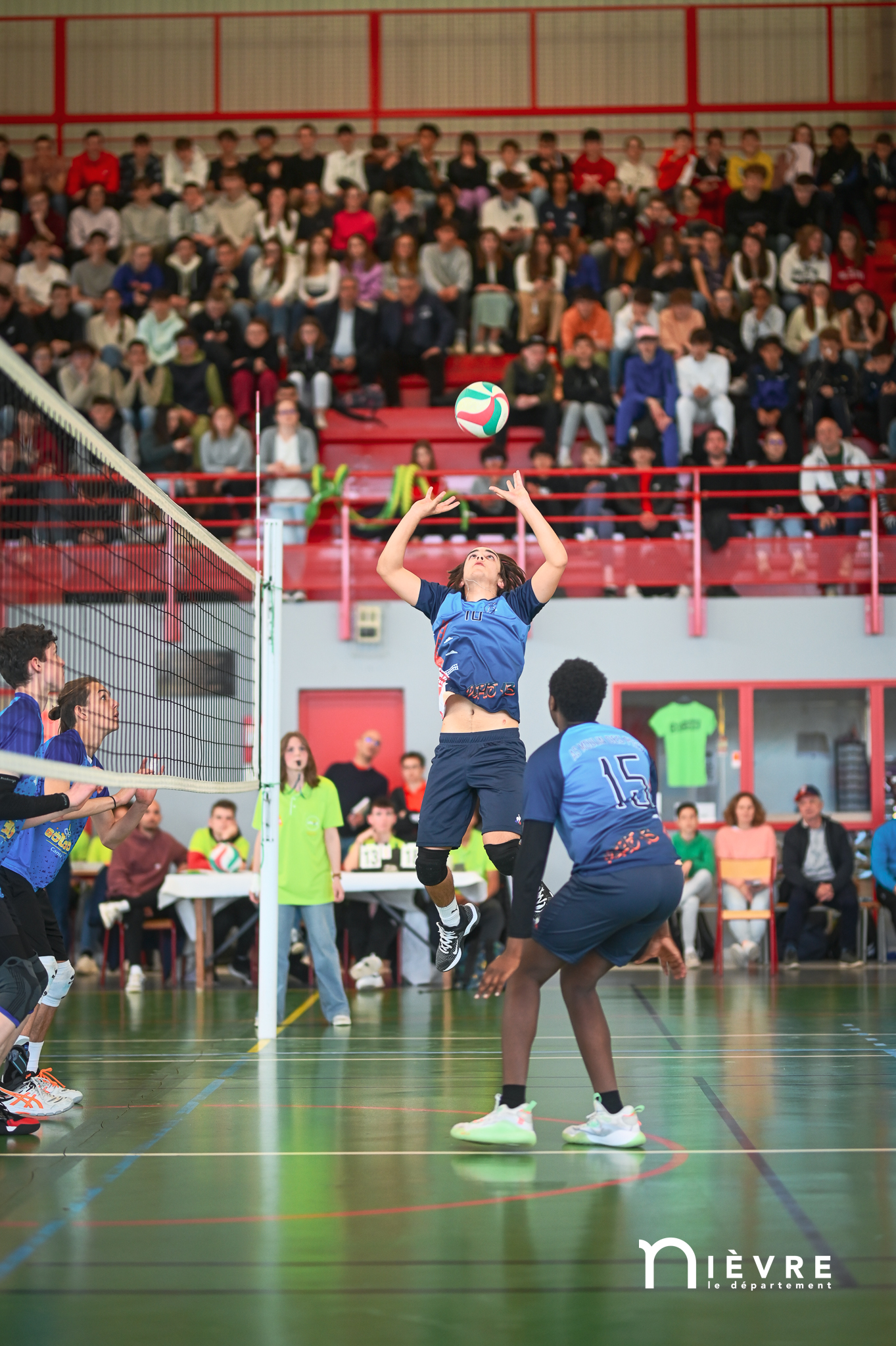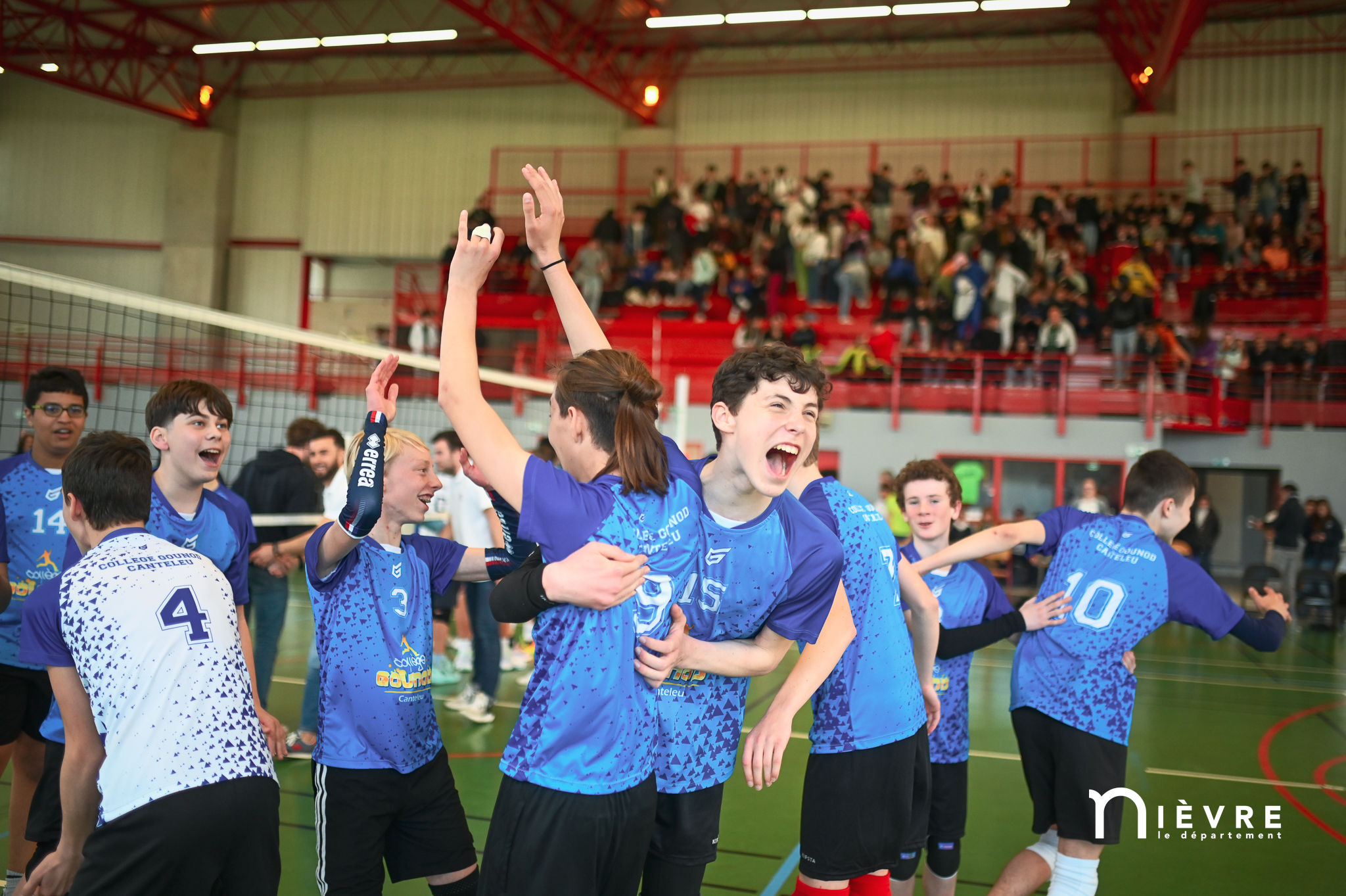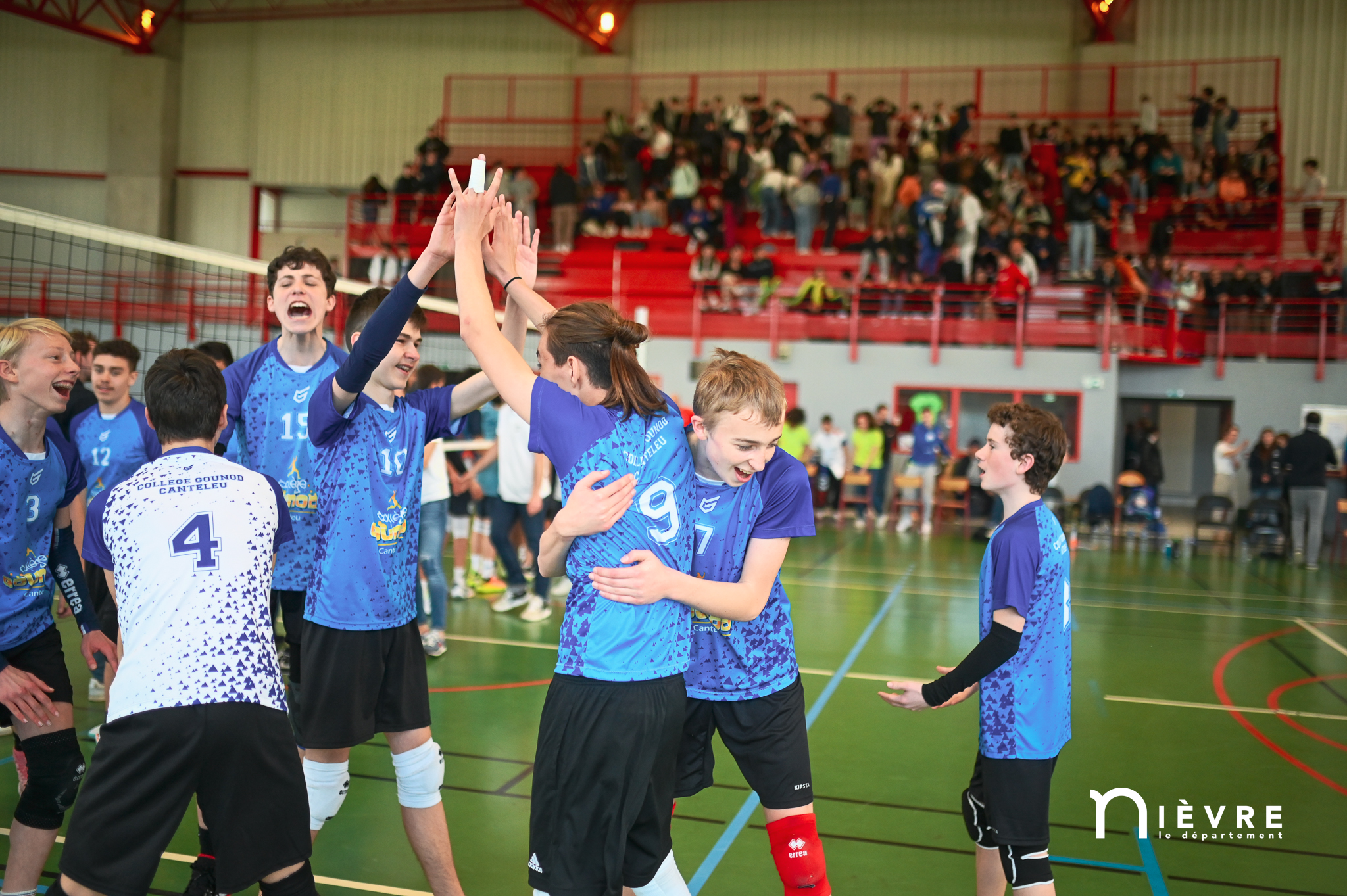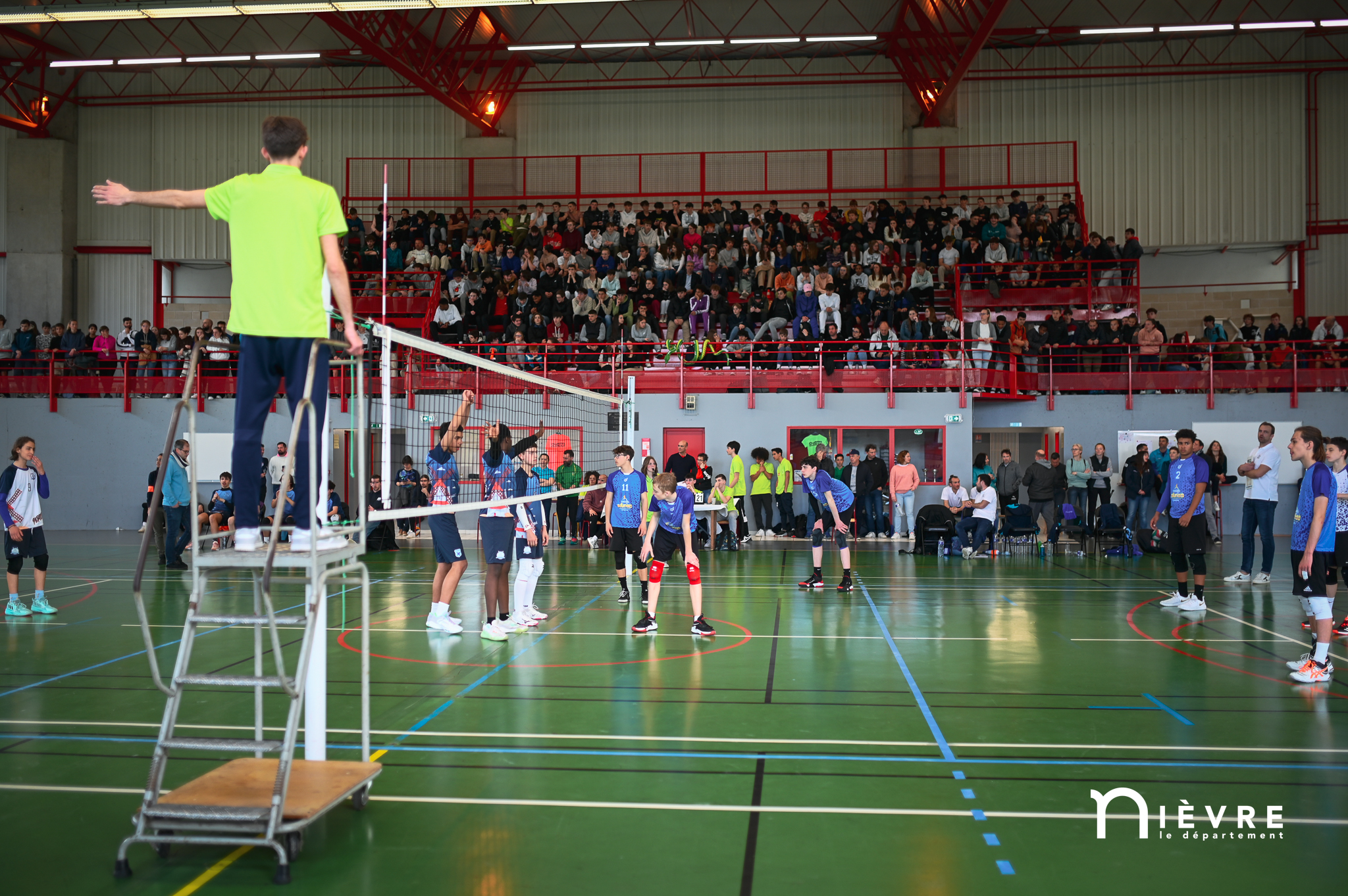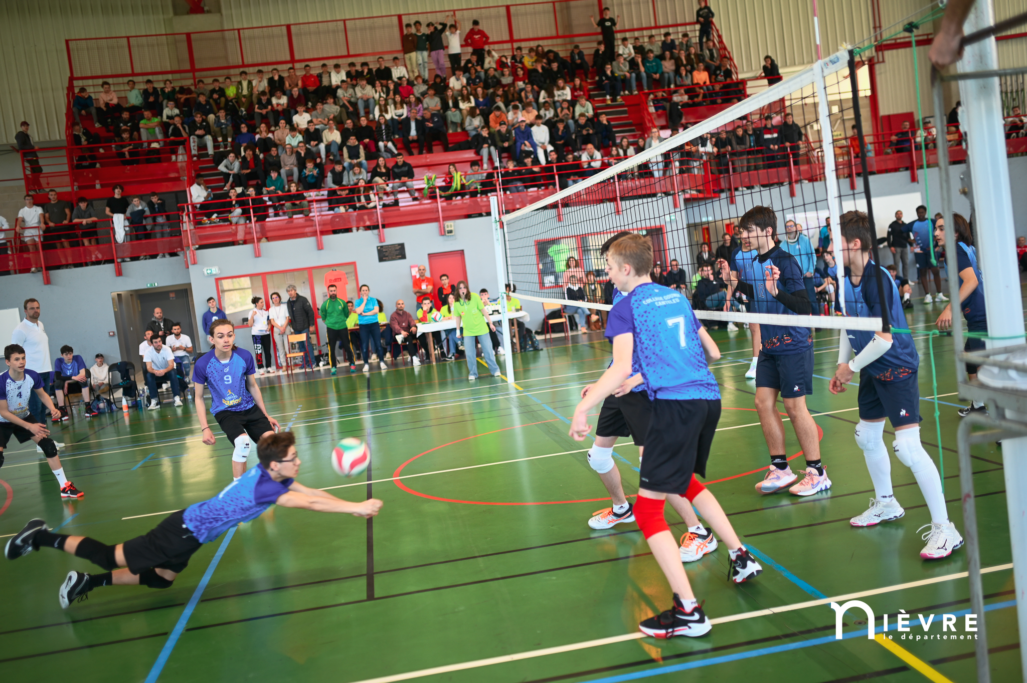 La finale conclut en beauté une semaine qui a vu le volley-ball s’épanouir aux quatre coins de la Nièvre (voir encadré). Du 4 au 7 avril, les douze meilleures équipes françaises – toutes évoluant dans des sections sportives de collège – ont été prises en charge par l’UNSS départementale et sa directrice, Sophie Martin : « Ce sont mes premiers championnats de France », explique-t-elle, un brin fourbue, dans le brouhaha de la finale. Entre les joueurs et les accompagnateurs, ce sont 200 personnes qui ont été hébergées dans la colonie de vacances des Enfants du Métro, à Poiseux, un site « exceptionnel » apprécié par les équipes. Les matches de poule se sont déroulés dans les gymnases de Prémery, Guérigny, Nevers (Centre scolaire Notre-Dame) et Challuy (lycée agricole), avant les finales à Decize.