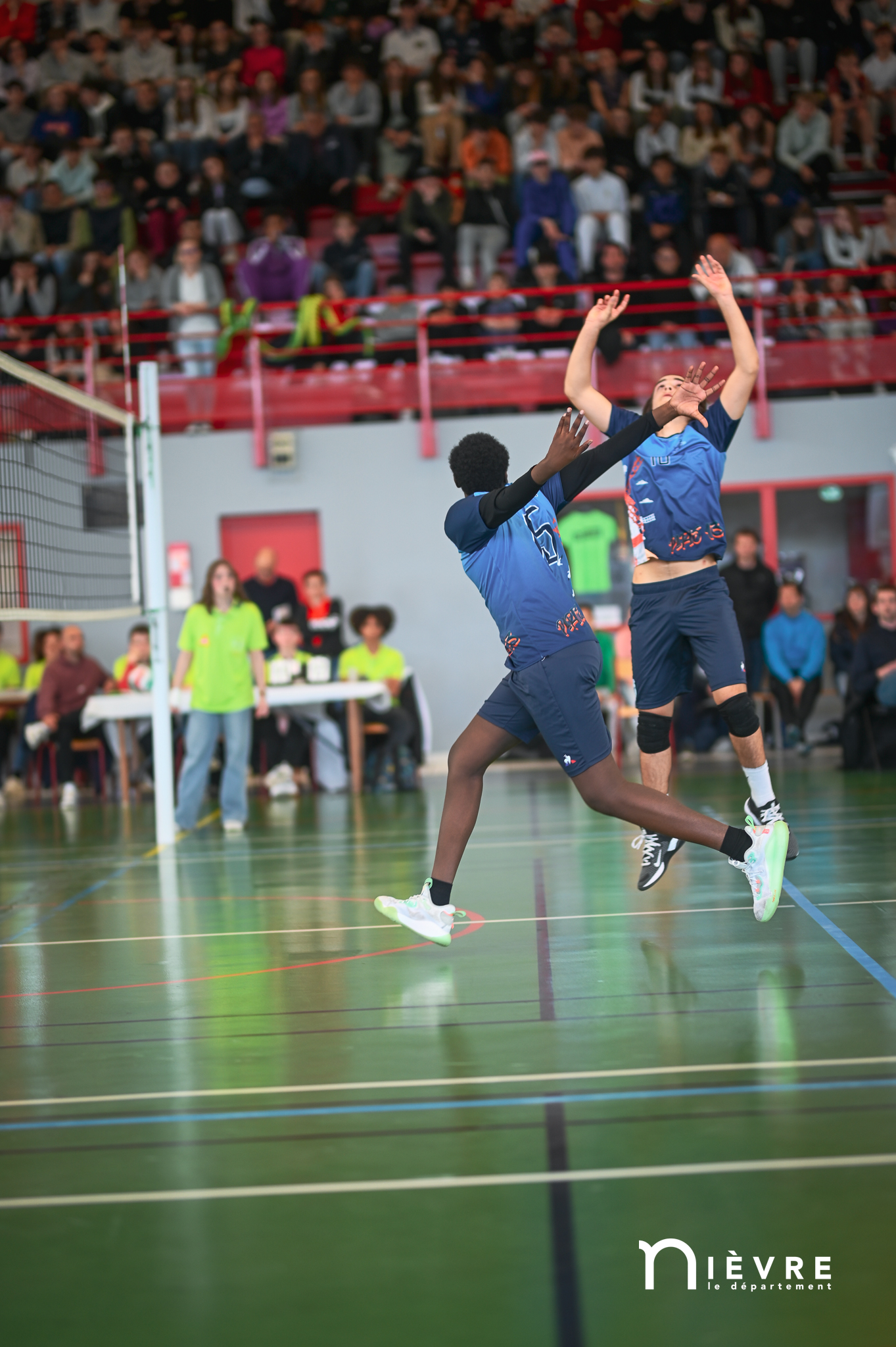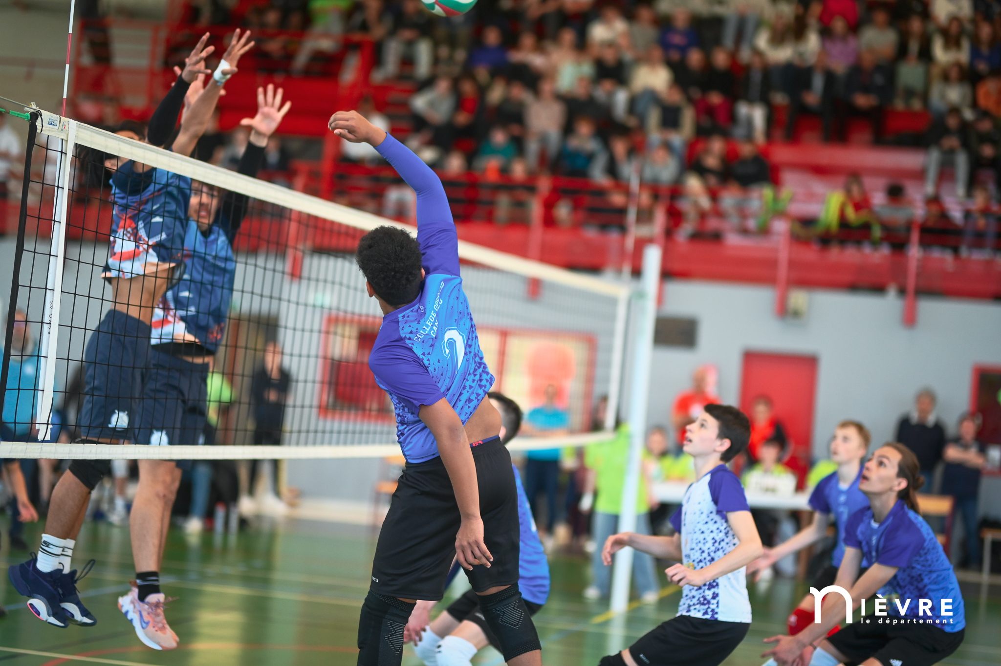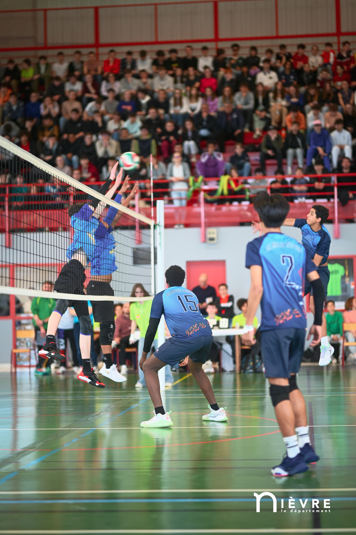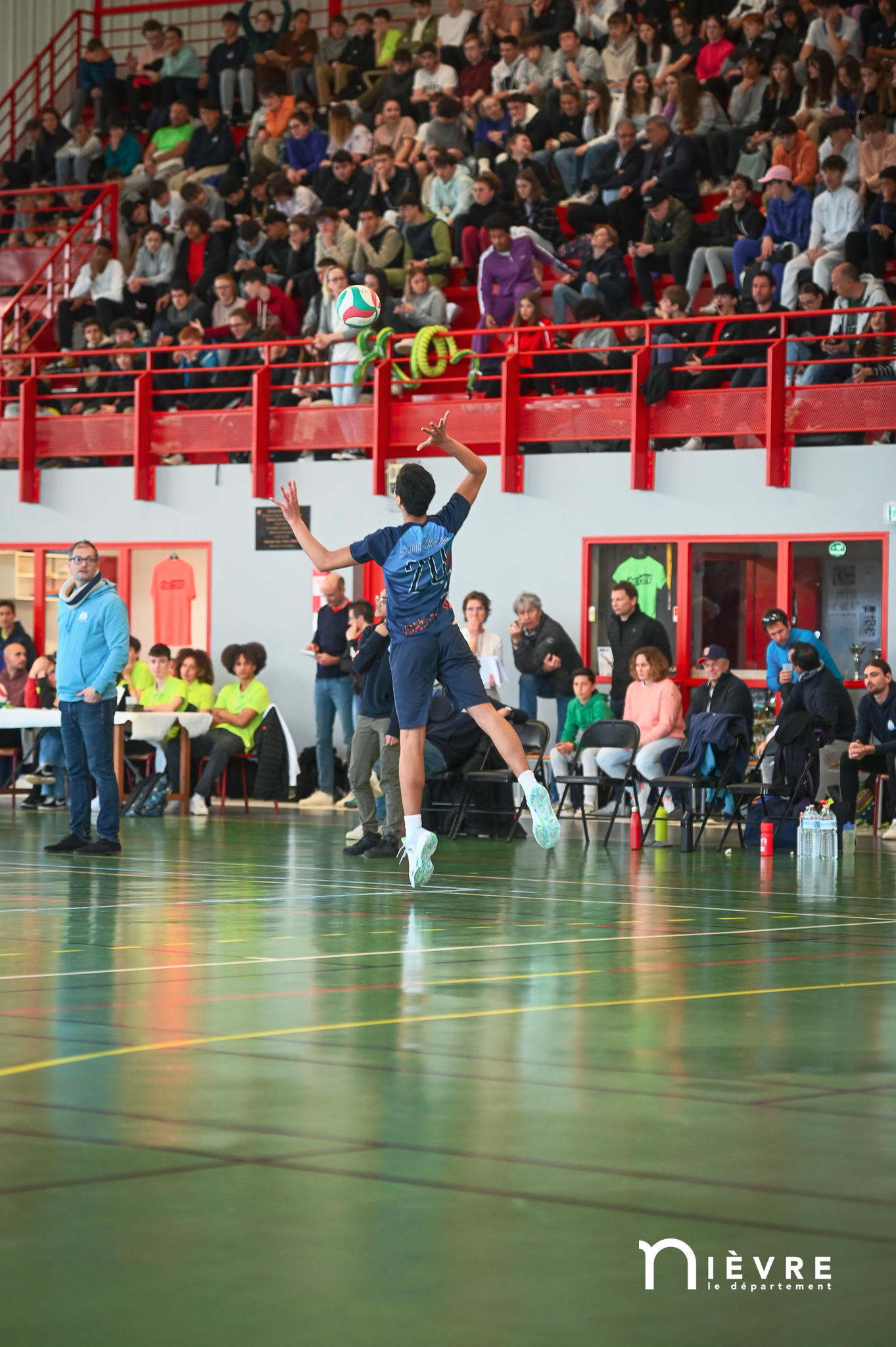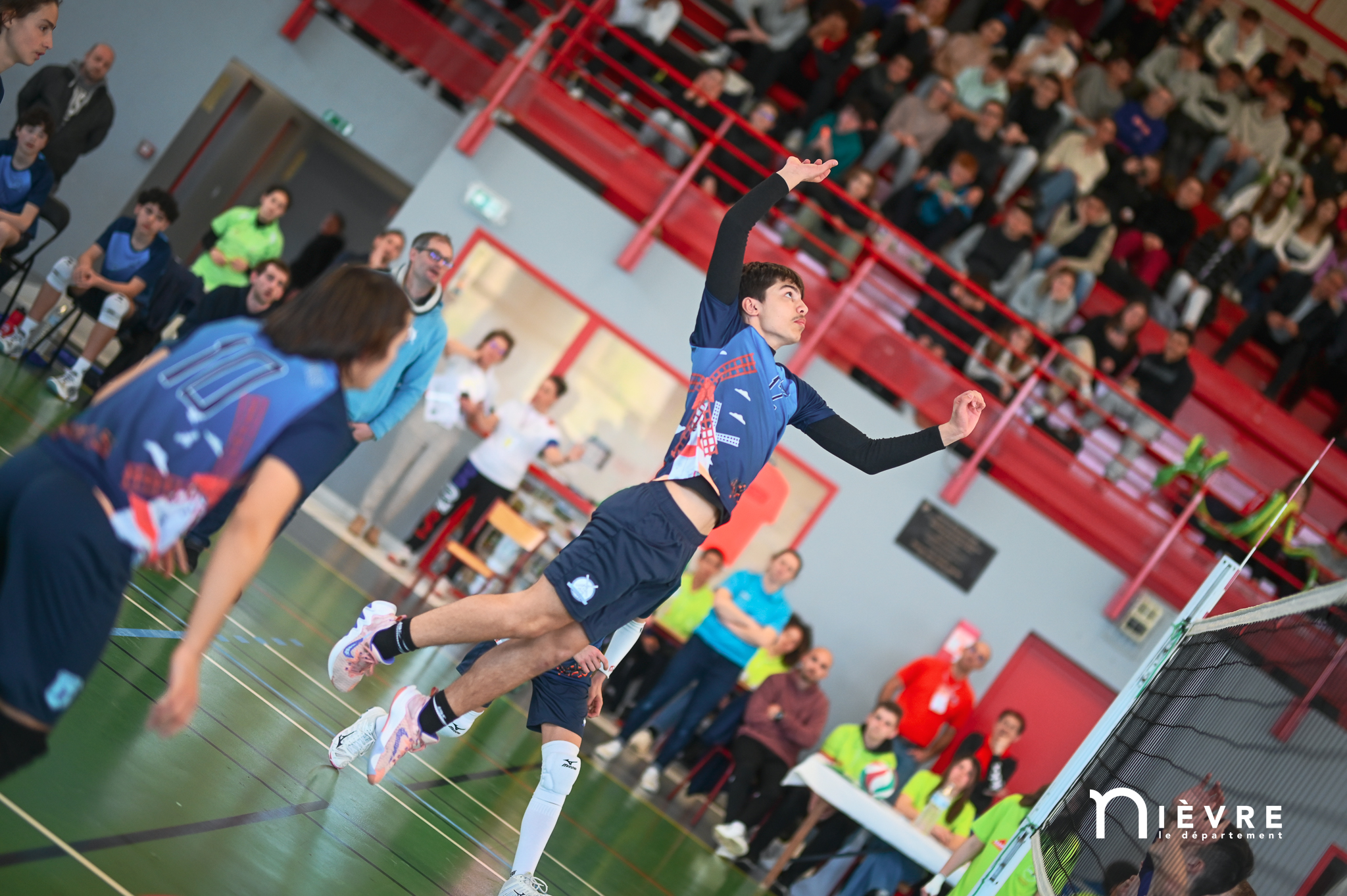 La finale conclut en beauté une semaine qui a vu le volley-ball s’épanouir aux quatre coins de la Nièvre (voir encadré). Du 4 au 7 avril, les douze meilleures équipes françaises – toutes évoluant dans des sections sportives de collège – ont été prises en charge par l’UNSS départementale et sa directrice, Sophie Martin : « Ce sont mes premiers championnats de France », explique-t-elle, un brin fourbue, dans le brouhaha de la finale. Entre les joueurs et les accompagnateurs, ce sont 200 personnes qui ont été hébergées dans la colonie de vacances des Enfants du Métro, à Poiseux, un site « exceptionnel » apprécié par les équipes. Les matches de poule se sont déroulés dans les gymnases de Prémery, Guérigny, Nevers (Centre scolaire Notre-Dame) et Challuy (lycée agricole), avant les finales à Decize.