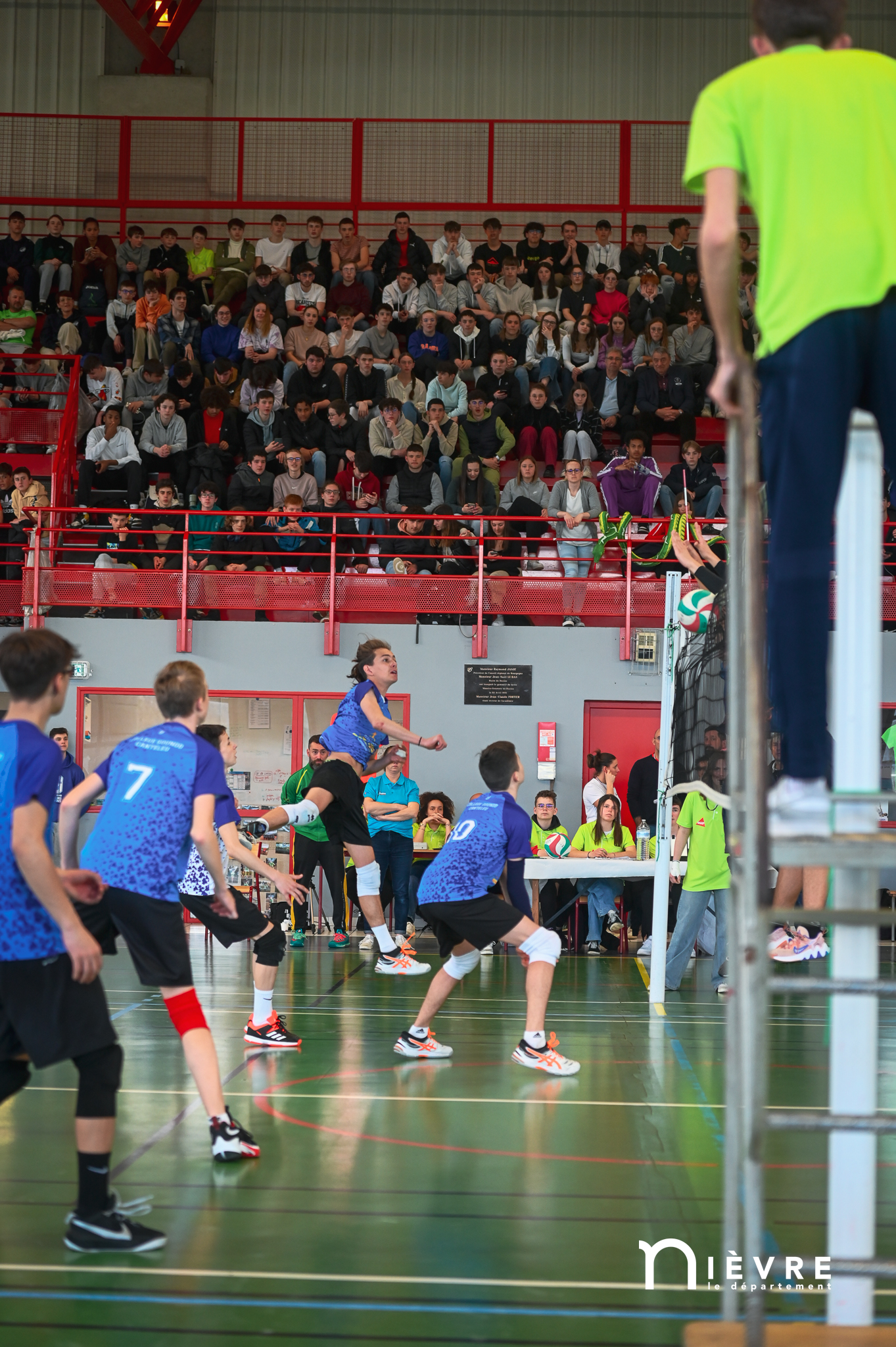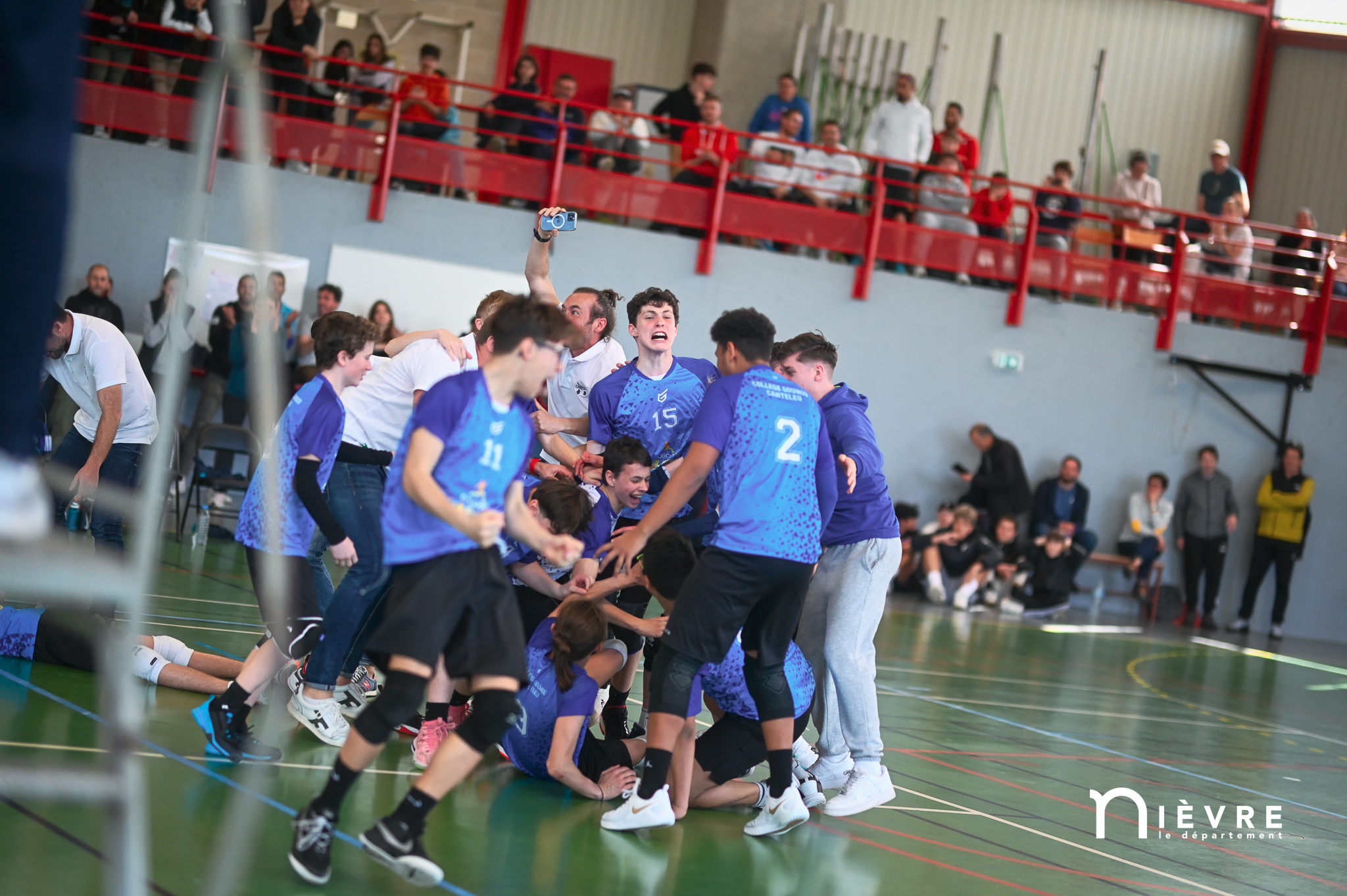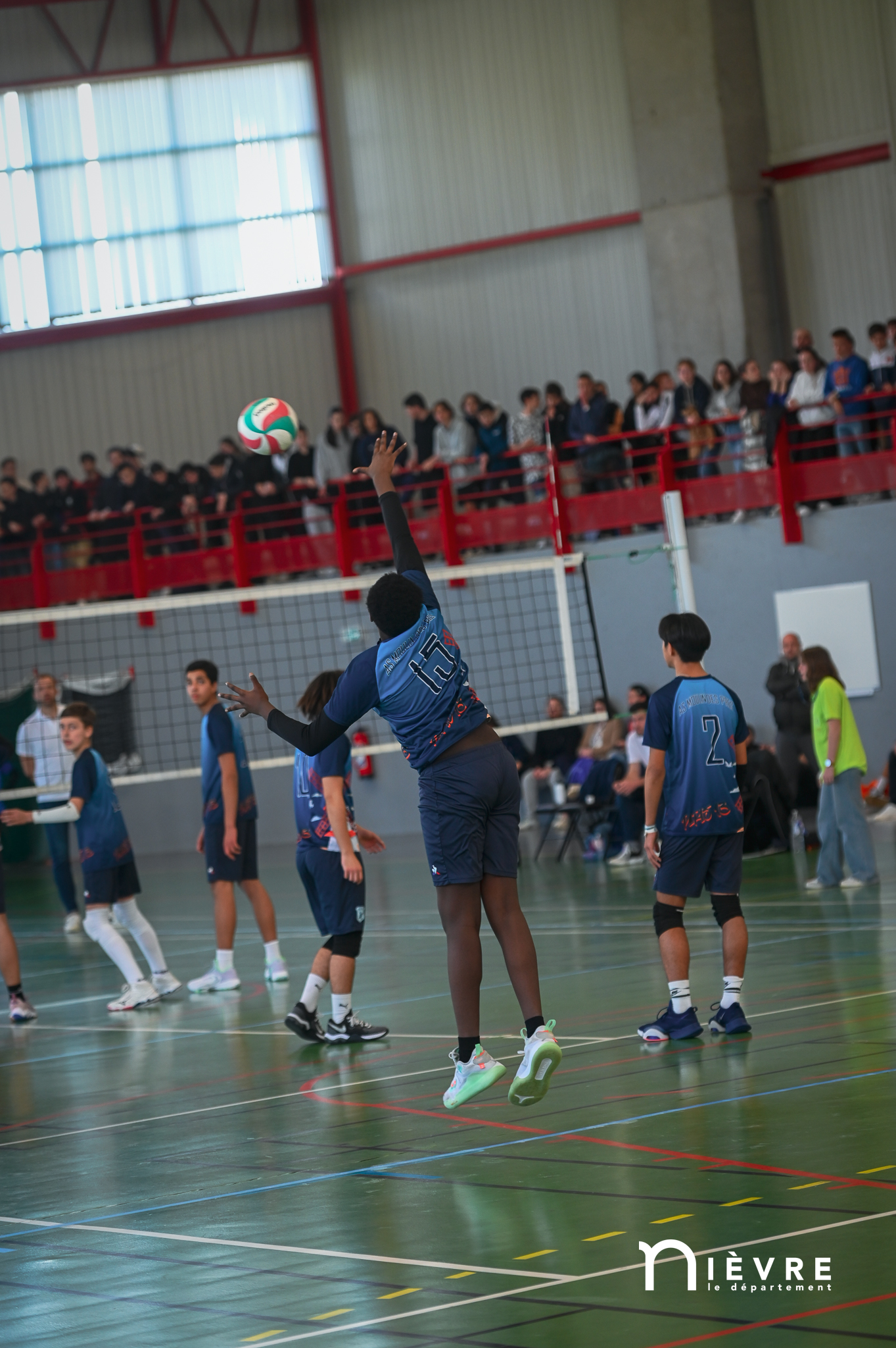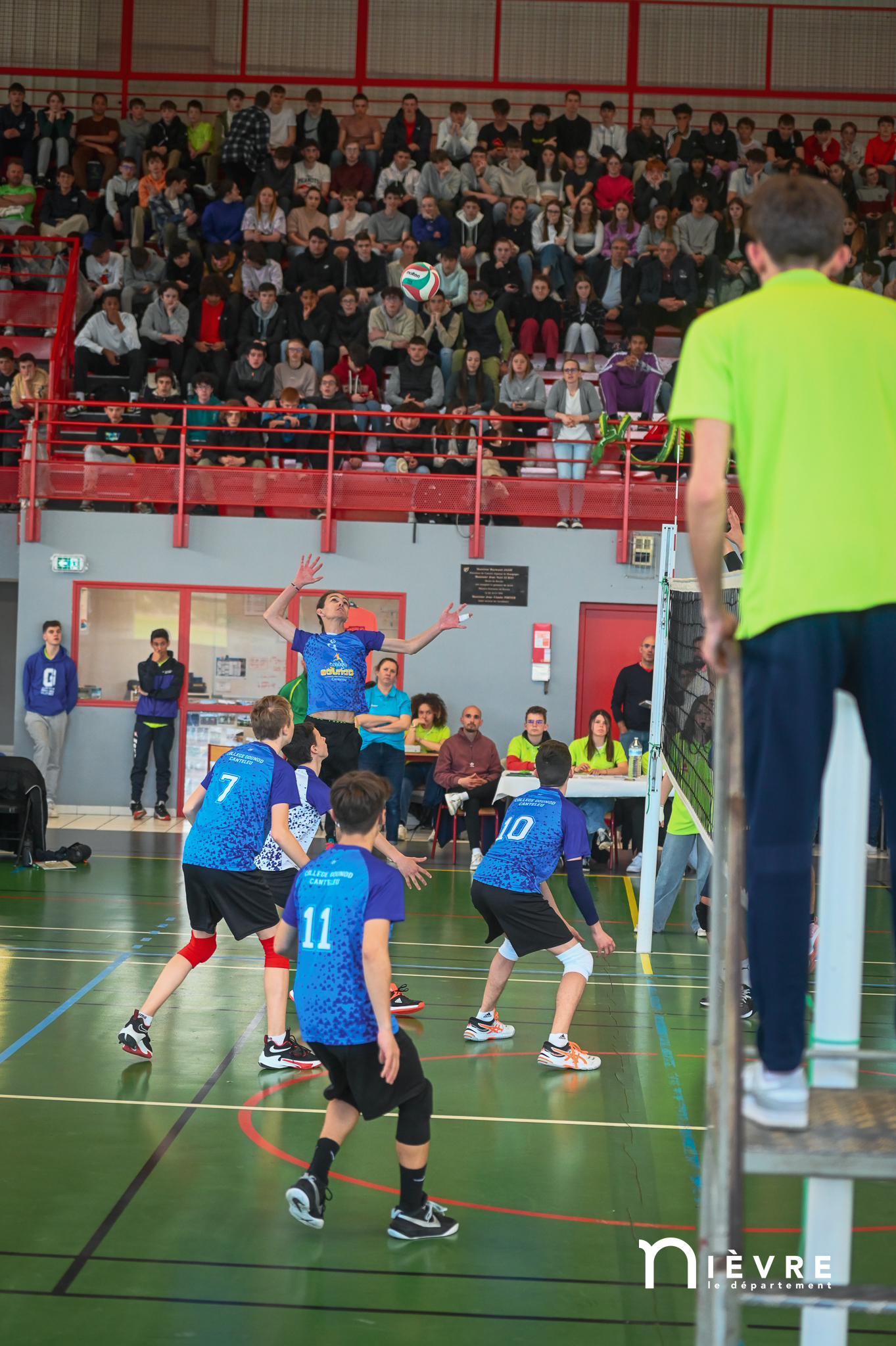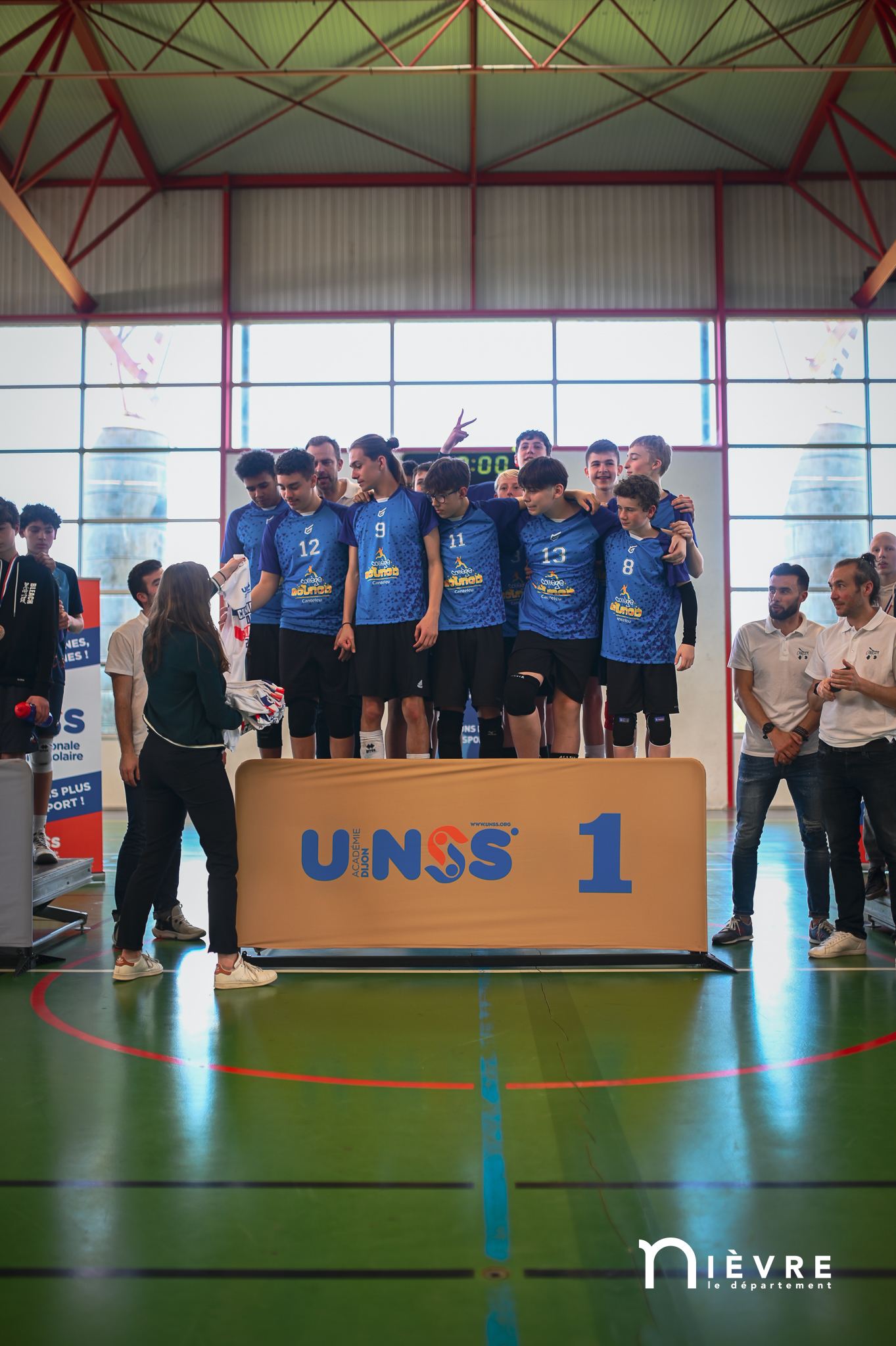 La finale conclut en beauté une semaine qui a vu le volley-ball s’épanouir aux quatre coins de la Nièvre (voir encadré). Du 4 au 7 avril, les douze meilleures équipes françaises – toutes évoluant dans des sections sportives de collège – ont été prises en charge par l’UNSS départementale et sa directrice, Sophie Martin : « Ce sont mes premiers championnats de France », explique-t-elle, un brin fourbue, dans le brouhaha de la finale. Entre les joueurs et les accompagnateurs, ce sont 200 personnes qui ont été hébergées dans la colonie de vacances des Enfants du Métro, à Poiseux, un site « exceptionnel » apprécié par les équipes. Les matches de poule se sont déroulés dans les gymnases de Prémery, Guérigny, Nevers (Centre scolaire Notre-Dame) et Challuy (lycée agricole), avant les finales à Decize.