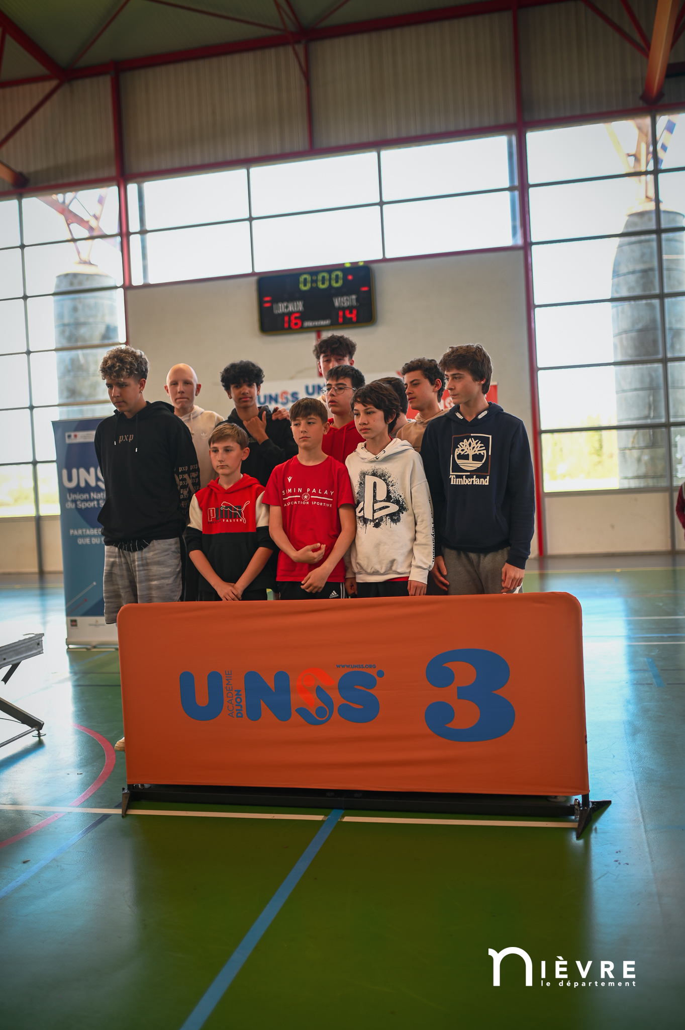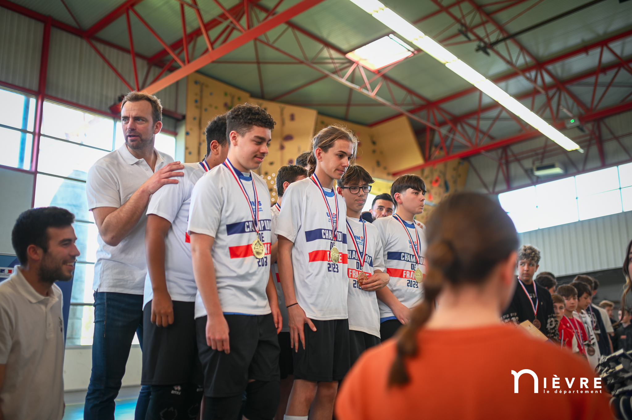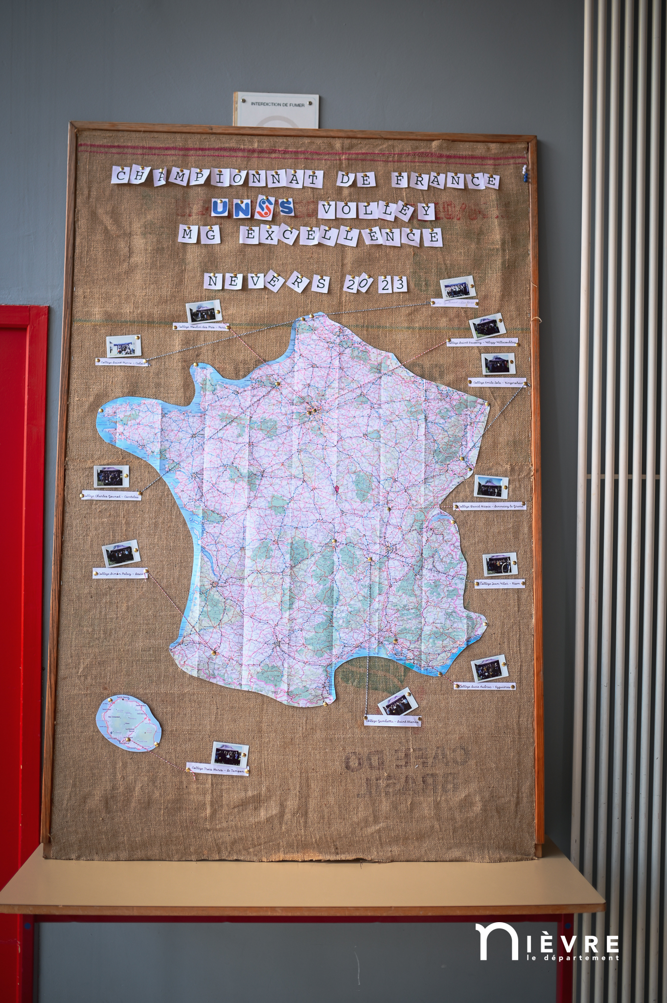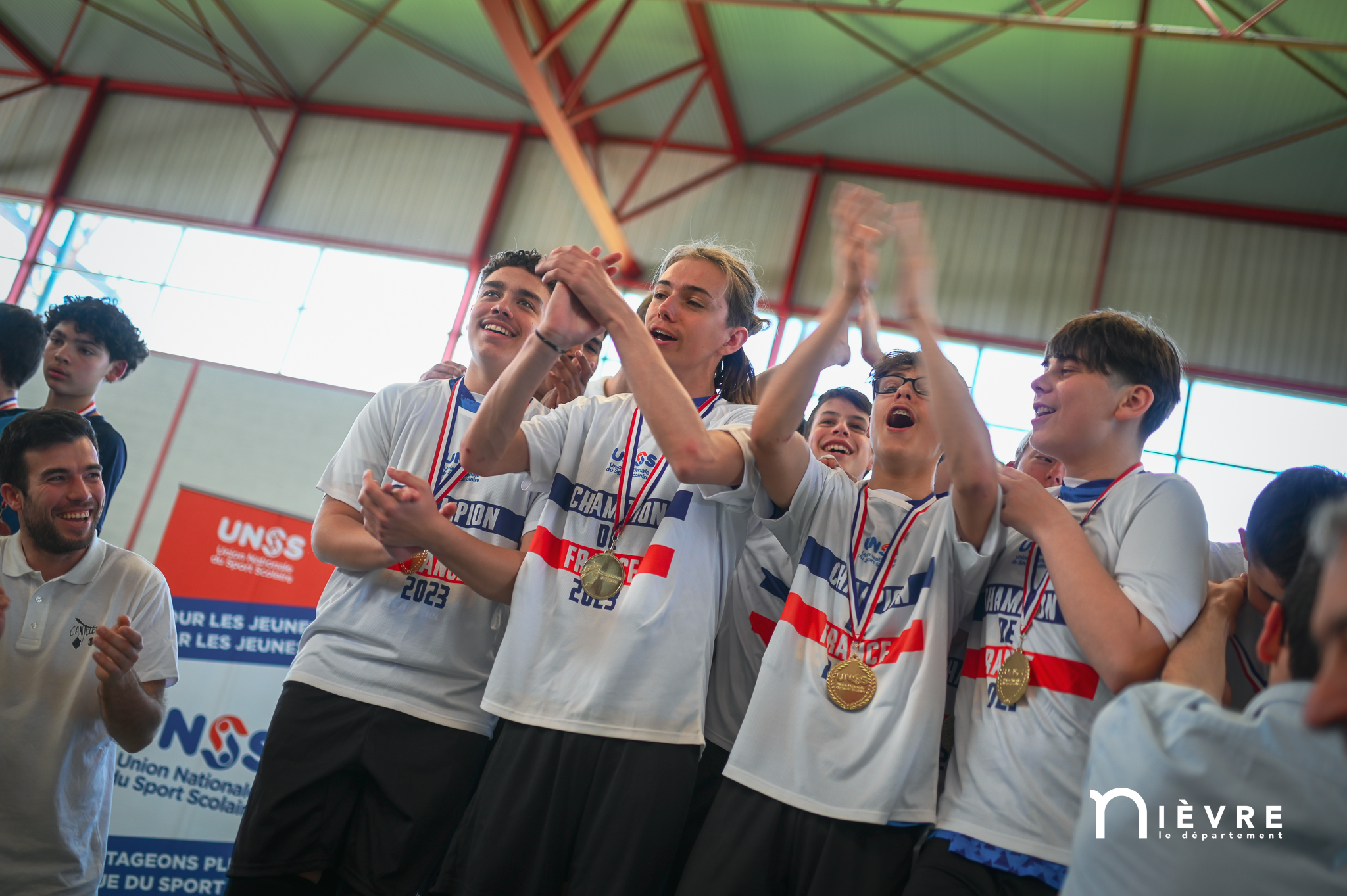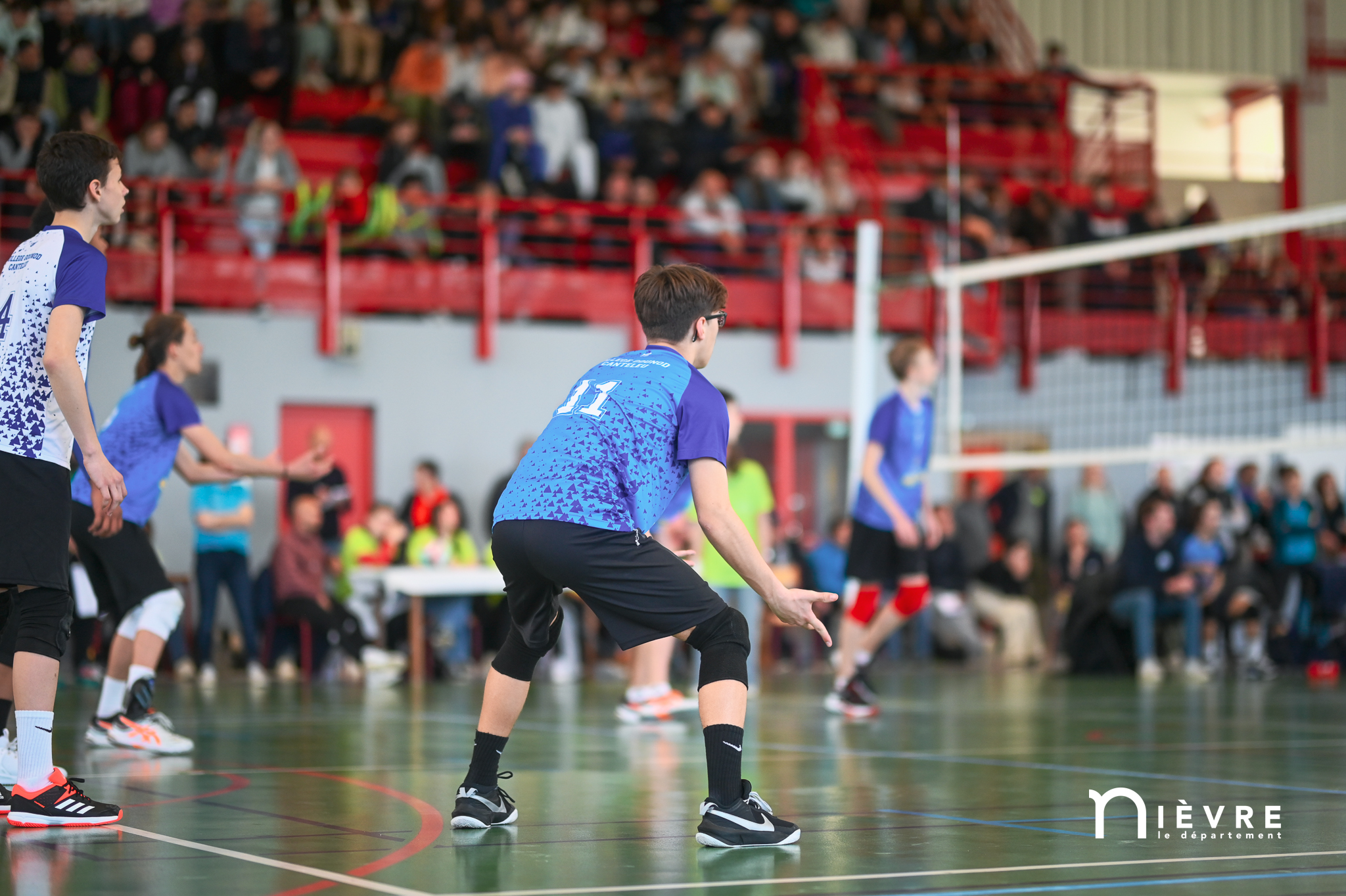 La finale conclut en beauté une semaine qui a vu le volley-ball s’épanouir aux quatre coins de la Nièvre (voir encadré). Du 4 au 7 avril, les douze meilleures équipes françaises – toutes évoluant dans des sections sportives de collège – ont été prises en charge par l’UNSS départementale et sa directrice, Sophie Martin : « Ce sont mes premiers championnats de France », explique-t-elle, un brin fourbue, dans le brouhaha de la finale. Entre les joueurs et les accompagnateurs, ce sont 200 personnes qui ont été hébergées dans la colonie de vacances des Enfants du Métro, à Poiseux, un site « exceptionnel » apprécié par les équipes. Les matches de poule se sont déroulés dans les gymnases de Prémery, Guérigny, Nevers (Centre scolaire Notre-Dame) et Challuy (lycée agricole), avant les finales à Decize.