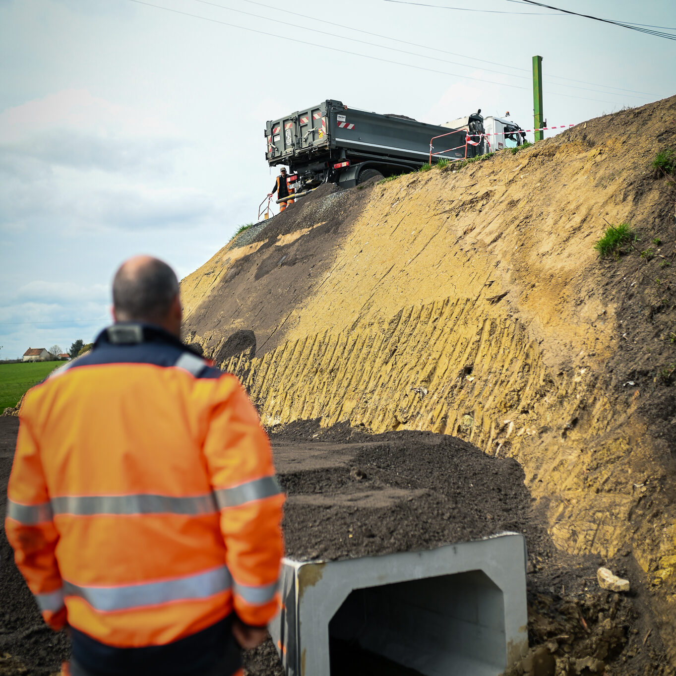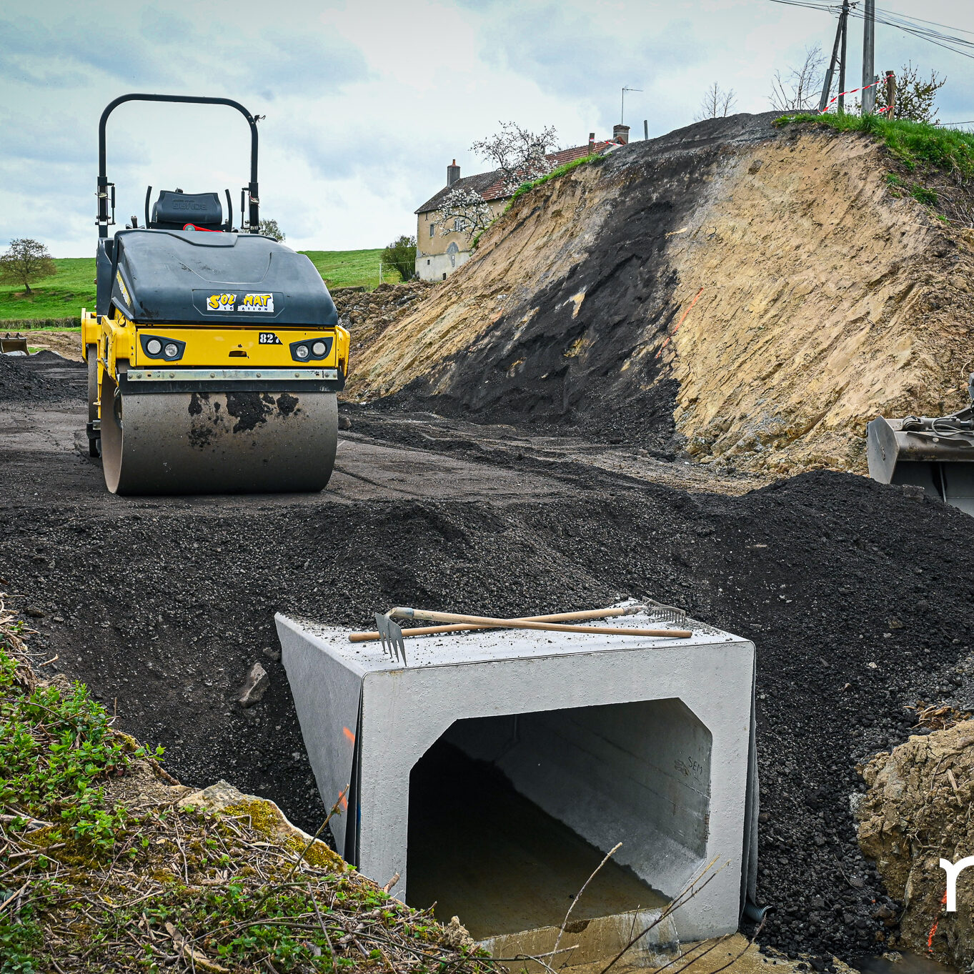 Aqueduc remplacé et remblai en cours sur la RD 3 à Saint-Seine