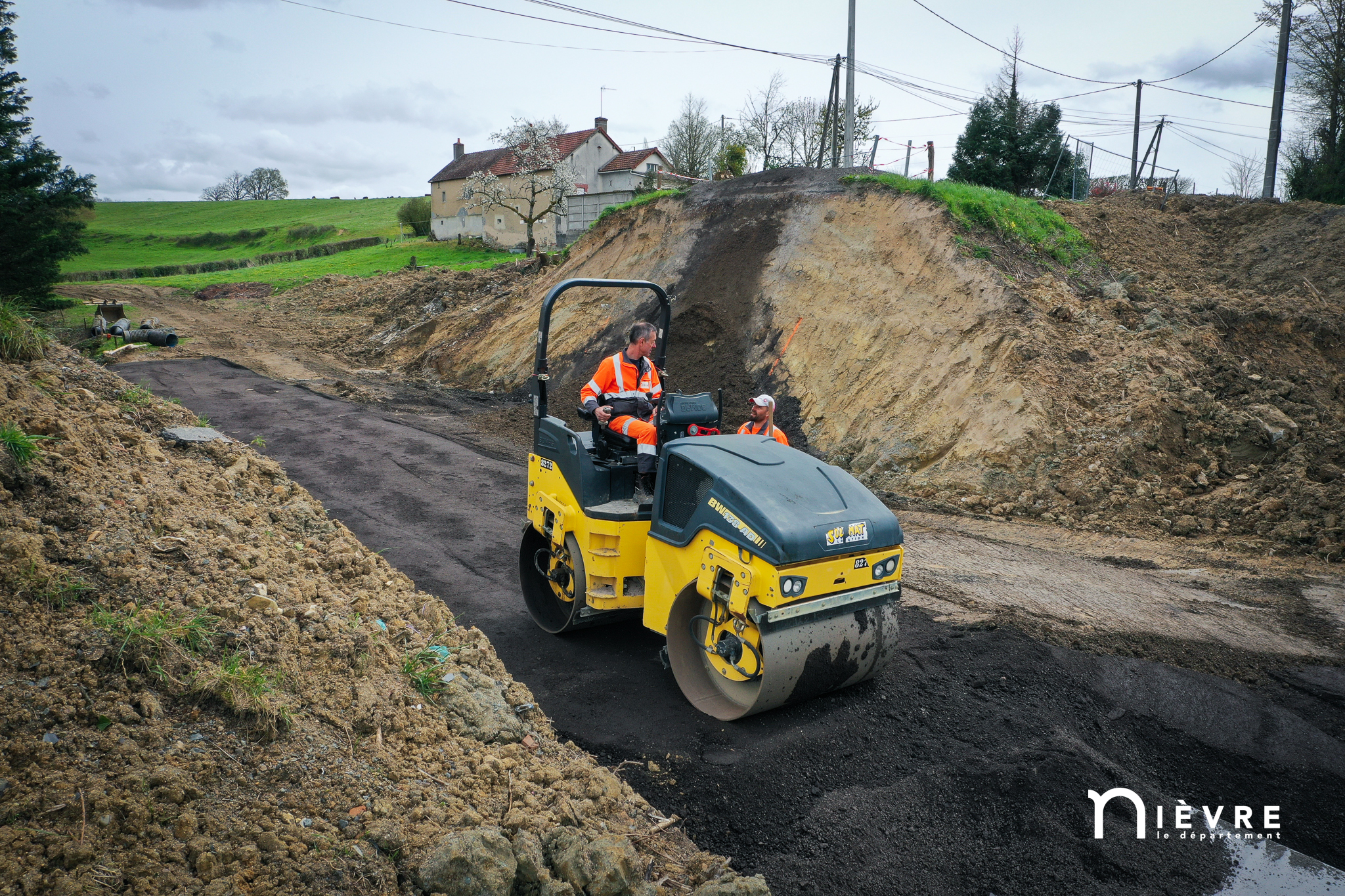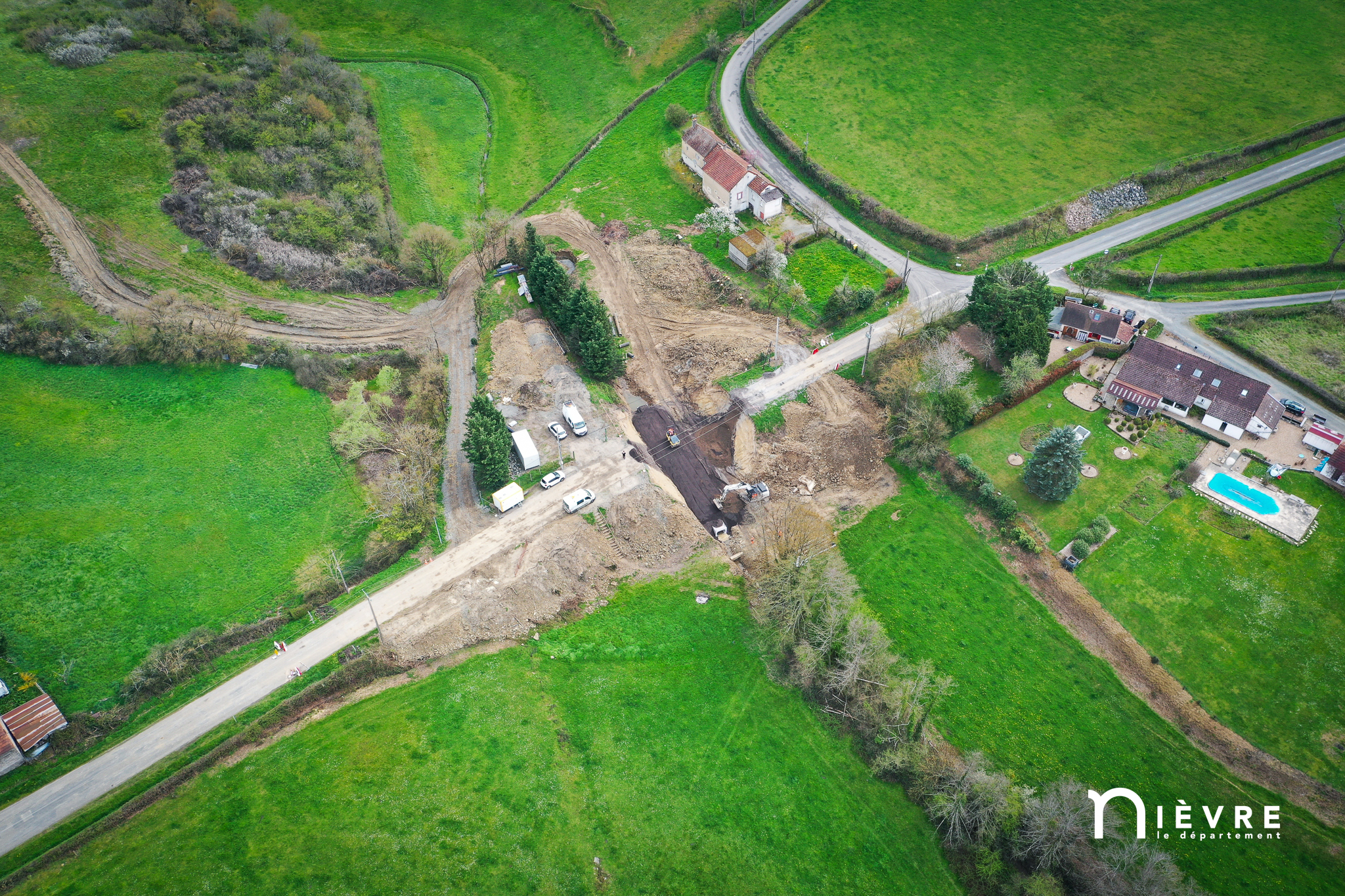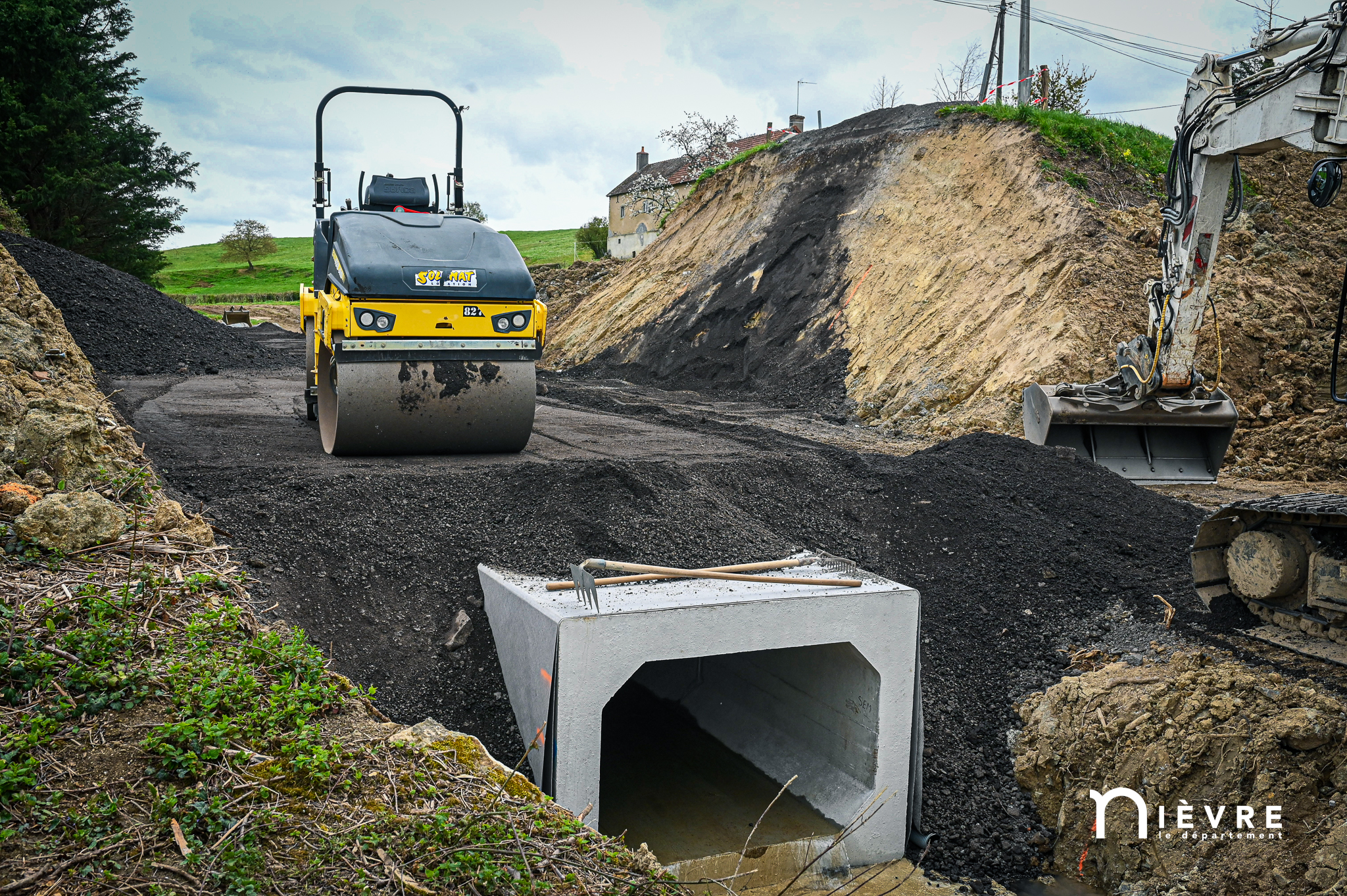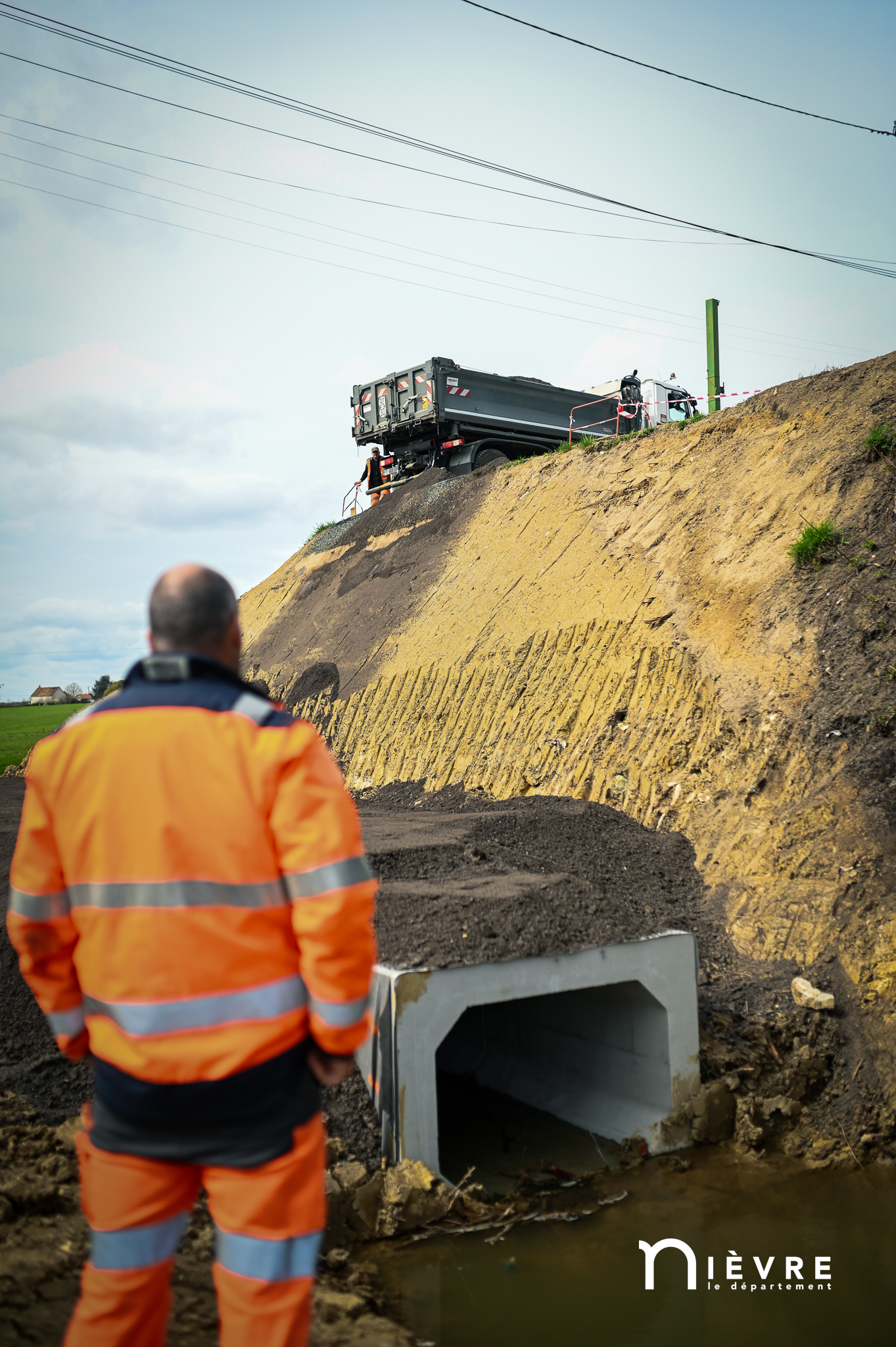 Aqueduc remplacé et remblai en cours sur la RD 3 à Saint-Seine