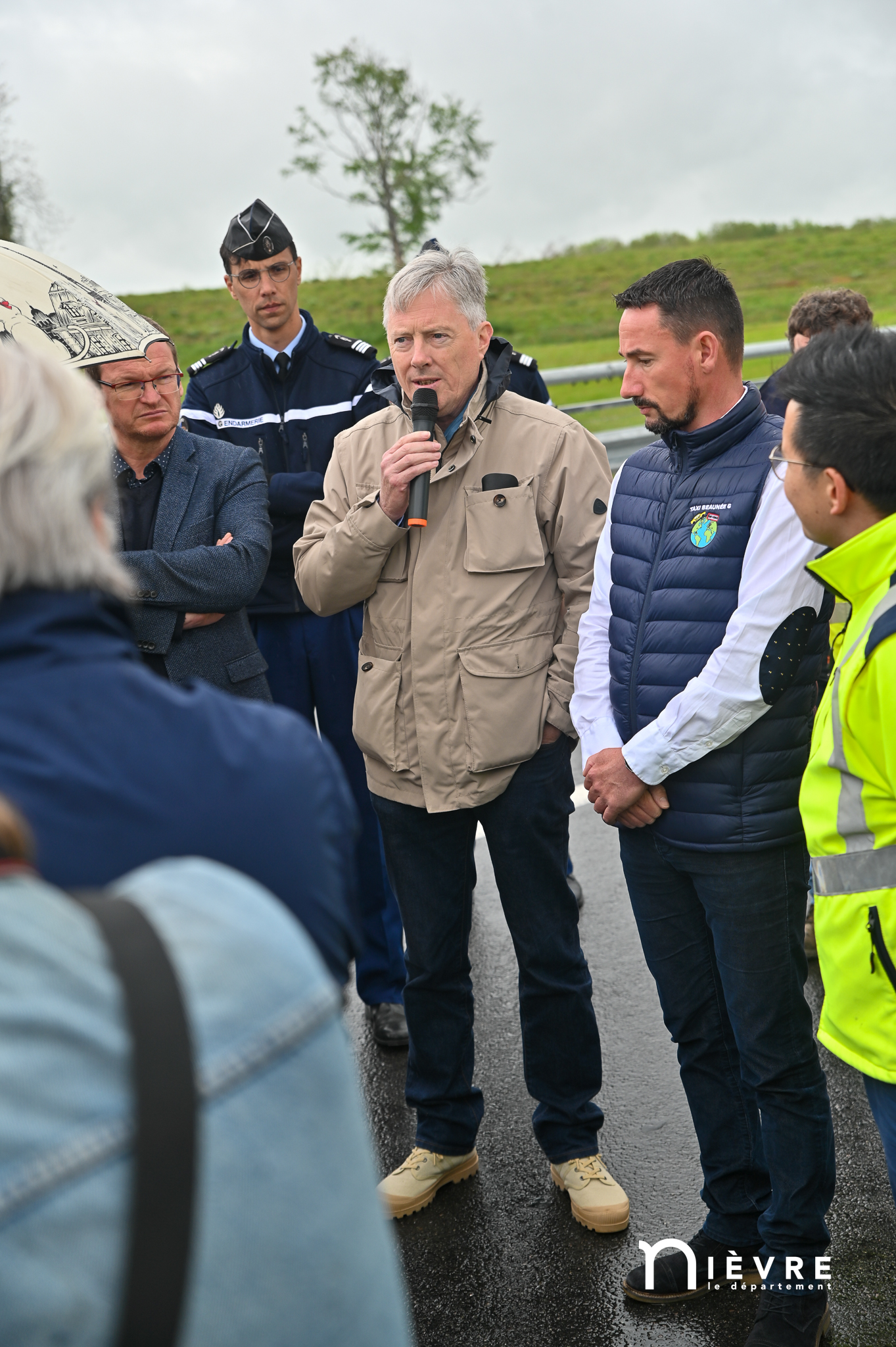 « Le temps est notre ennemi et il marque l’incompréhension de nos concitoyens », rappelle Fabien Bazin, évoquant par la même occasion un autre chantier au long cours tout aussi vital pour la Nièvre, celui du numérique. Entre 2015 et 2024, sur les 91,5 M€ consacrés à la mise à 2 x 2 voies de la RN7 entre Moiry (au sud du circuit de Nevers Magny-Cours) et l’Allier, le Conseil départemental a contribué à hauteur de 16,7 M€, soit 15 % du coût total. Soit le même investissement que celui de la Région, en complément des 70 % de l’État, alors que de tels travaux sur une route nationale ne sont pas de son ressort : « Le Département représente donc, avec la Région, un investisseur clef. Nous avons assumé, au-delà de nos compétences, cet investissement majeur pour l’avenir de notre territoire. Il est de notre responsabilité que cette route ne soit pas un simple ruban de bitume mais une voie d’espoir et de développement démographique et économique pour la Nièvre. »