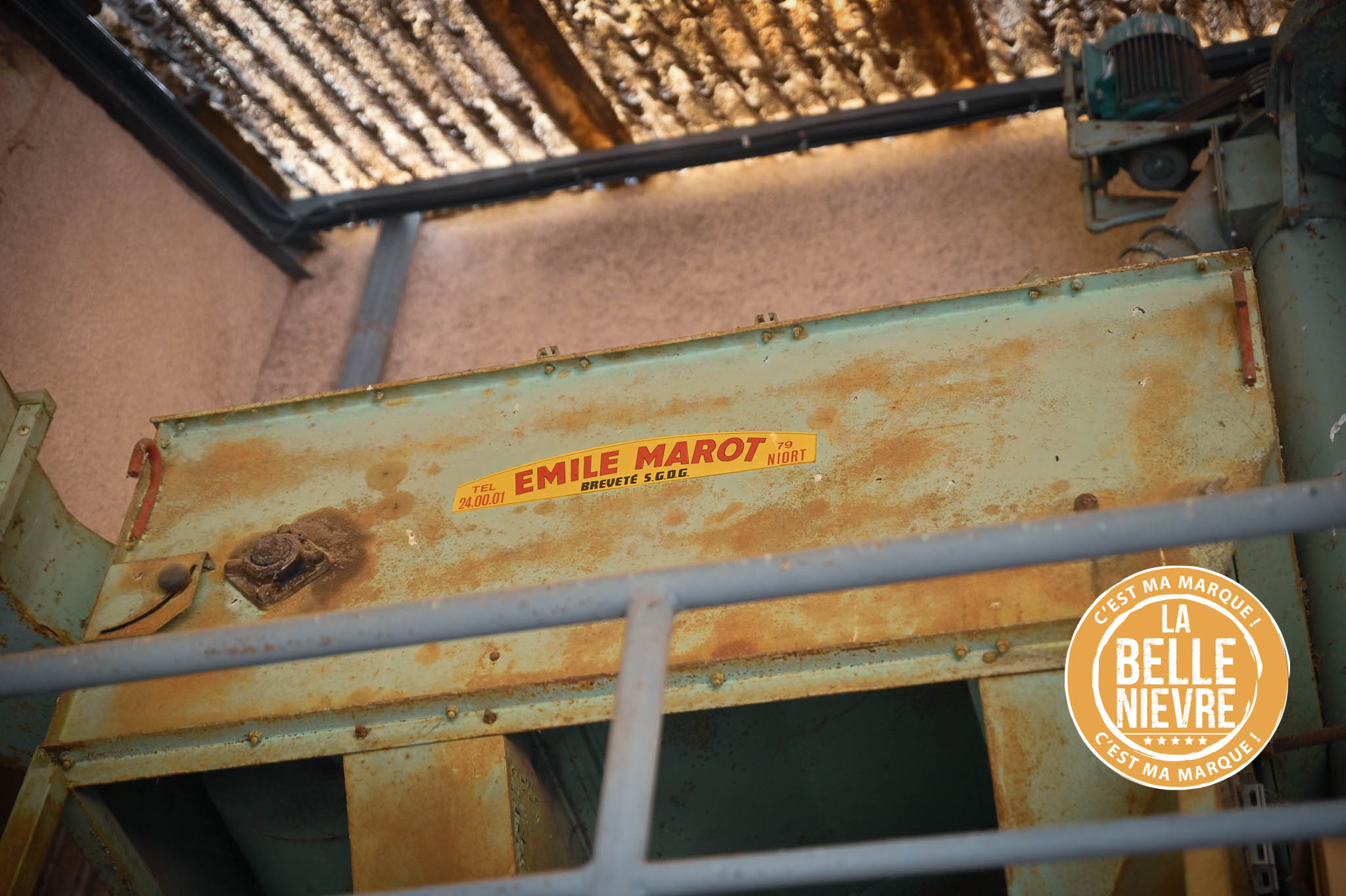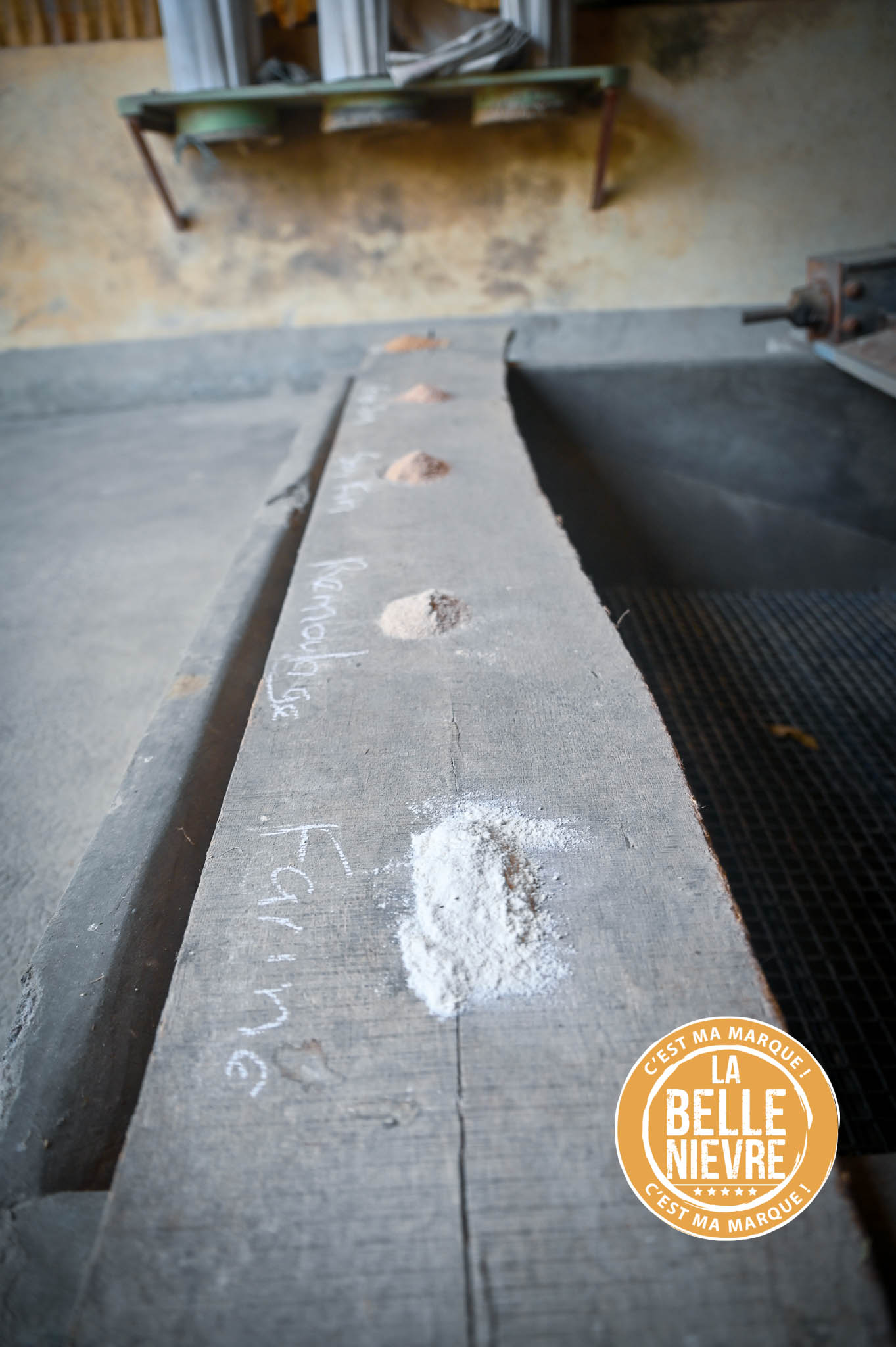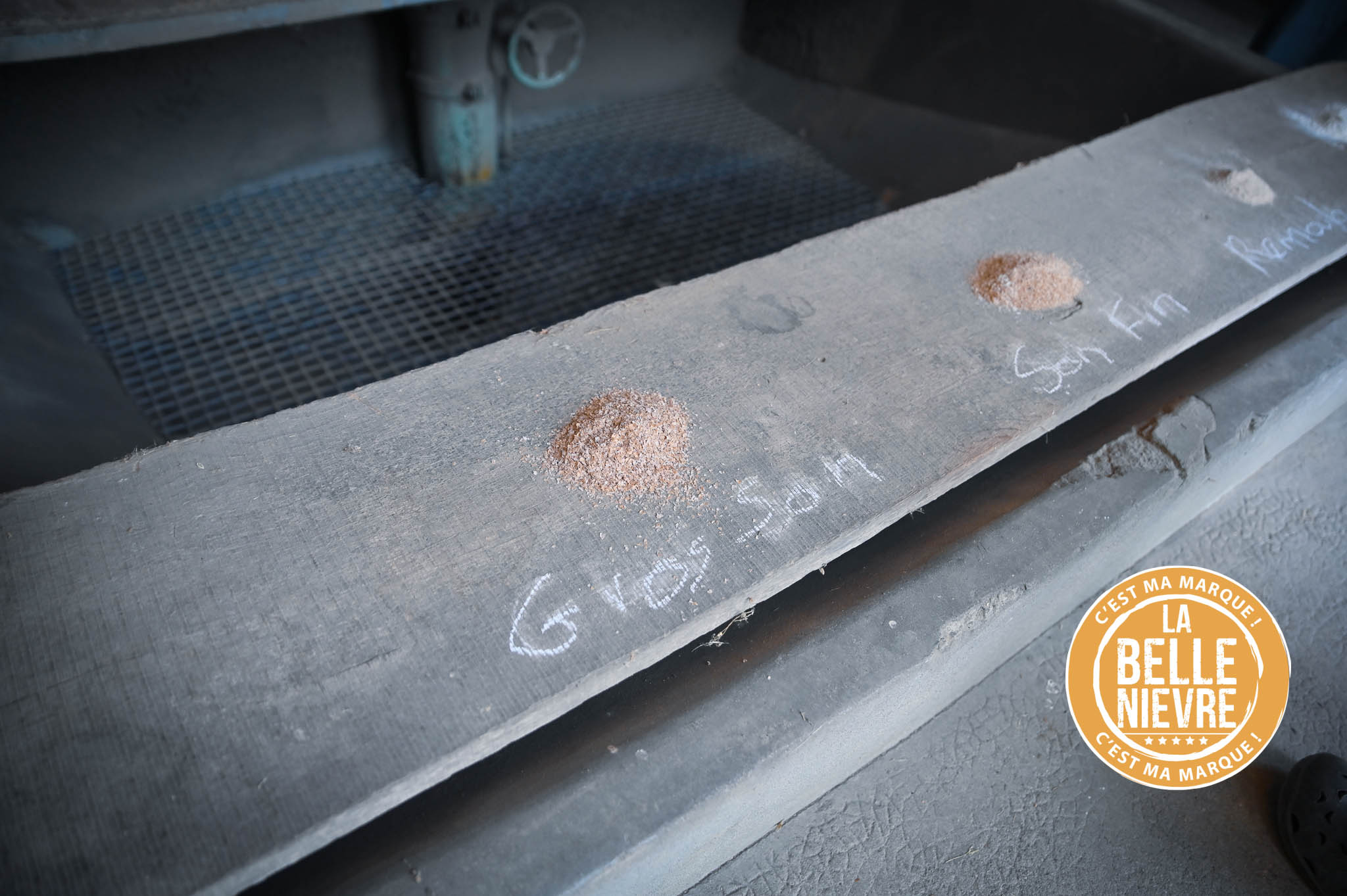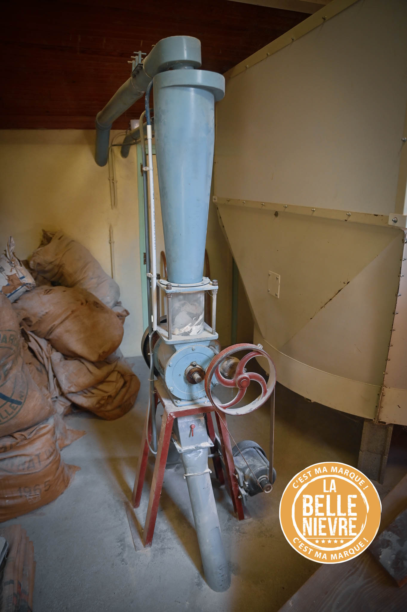Sylvain Marceau reprend la main et commence la visite. À peine entré dans le moulin, l’odeur prégnante de la farine, plutôt agréable, se glisse dans les moindres interstices, au sens propre comme au sens figuré. La poussière de farine est omniprésente ; quoi que l’on touche, nous voilà recouverts de minuscules particules. Un système complexe d’aspiration, de tuyaux en tout genre et de machines occupe tout l’espace.