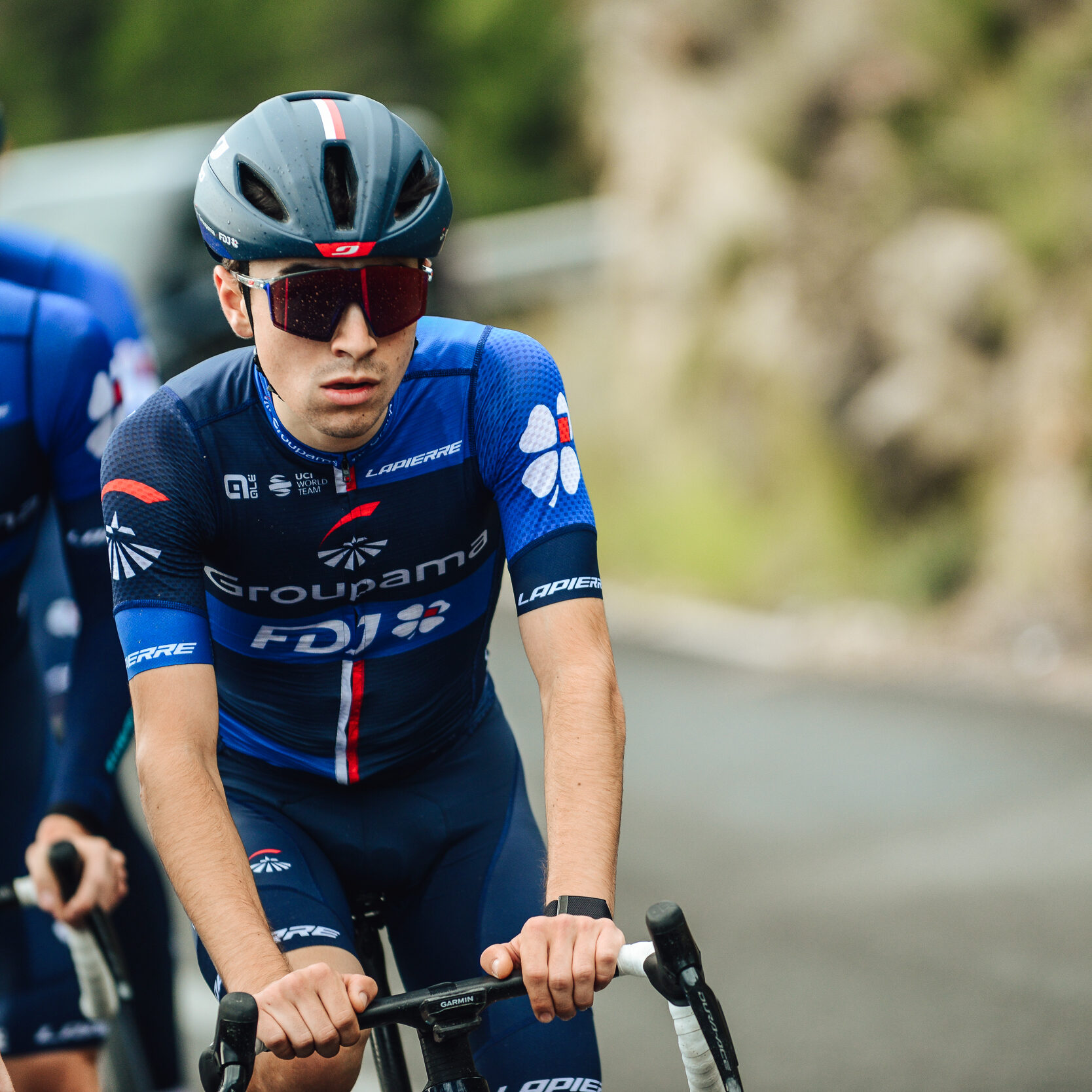 Quand il est chez les juniors, ses résultats attirent l’œil des écuries pros. Il signe chez Groupama-FDJ, explose dès la première saison chez les Espoirs. Passé pro en 2022, il empile les performances, remportant le Giro Val d’Aoste et se classant 3e du Giro Espoirs. Ce qui lui vaut une entrée, à 19 ans seulement, dans l’équipe World Tour, aux côtés de ses prestigieux aînés David Gaudu et Thibault Pinot. « Je ne force pas les choses, je les laisse arriver », explique-t-il. Avec la maîtrise d’un vieux briscard et une déconcertante facilité, il a pris l’aspiration du cyclisme pro : « Il n’y a pas deux fois plus d’entraînement, mais les courses sont plus dures, plus longues, et la récupération est plus importante. Dans le peloton, ça va plus vite, il ya plus de stress. »