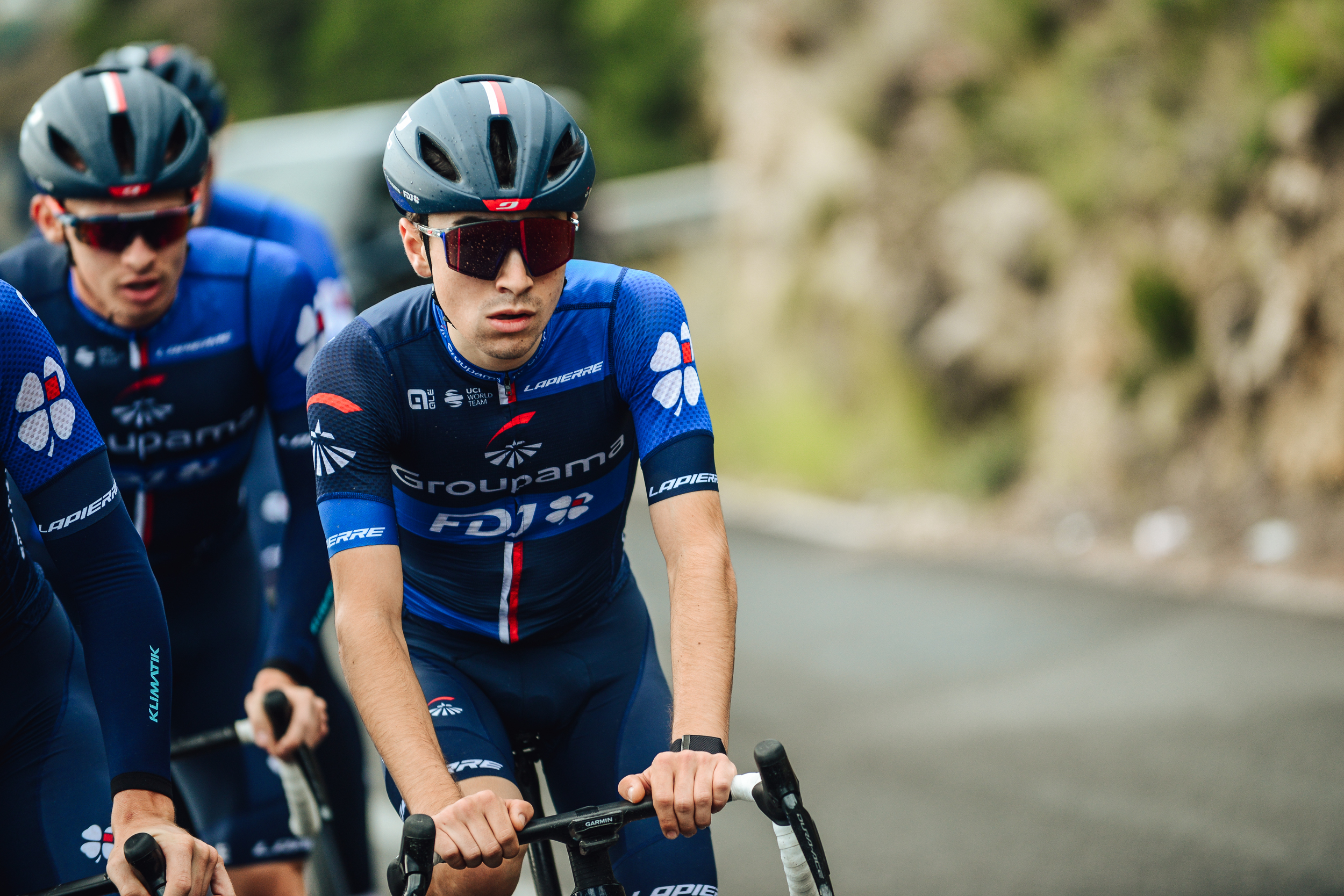 Quand il est chez les juniors, ses résultats attirent l’œil des écuries pros. Il signe chez Groupama-FDJ, explose dès la première saison chez les Espoirs. Passé pro en 2022, il empile les performances, remportant le Giro Val d’Aoste et se classant 3e du Giro Espoirs. Ce qui lui vaut une entrée, à 19 ans seulement, dans l’équipe World Tour, aux côtés de ses prestigieux aînés David Gaudu et Thibault Pinot. « Je ne force pas les choses, je les laisse arriver », explique-t-il. Avec la maîtrise d’un vieux briscard et une déconcertante facilité, il a pris l’aspiration du cyclisme pro : « Il n’y a pas deux fois plus d’entraînement, mais les courses sont plus dures, plus longues, et la récupération est plus importante. Dans le peloton, ça va plus vite, il ya plus de stress. »