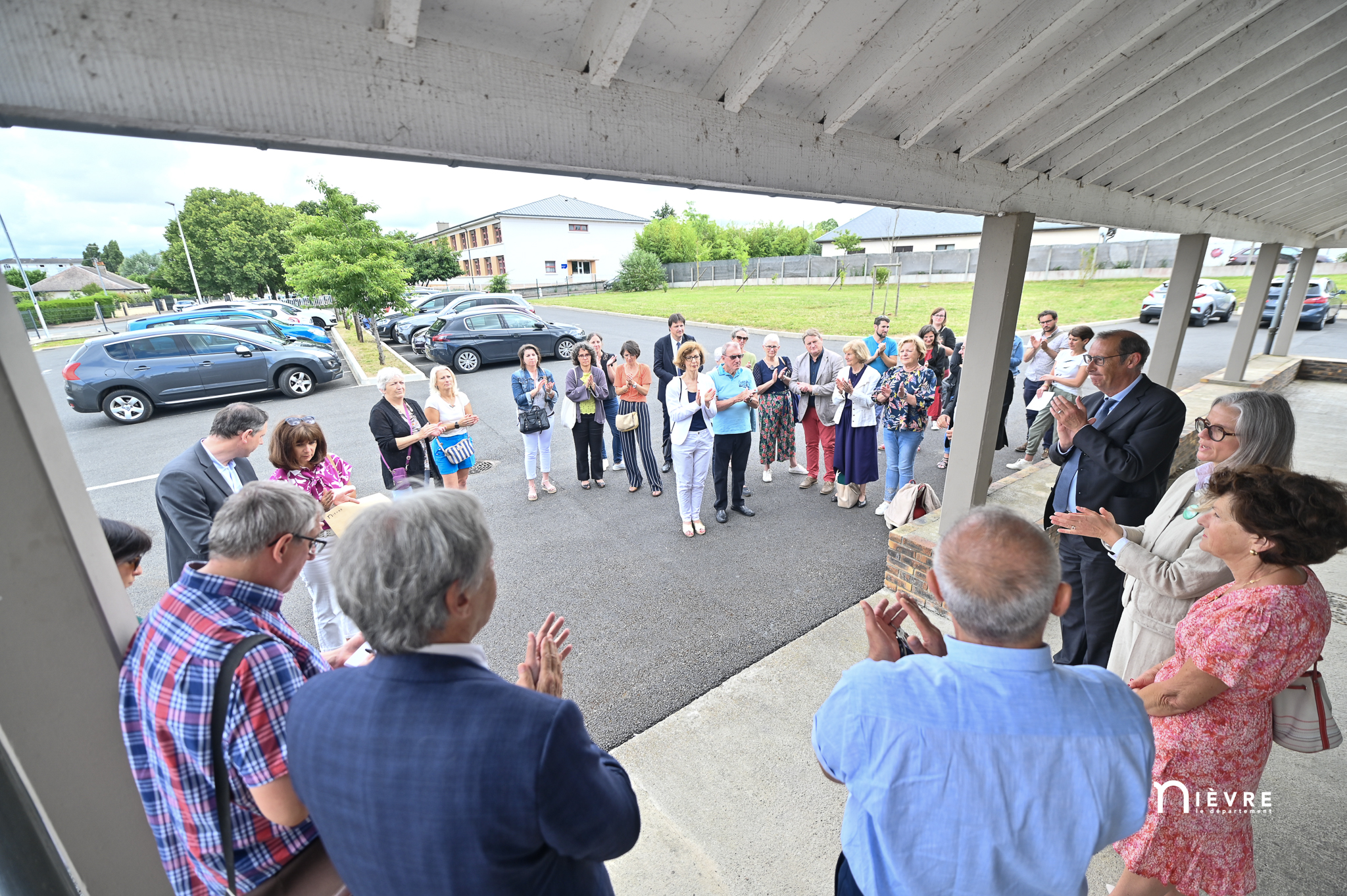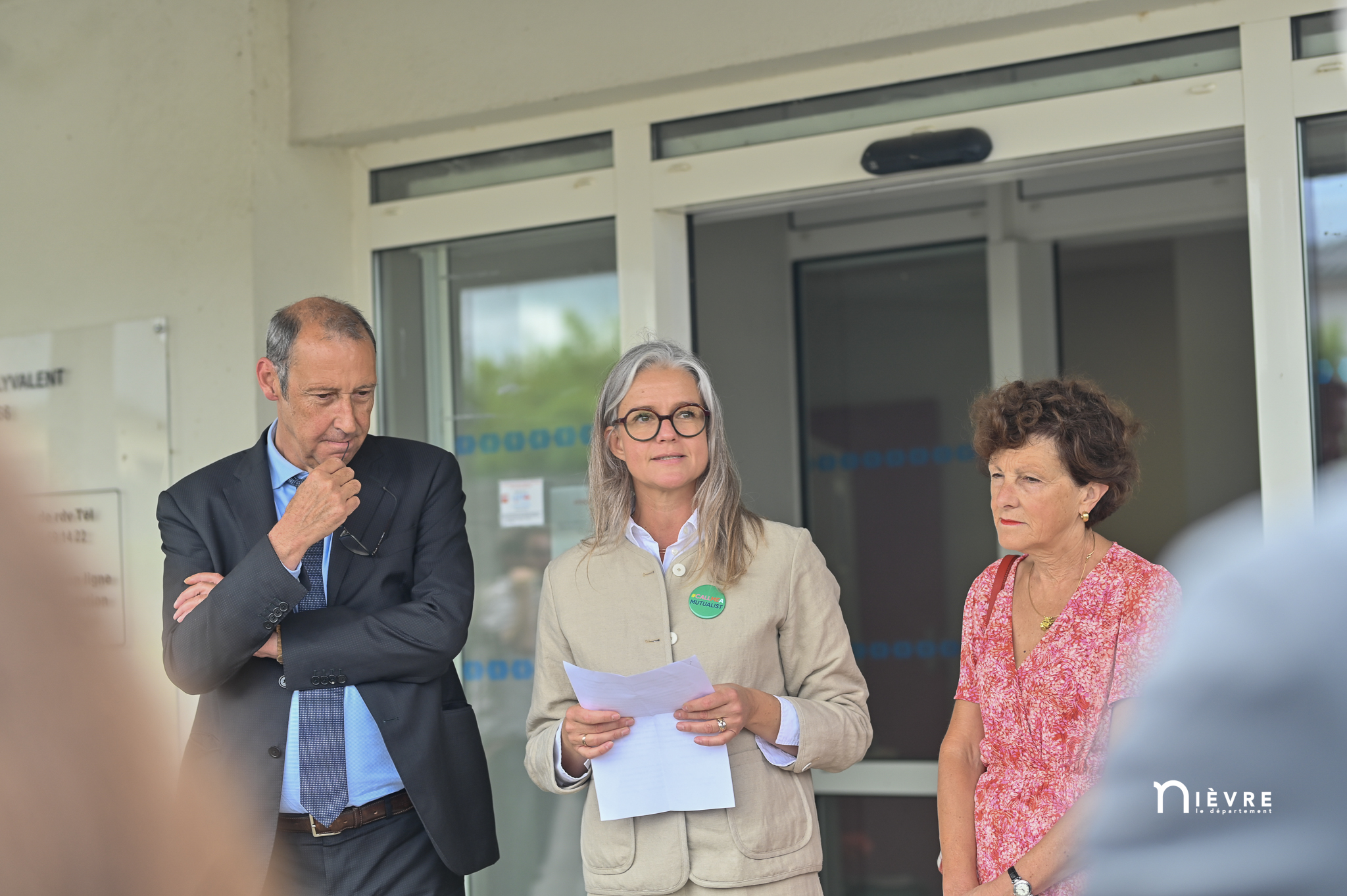 En cette fin de matinée du 4 juillet, le flux de patients qui entre et sort sans répit du Centre de santé polyvalent de Nevers observe avec un œil surpris l’affluence inhabituelle devant l’entrée du site, au 20 rue Albert-Camus. Ouvert 2018 sous la volonté conjuguée de la Mutualité française bourguignonne (rebaptisée VYV 3 Bourgogne) et de la Ville de Nevers, le long bâtiment pimpant et de plain-pied a entamé un nouveau chapitre, le 1er juillet, en passant officiellement dans le giron du Conseil départemental, avec les centres mutualistes d’Imphy et de Chantenay-Saint-Imbert.