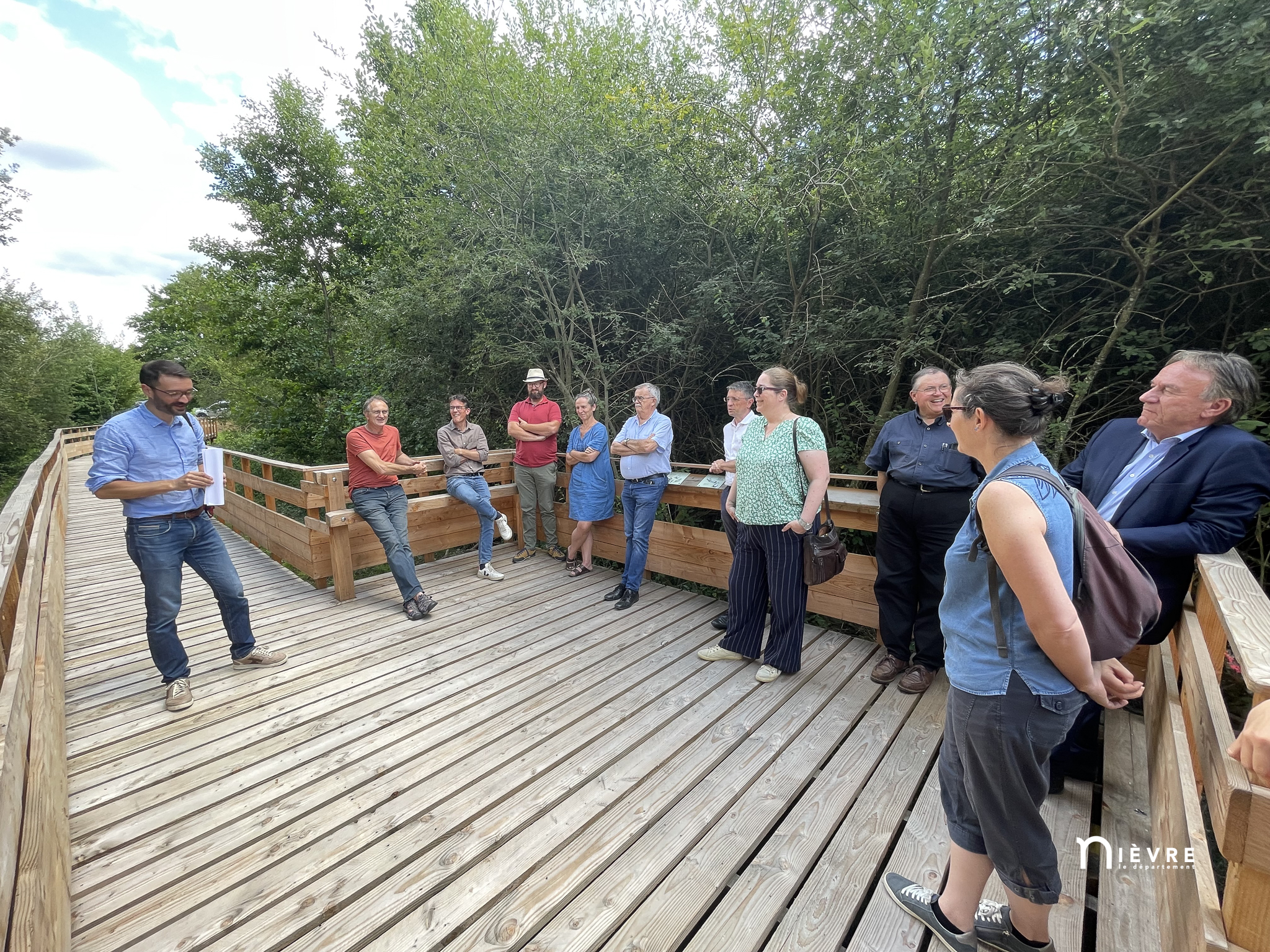 La passerelle respire le bois frais et brut. Le ruban qui barre son entrée d’un grand sourire tricolore atteste l’aménagement récent et l’inauguration imminente. En ce 13 juillet, le sentier pédagogique du Petit lac de Pannecière est foulé par une cohorte d’élus (1), de professionnels et d’agents du Département venus voir le fruit de trois mois de travaux (voir encadré) et, surtout, s’accorder une immersion dans cette jungle d’arbres vivants et morts qui s’est formée, au fil des ans, sur le pourtour de ce bassin de compensation du « grand lac ».